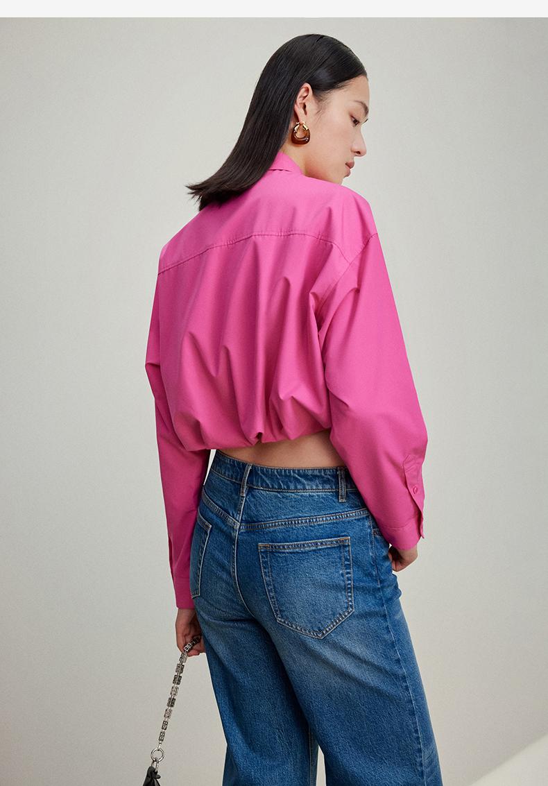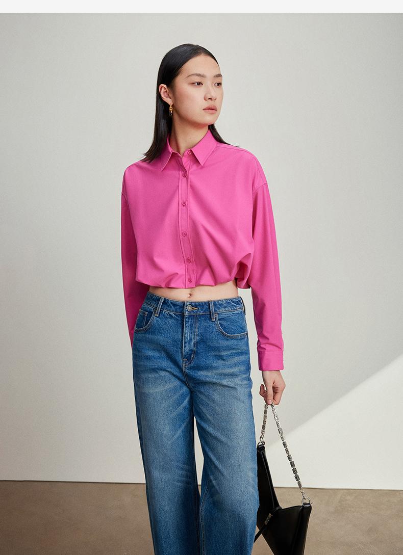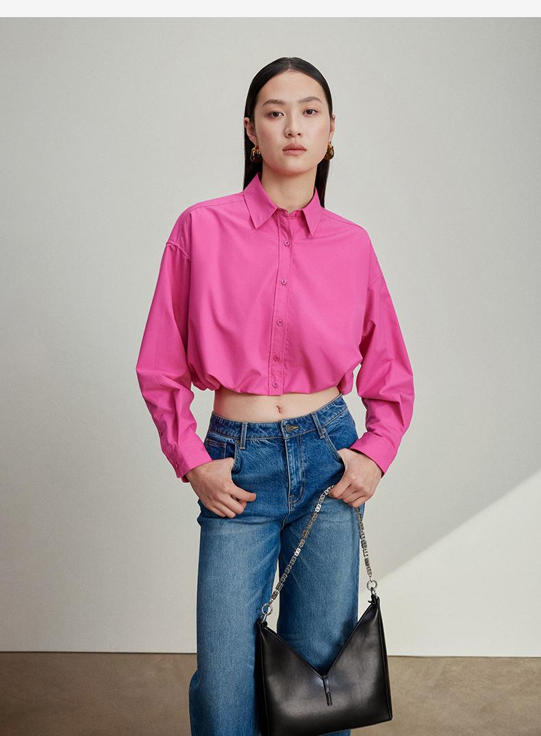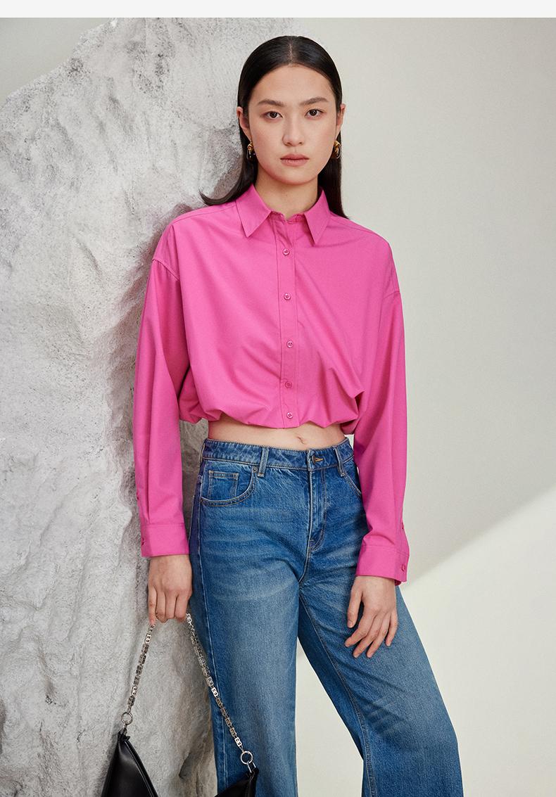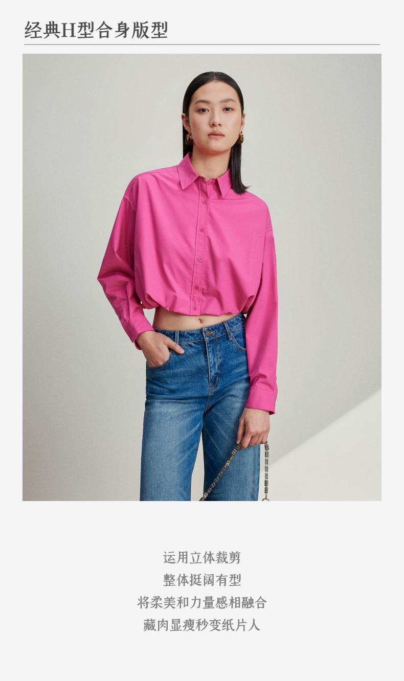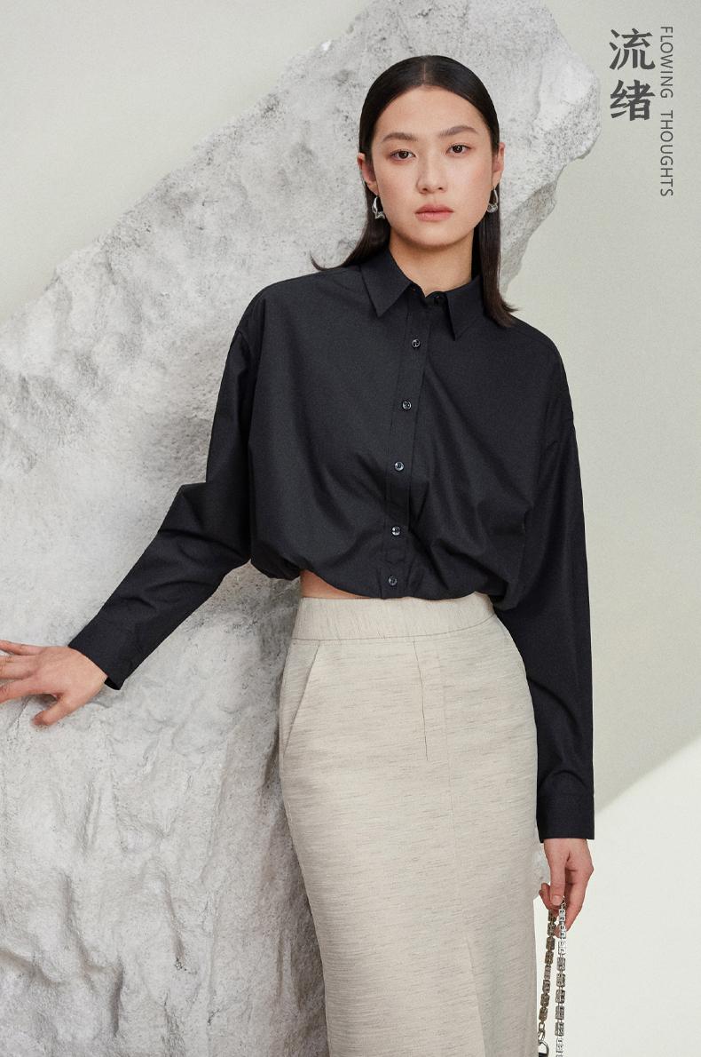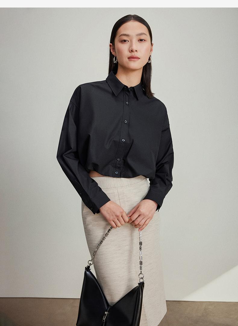 西嘉C+IMPRESS/西嘉免烫抗皱长袖衬衫女短款小个子洋气别致设计感上衣CS2401110