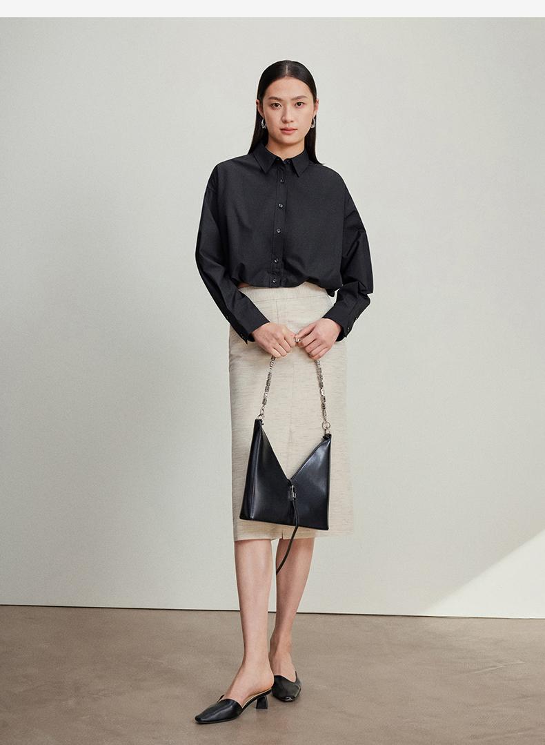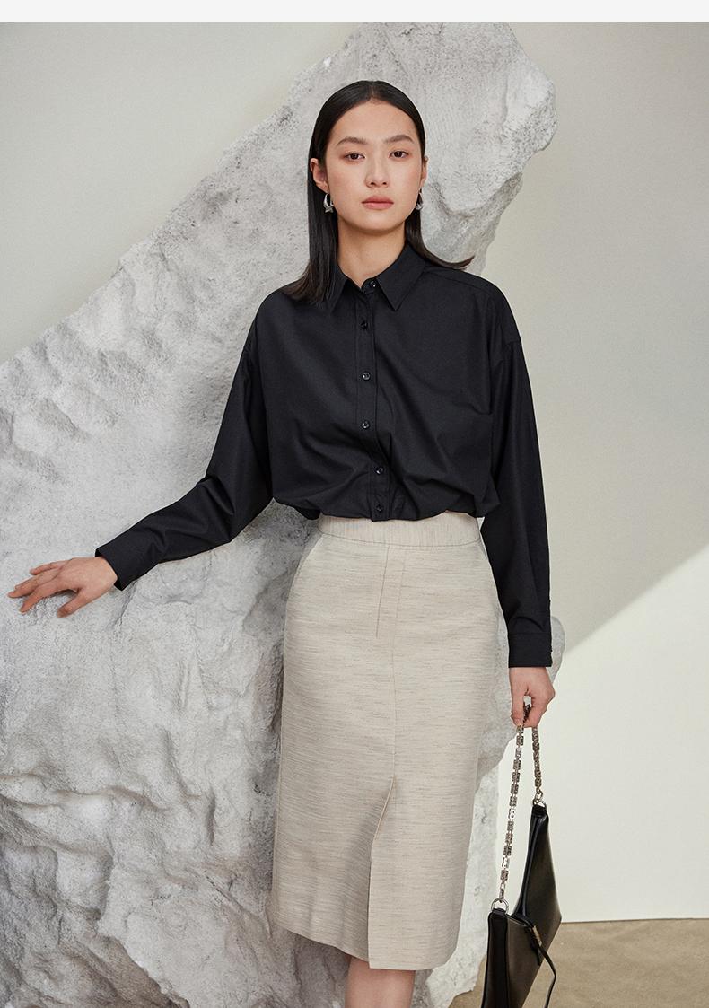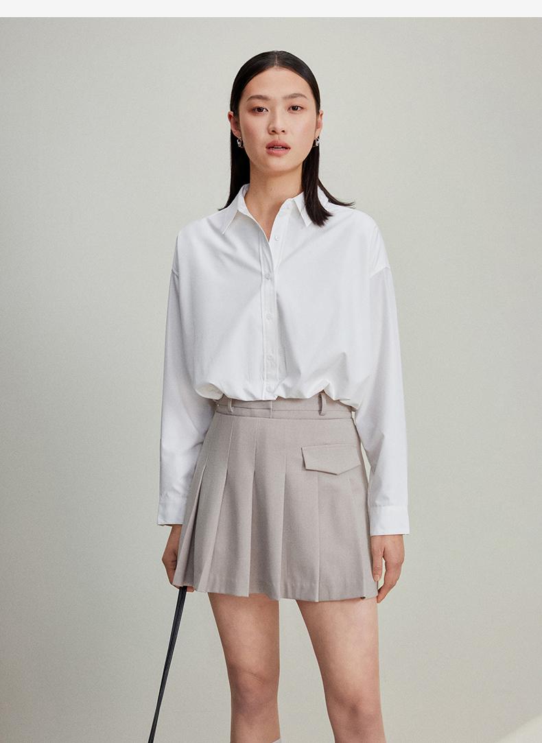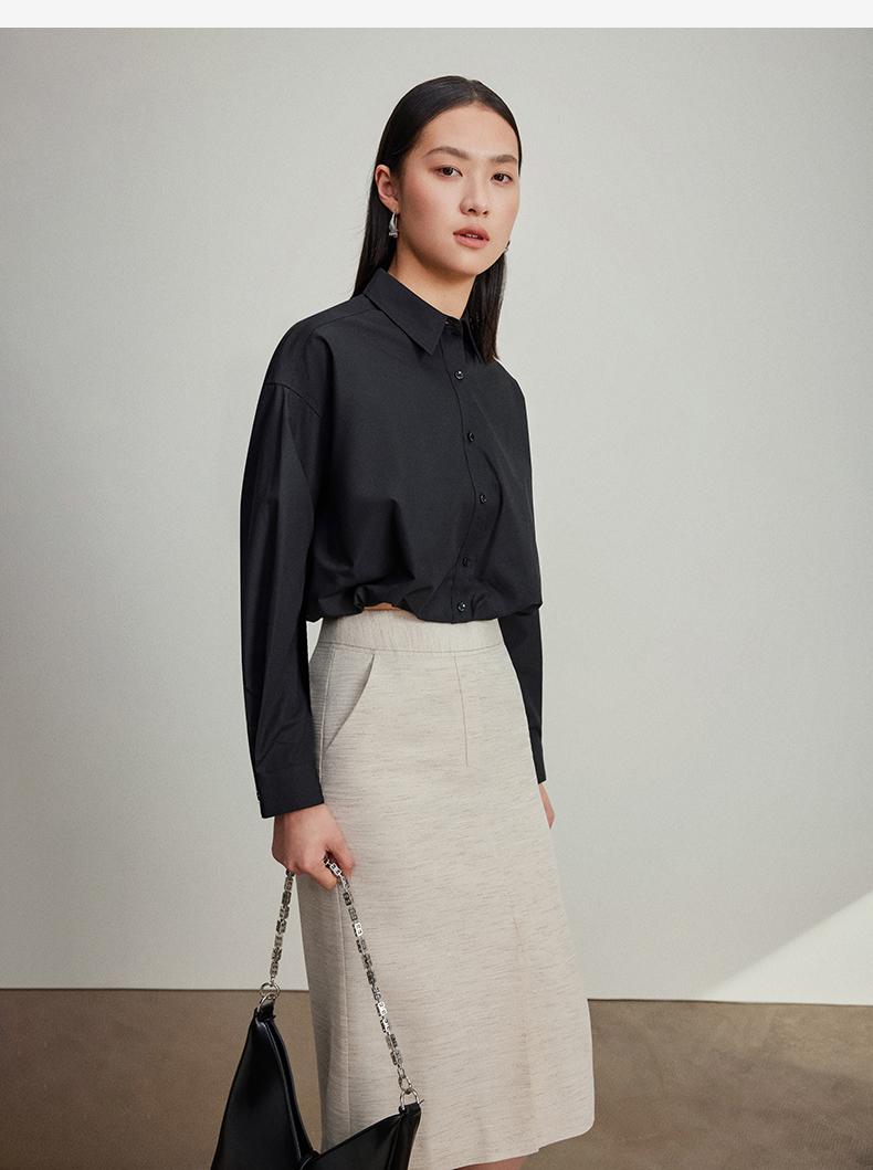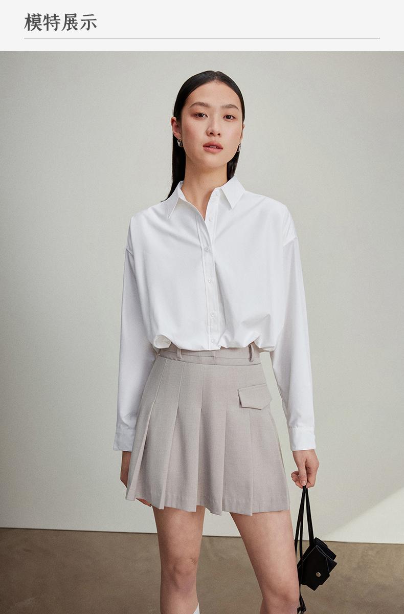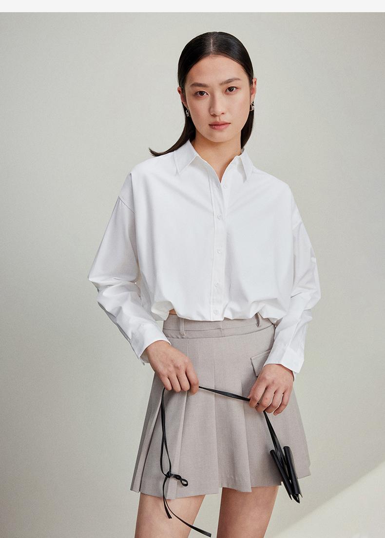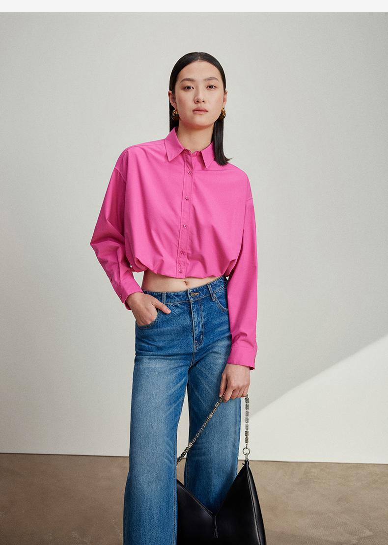 西嘉C+IMPRESS/西嘉免烫抗皱长袖衬衫女短款小个子洋气别致设计感上衣CS2401110