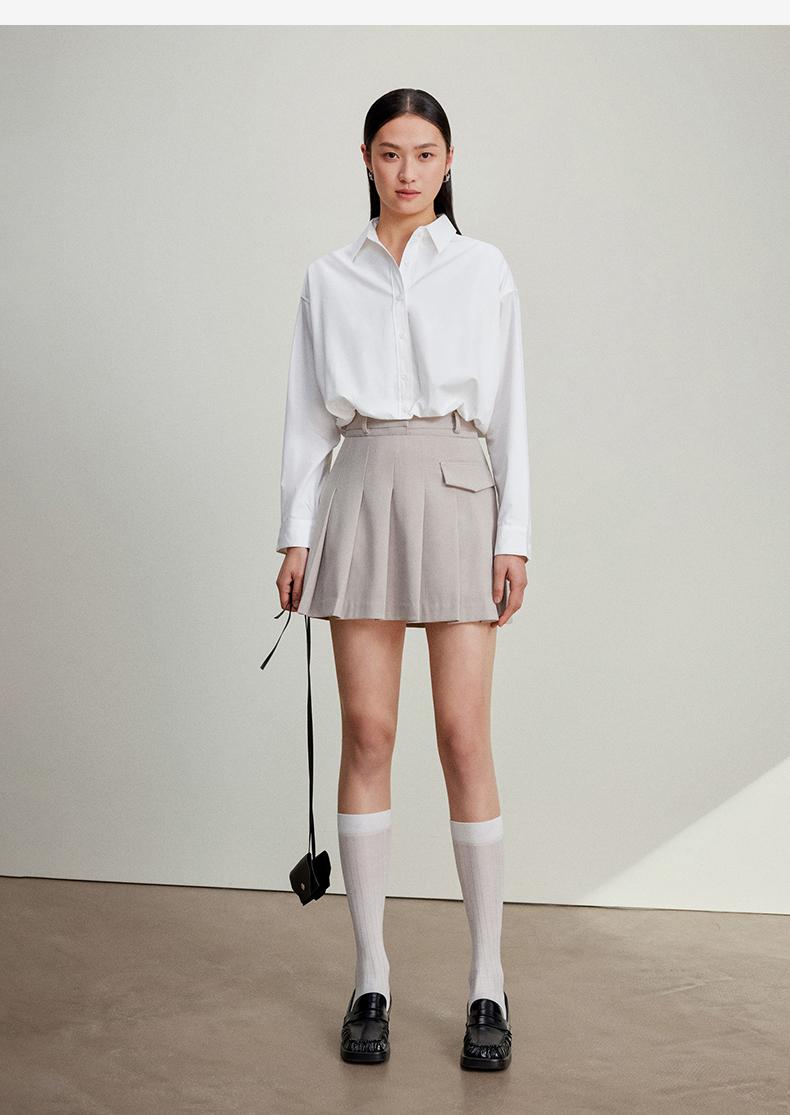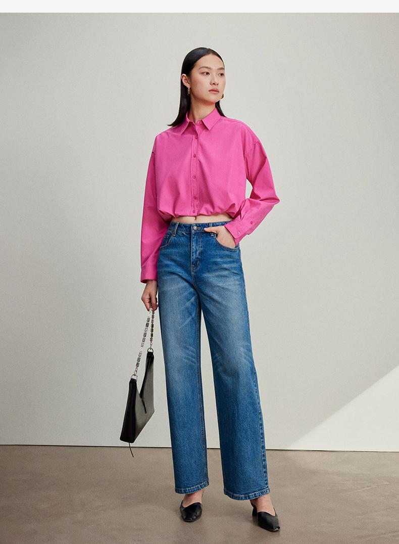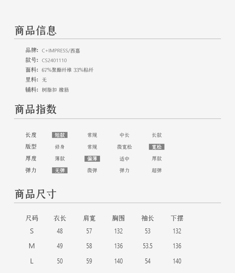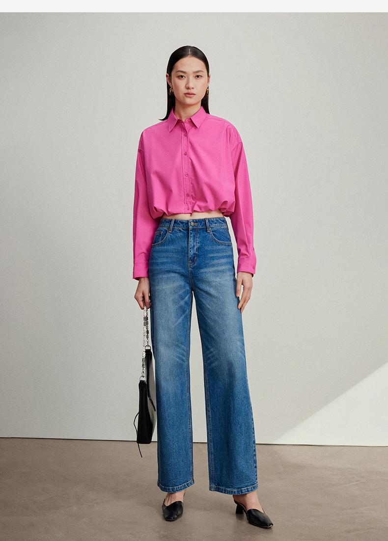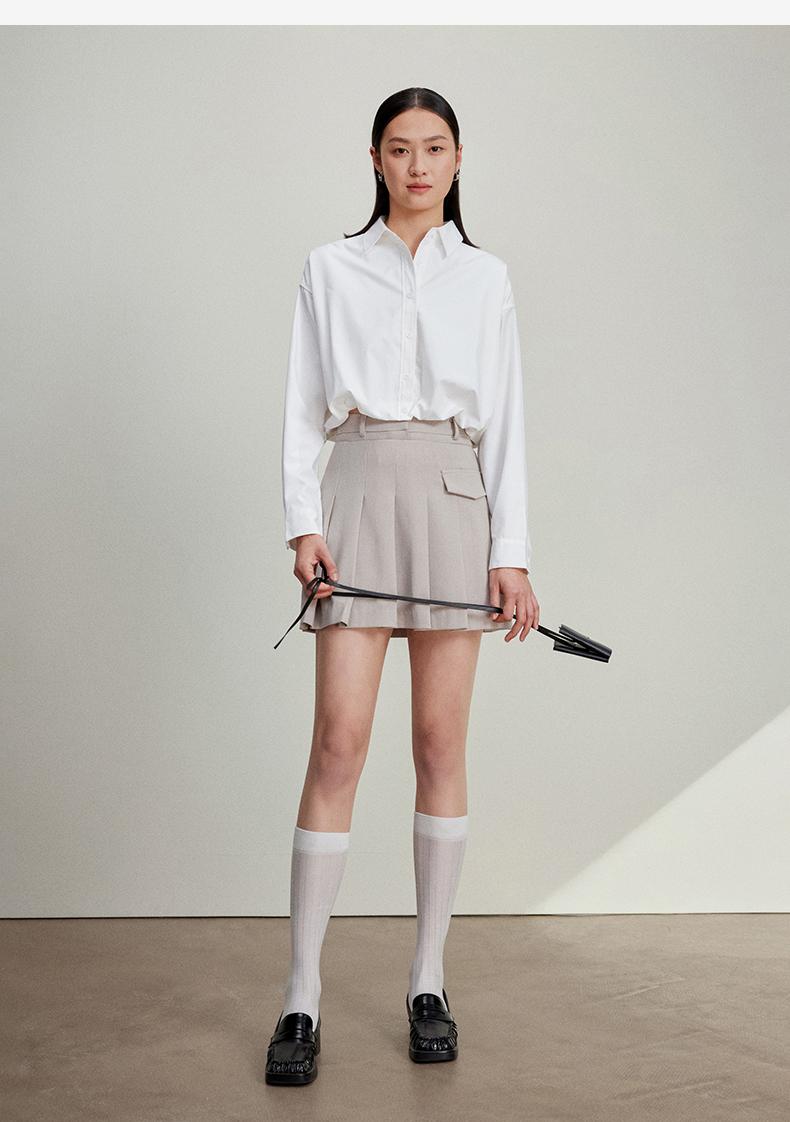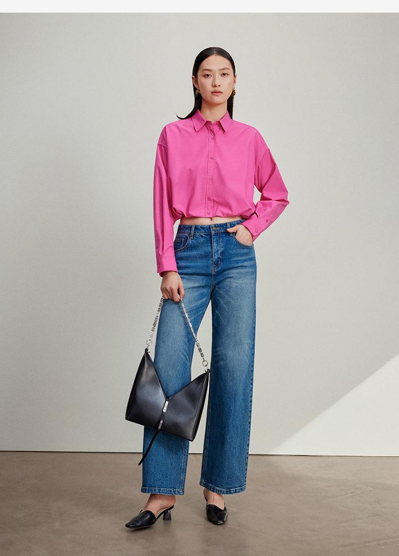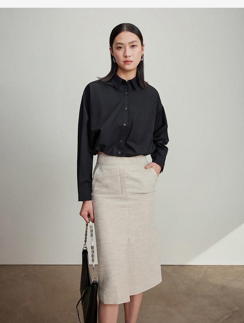 西嘉C+IMPRESS/西嘉免烫抗皱长袖衬衫女短款小个子洋气别致设计感上衣CS2401110