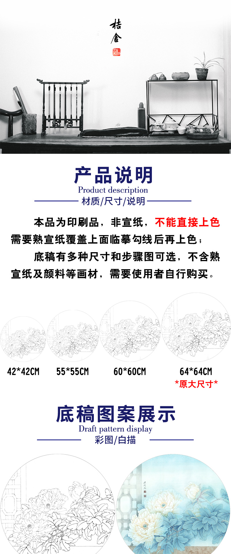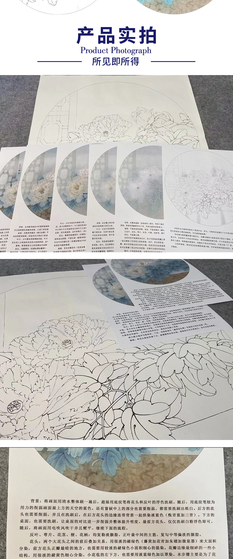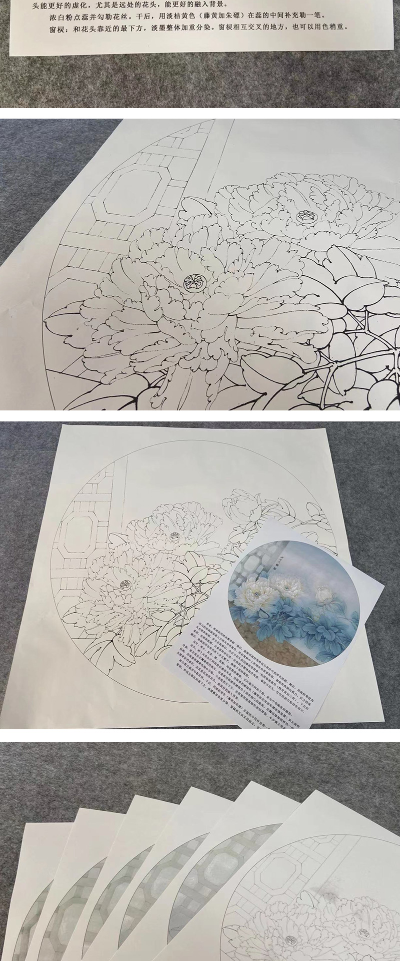 【有步骤、大彩图】工笔画白描底稿《福临家门》牡丹花鸟线稿KG06
