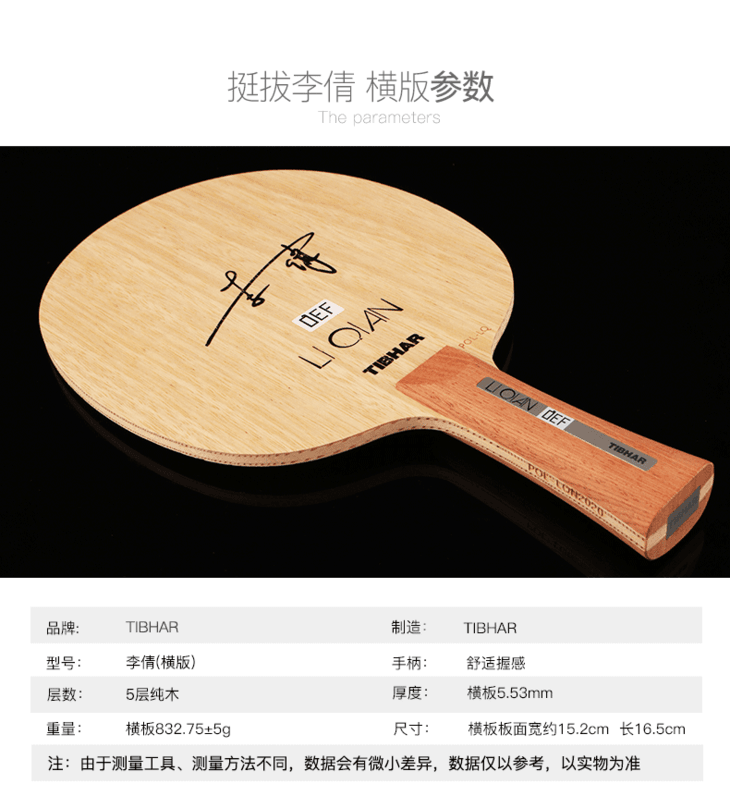 TIBHAR挺拔李倩德国乒乓球底板削球板5层纯木