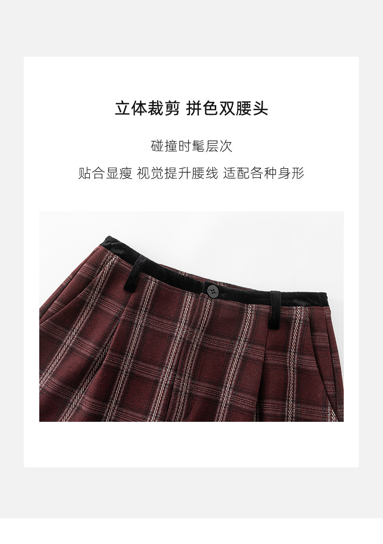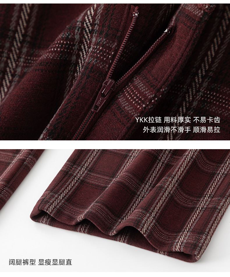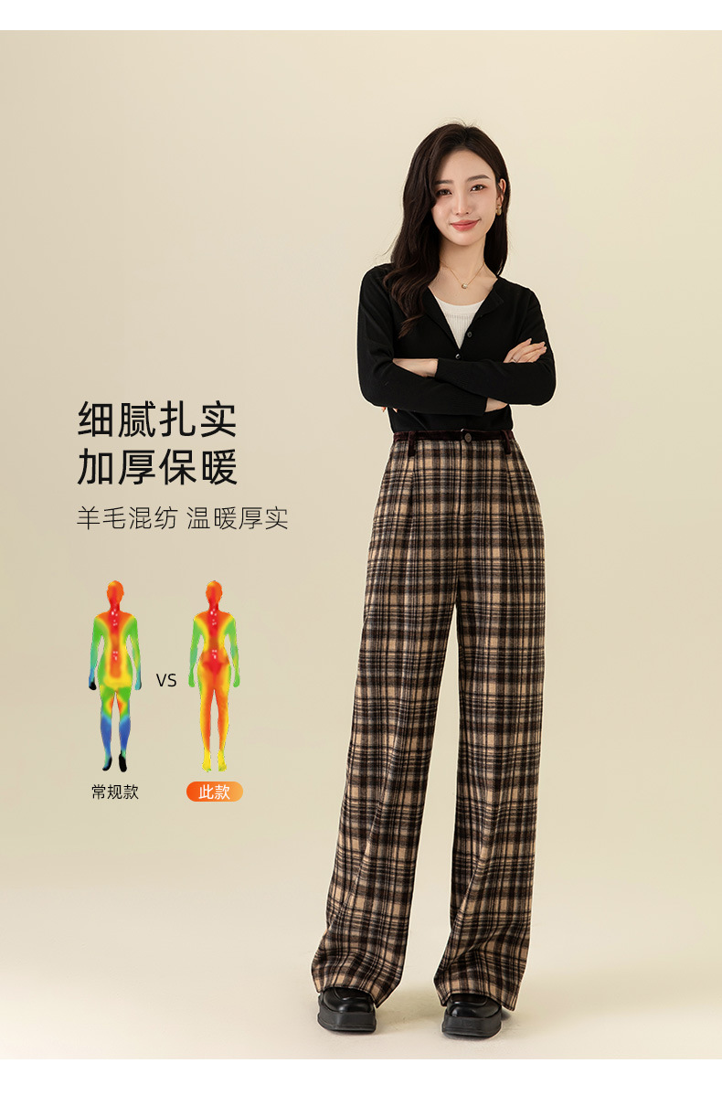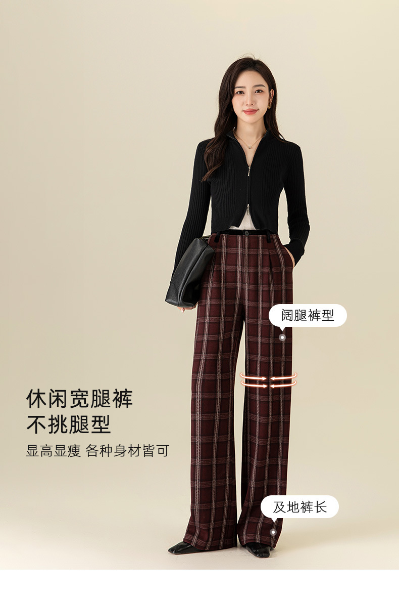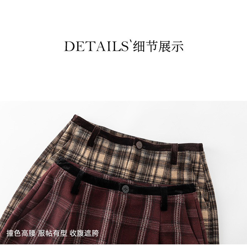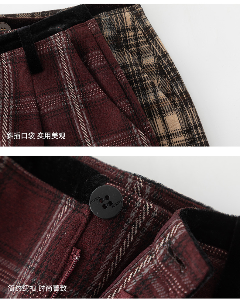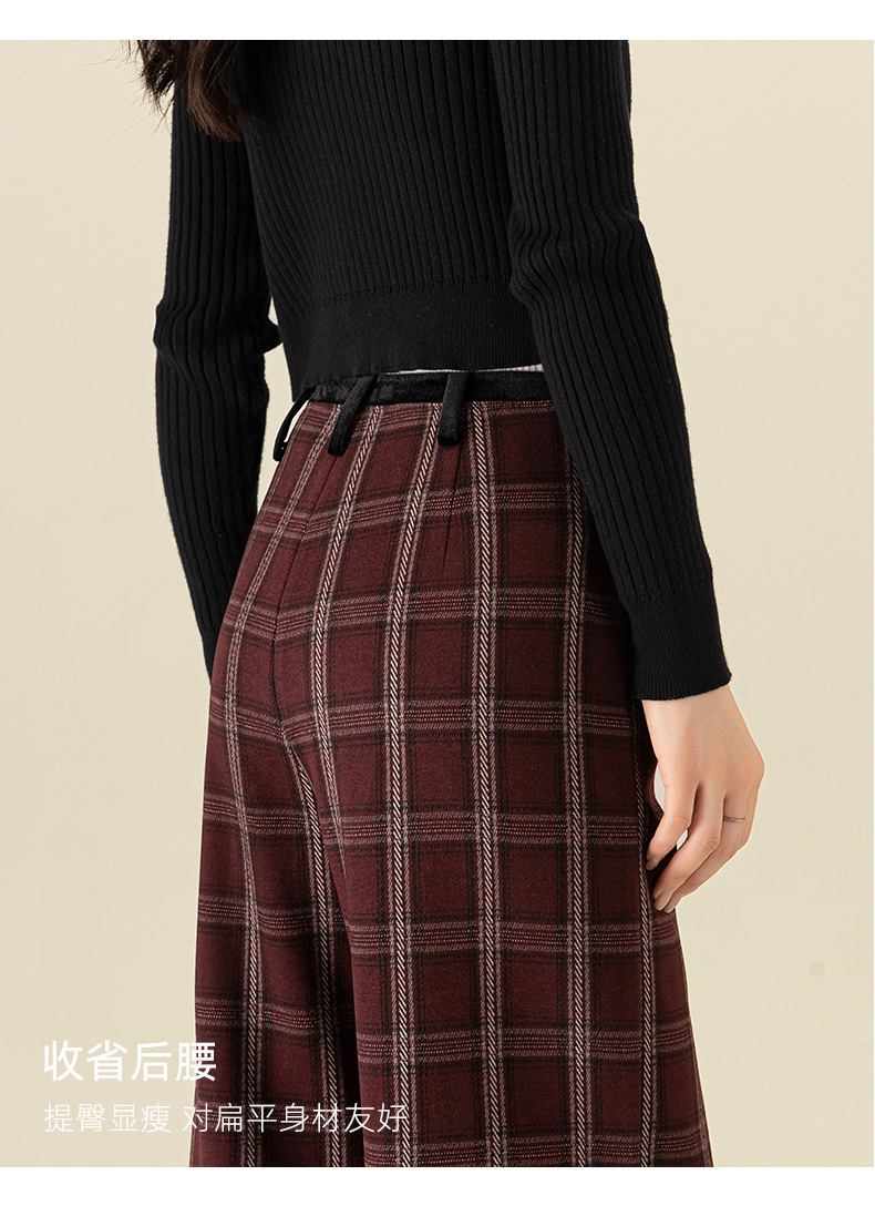 【高货xg】全新升级【铂金会员183/天猫249/差价66】(02459) 洛诗琳羊毛混纺保暖显瘦格子裤秋冬新安可拉红复古阔腿裤