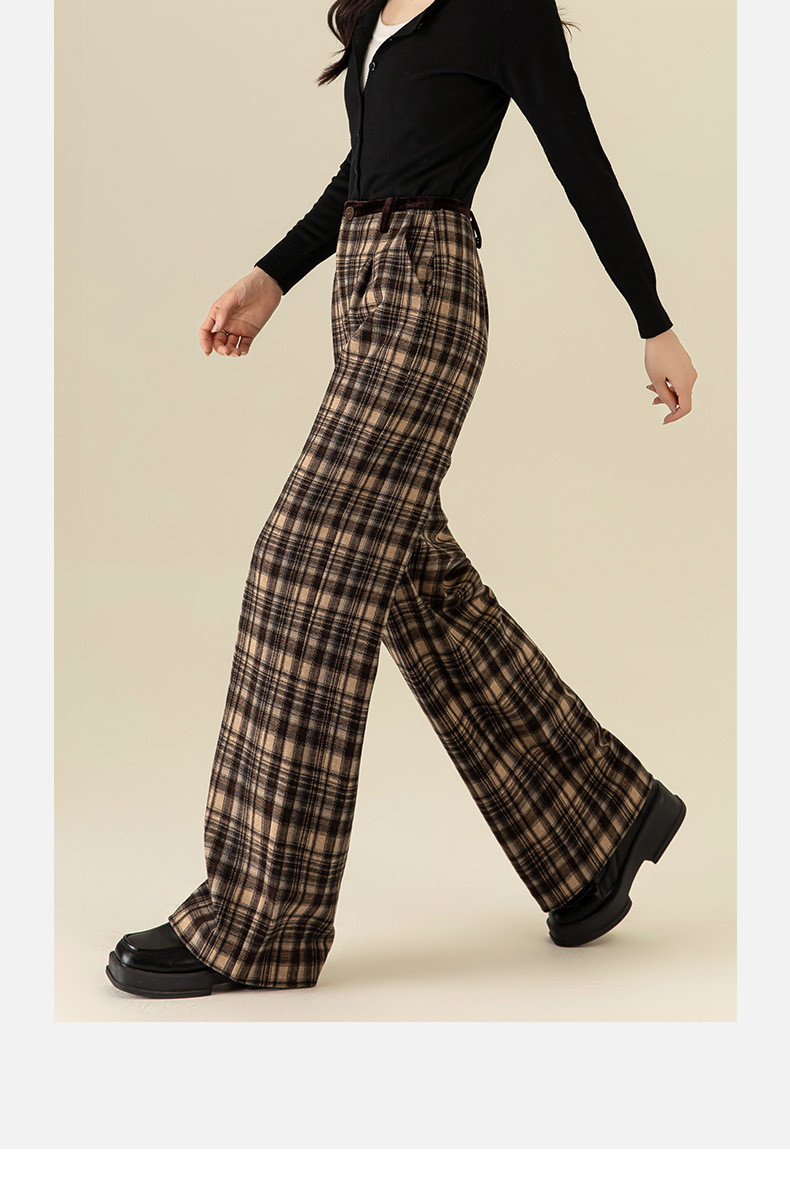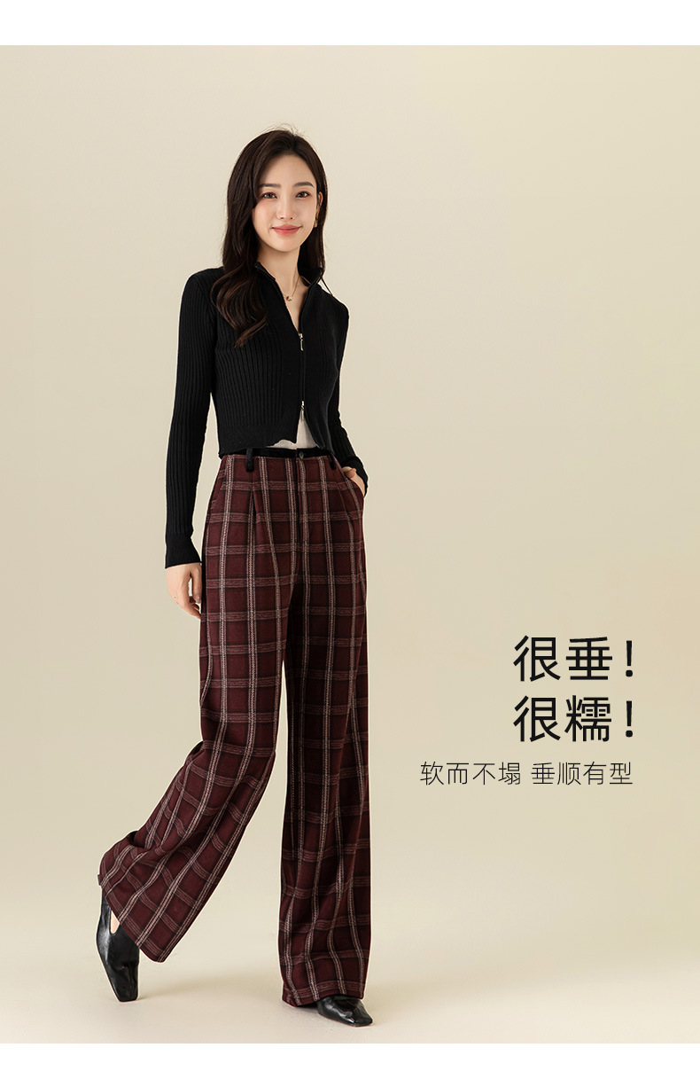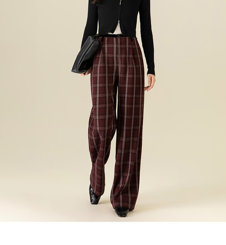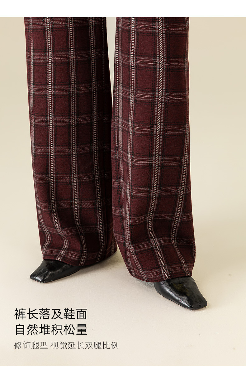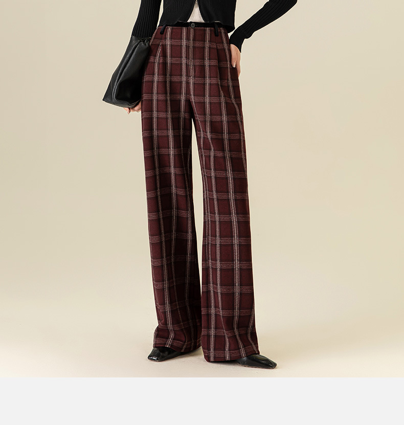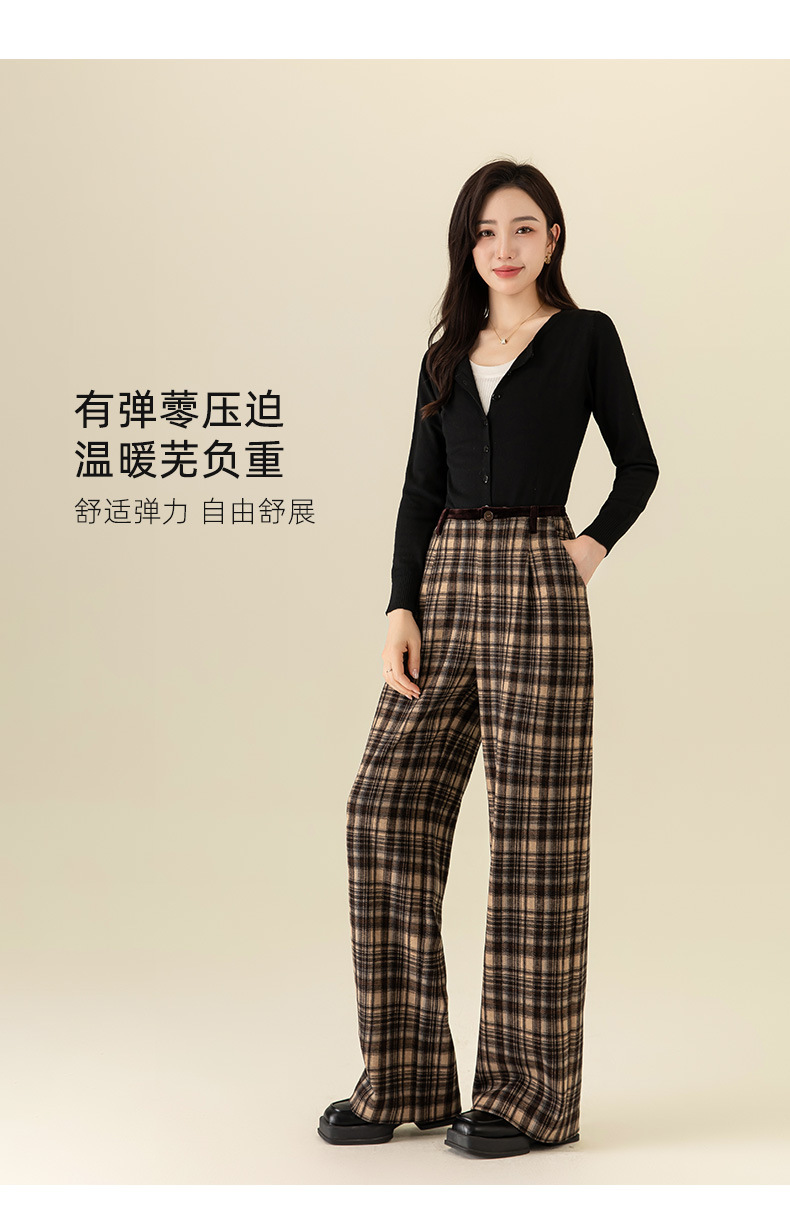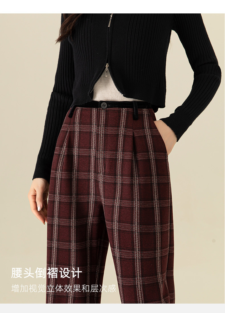 【高货xg】全新升级【铂金会员183/天猫249/差价66】(02459) 洛诗琳羊毛混纺保暖显瘦格子裤秋冬新安可拉红复古阔腿裤