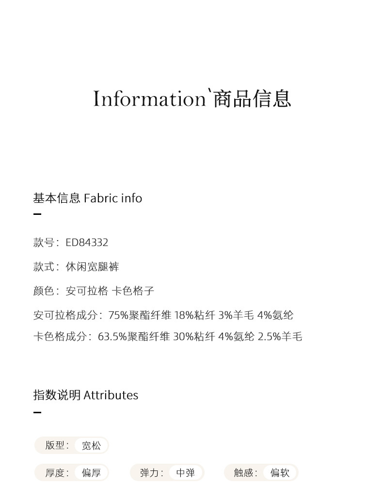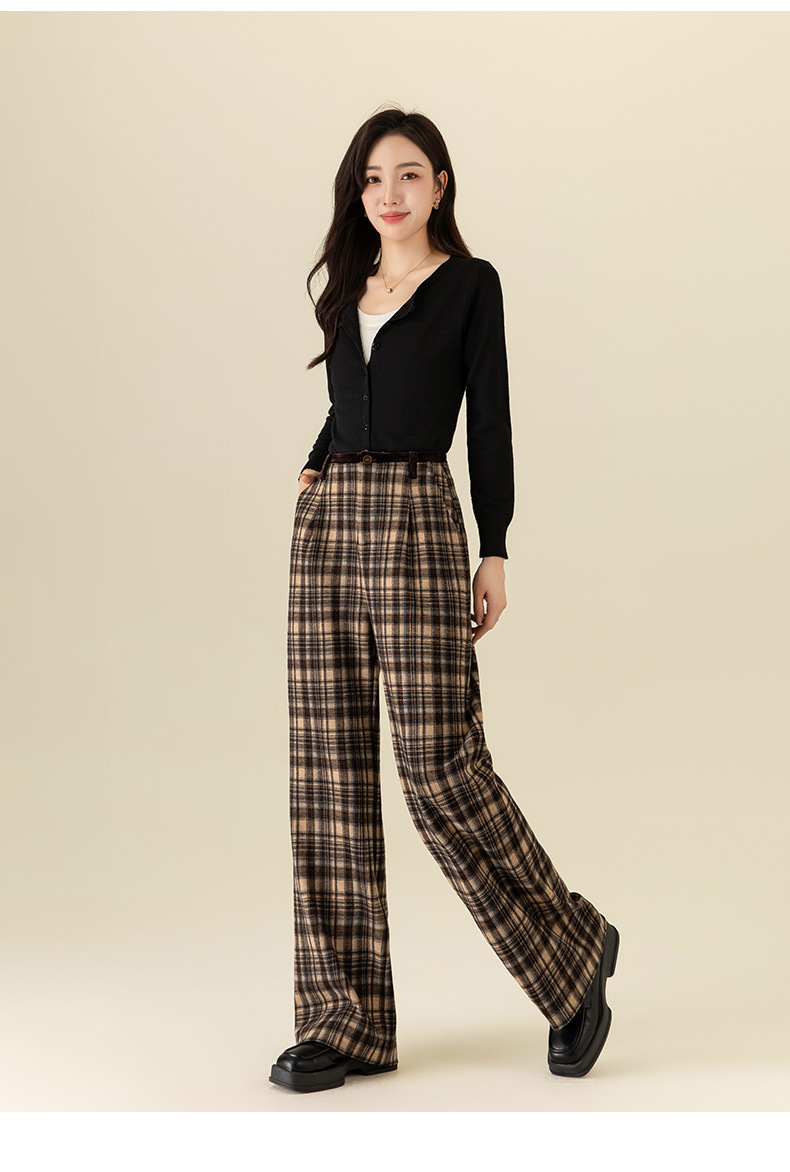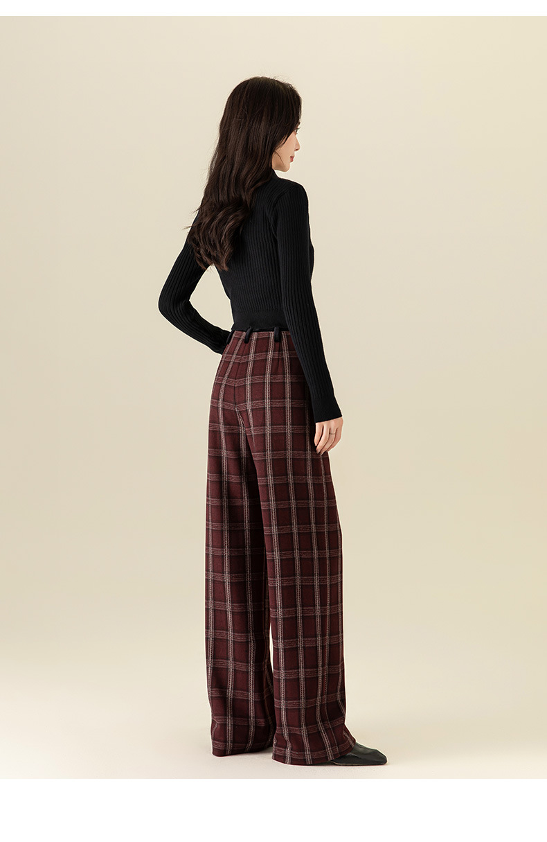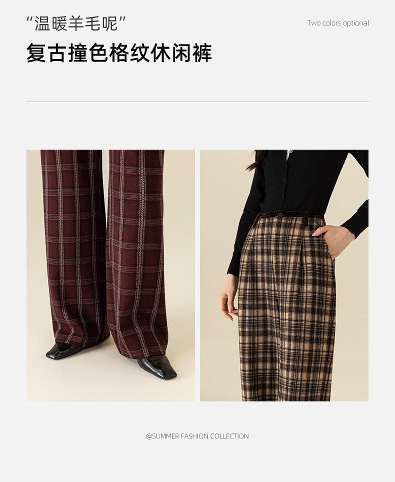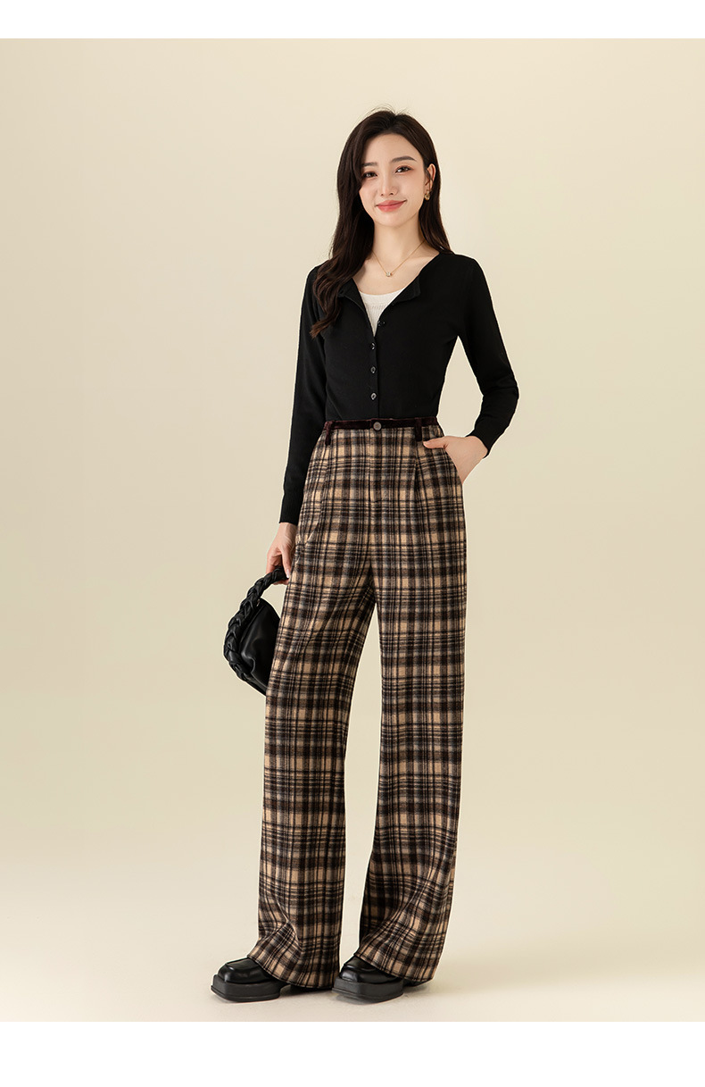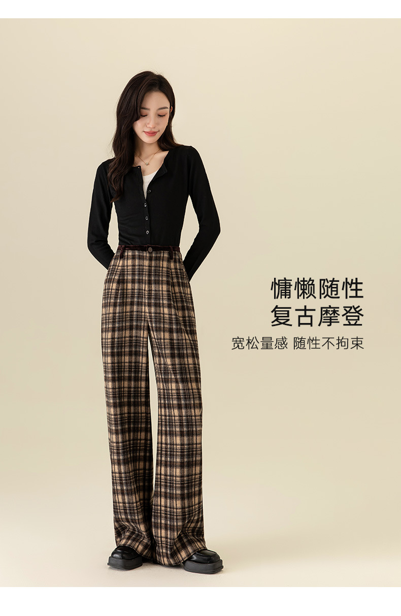 【高货xg】全新升级【铂金会员183/天猫249/差价66】(02459) 洛诗琳羊毛混纺保暖显瘦格子裤秋冬新安可拉红复古阔腿裤
