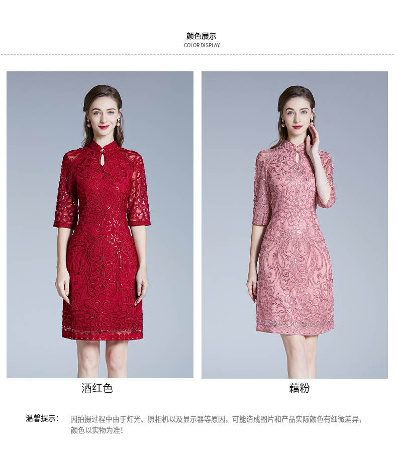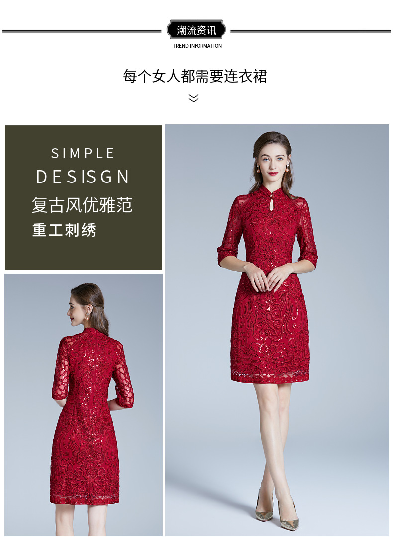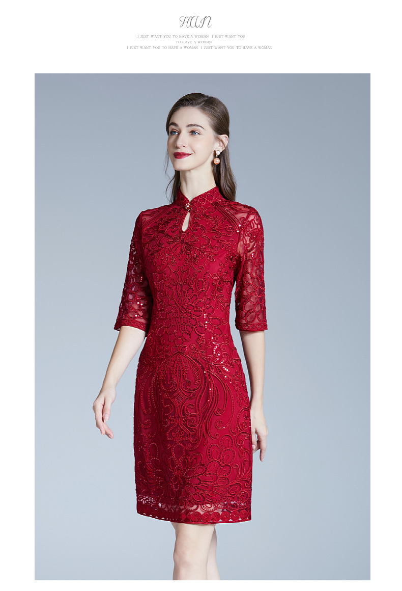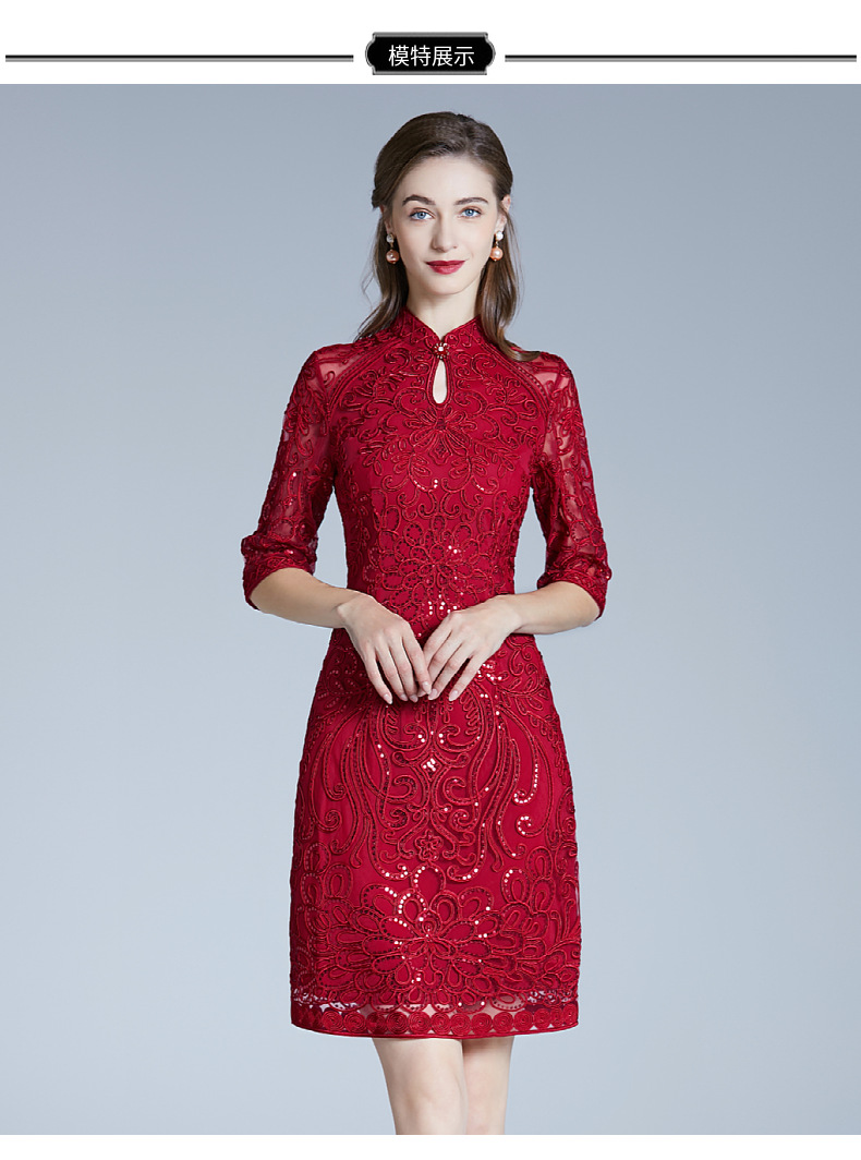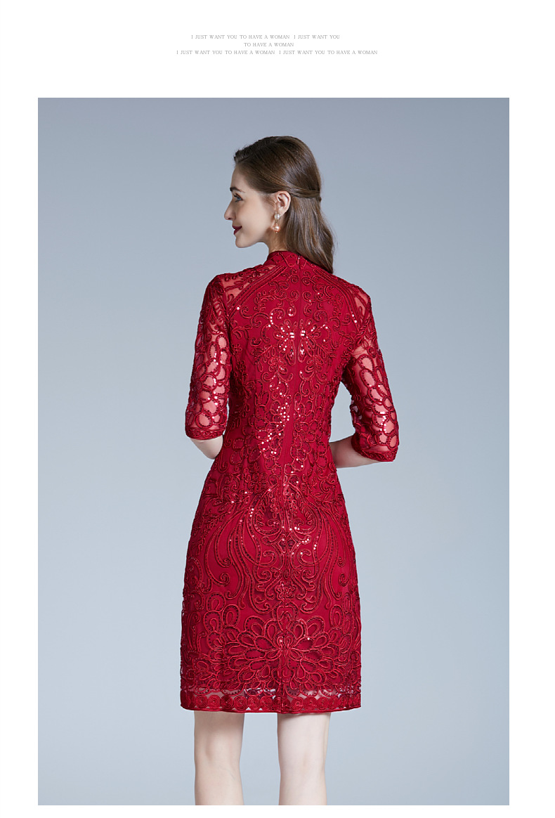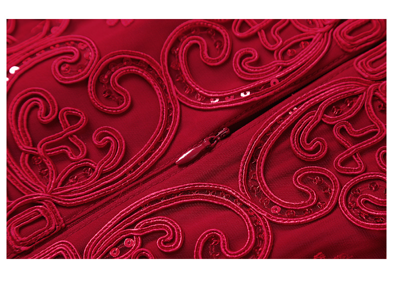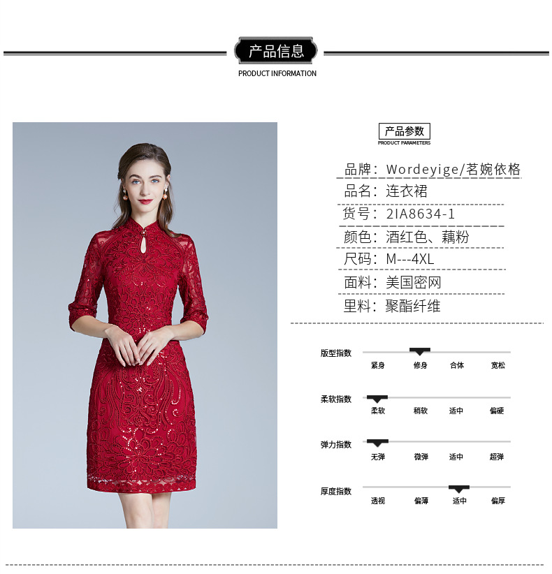 DNO-2IA8634-1网纱礼服婚宴红色小个婆婆大码连衣裙