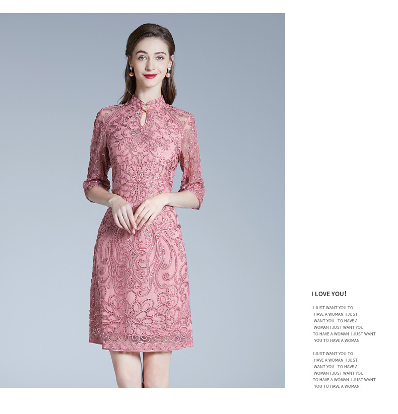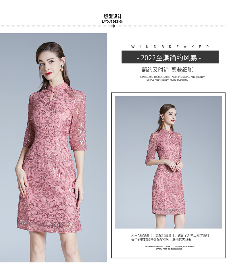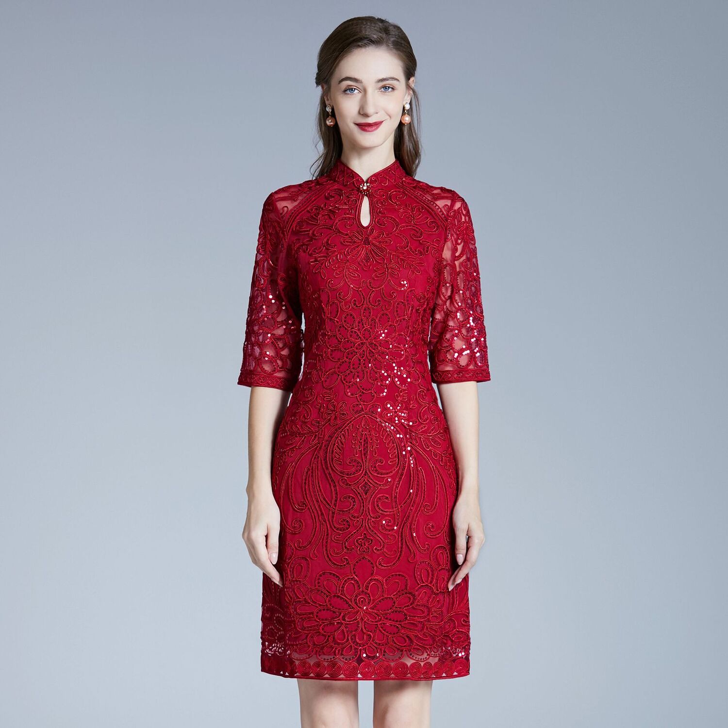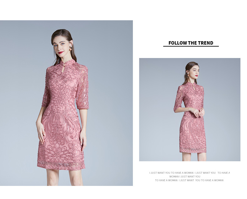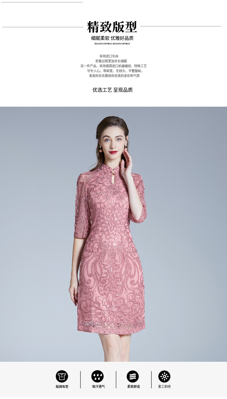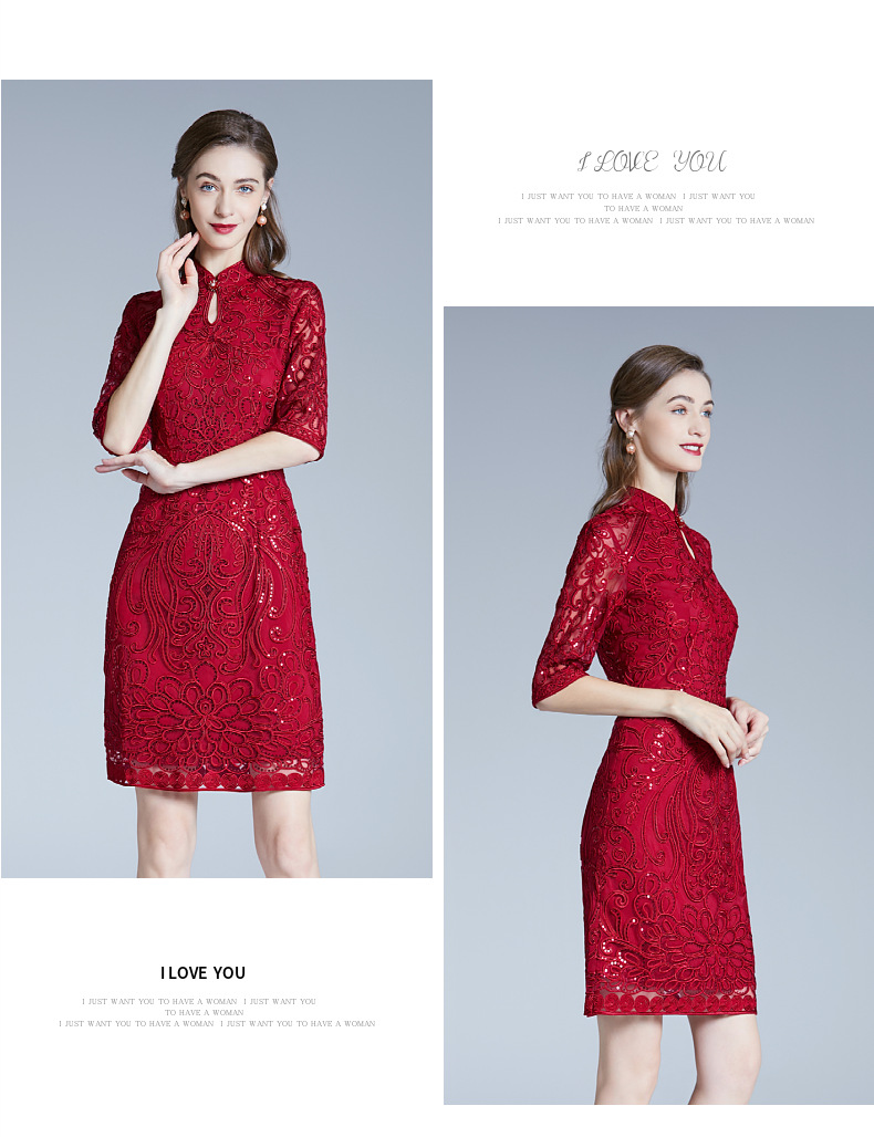 DNO-2IA8634-1网纱礼服婚宴红色小个婆婆大码连衣裙