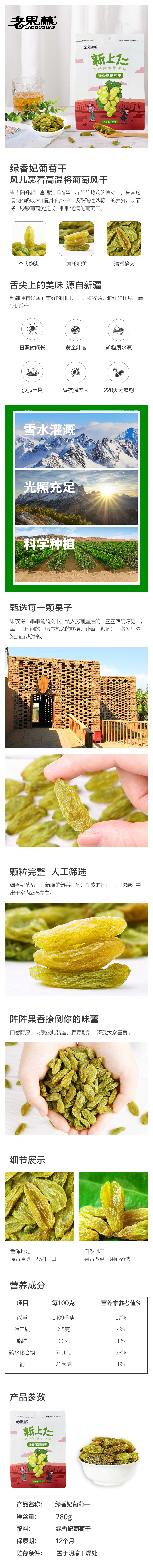 老果林·新疆喀什绿香妃葡萄干 280g 口感醇厚 肉质彼此黏连