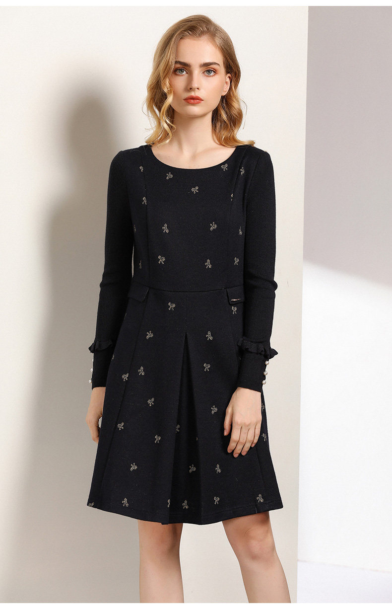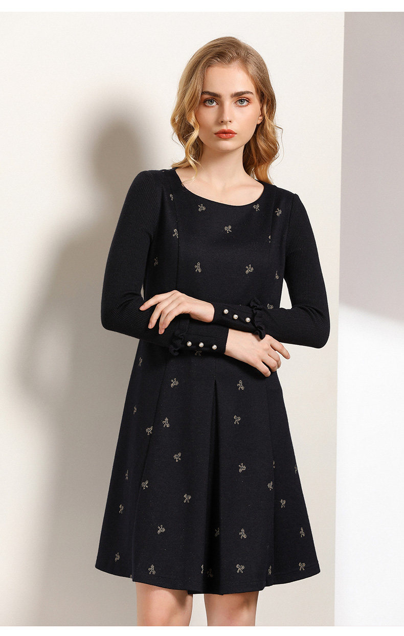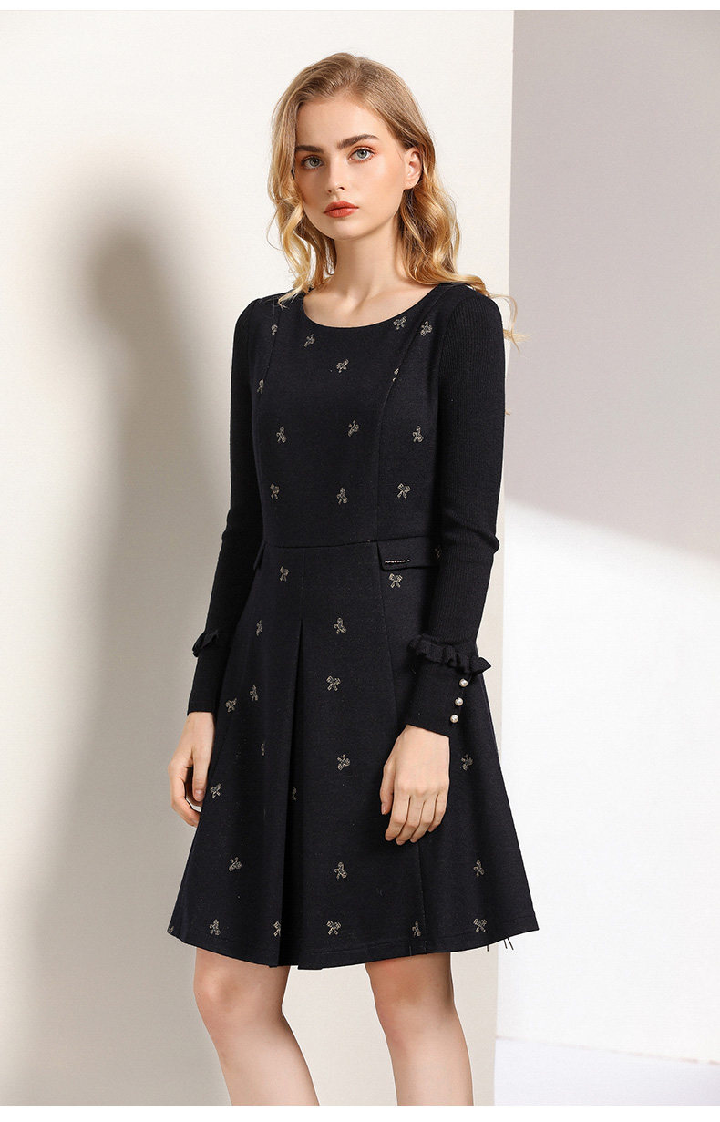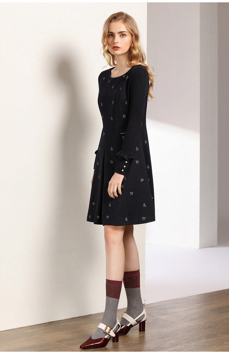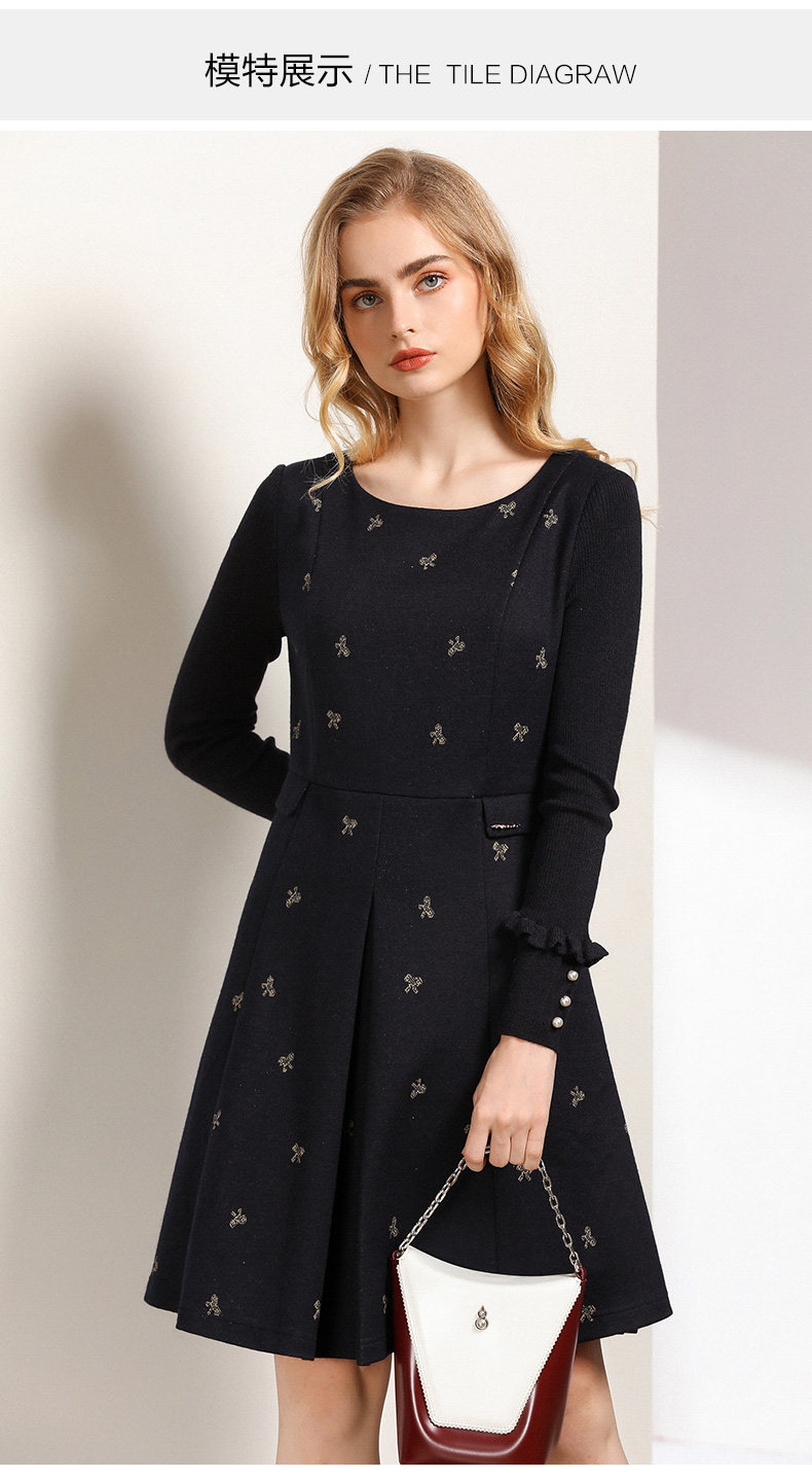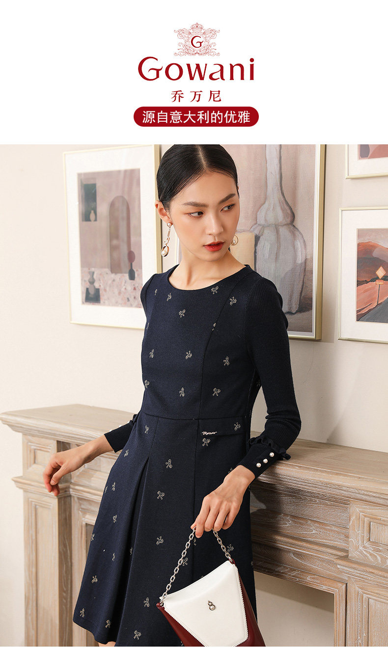 乔万尼连衣裙秋冬长袖连衣裙羊毛收腰显瘦打底连衣裙EB4E065