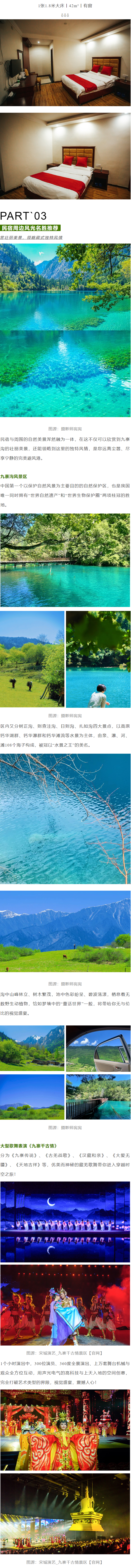 【套餐包含】: 【住】豪华大床/双床房任选1间1晚 【享】免费停车 【享】住店客人享九寨千古情门票专享价188元 【享】民宿用餐专享8折 |