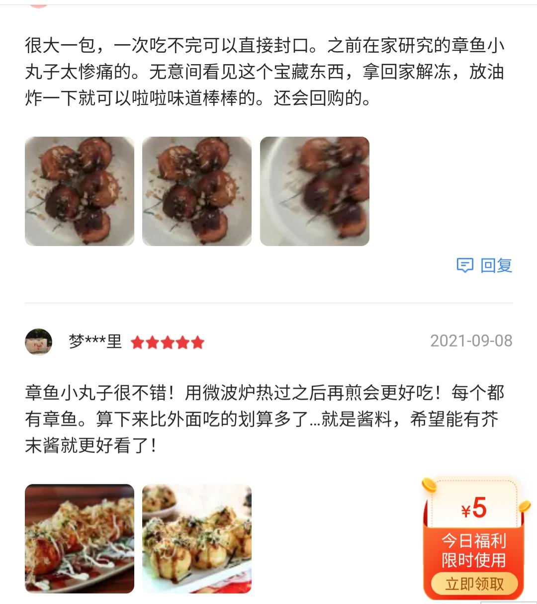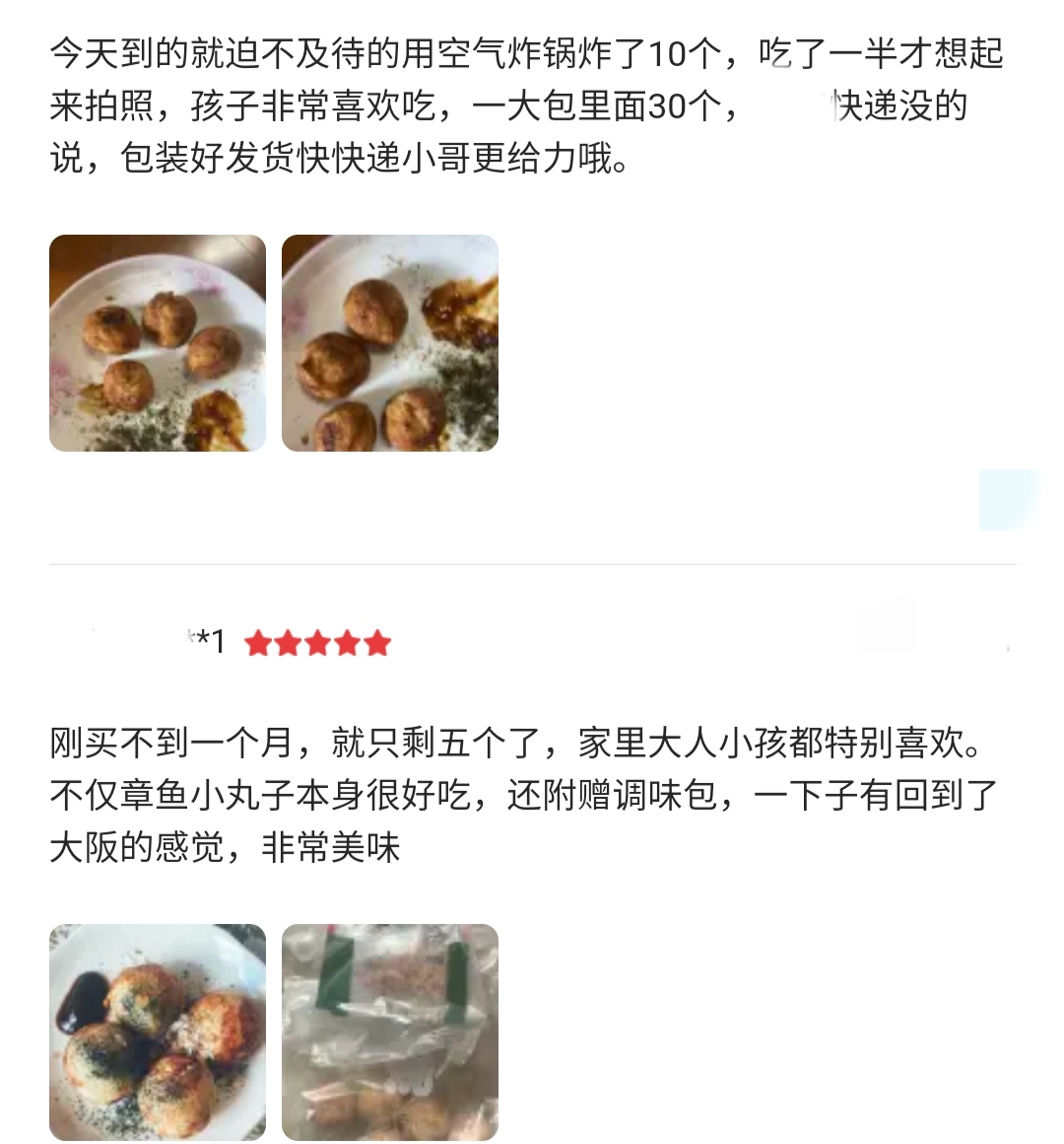 1.每颗里都有一块大大的章鱼肉,原材料采用黄海野生章鱼,吃得出的新鲜,Q弹有嚼劲!让一颗小丸子的口感变得更丰富
