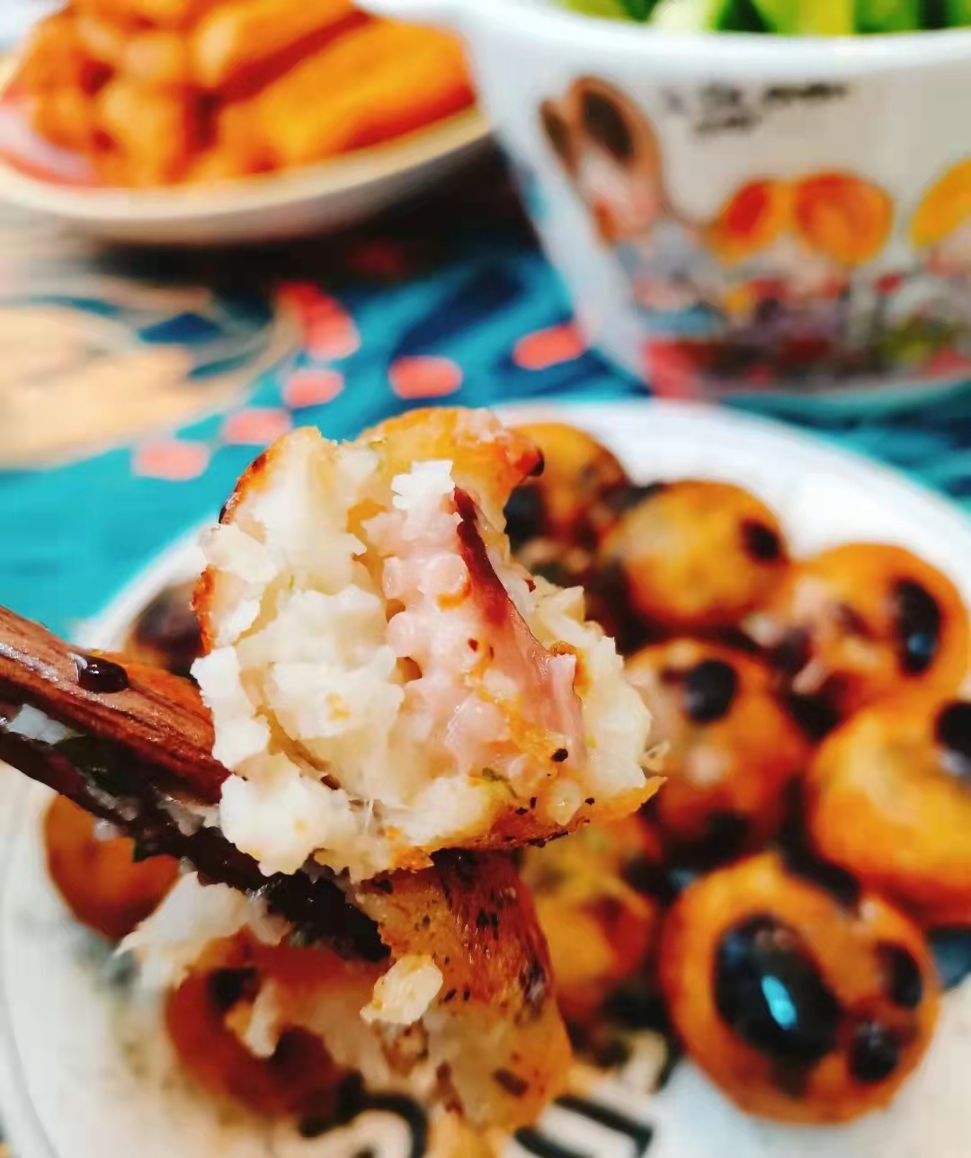 超大颗小丸子,咬下去贼满足,粉感并不厚重,内馅超级丰富 里面有章鱼和大头菜配以小葱提香,软中带脆,章鱼很有嚼劲,鲜中带香,鲜而不腥。