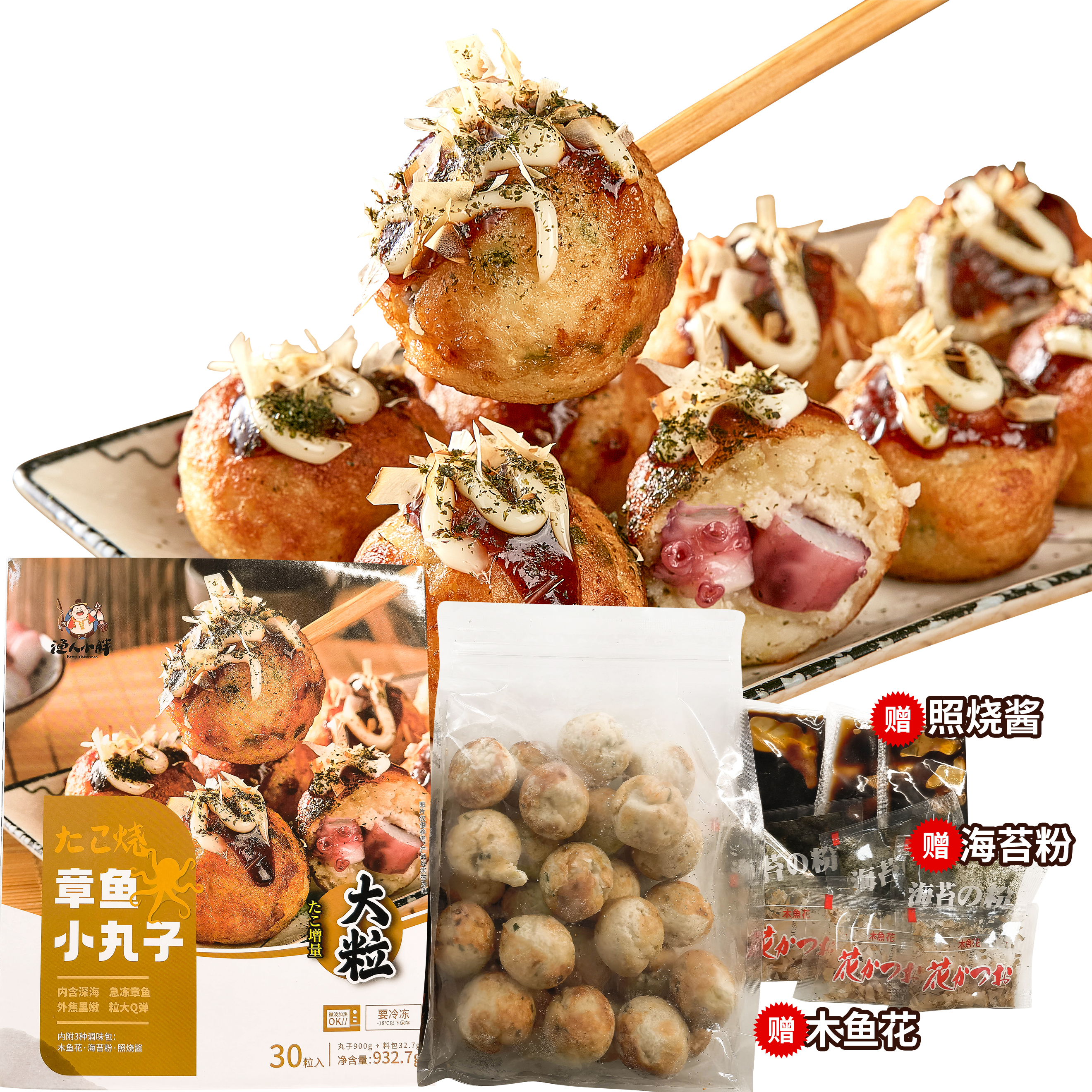 山の姆同款!超大颗【日式章鱼小丸子】加送木鱼花/照烧酱/海苔粉!纯手工制作 料足味美 深海野生章鱼 粒大Q弹 外皮酥脆 内里软糯 顺丰到家