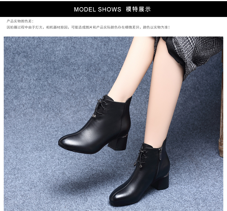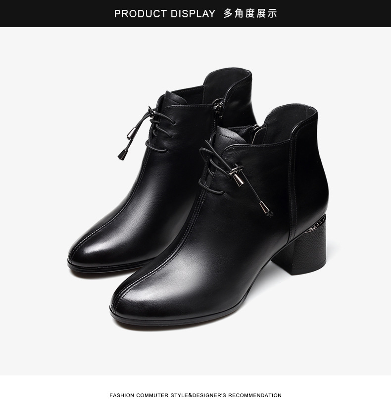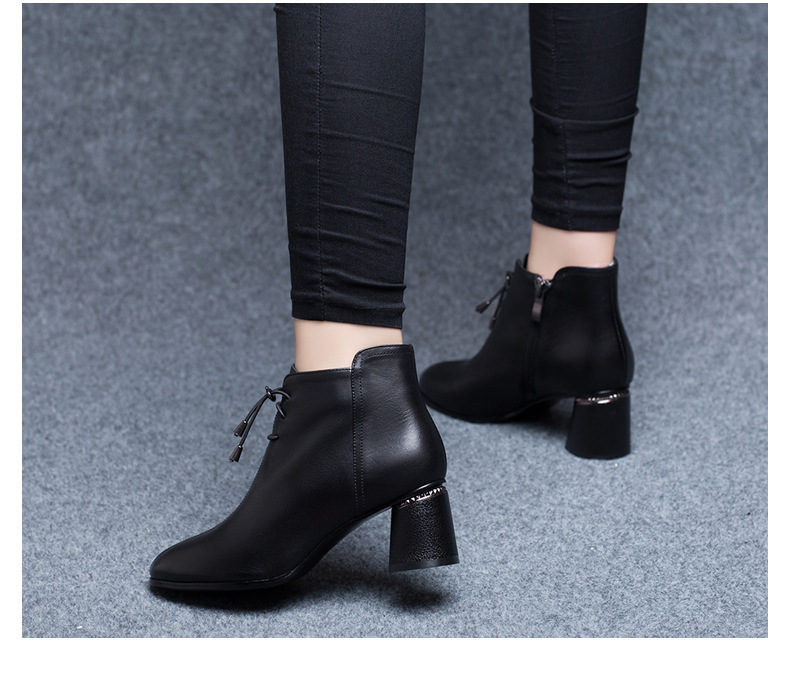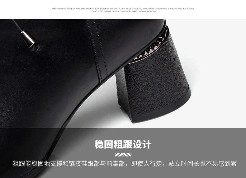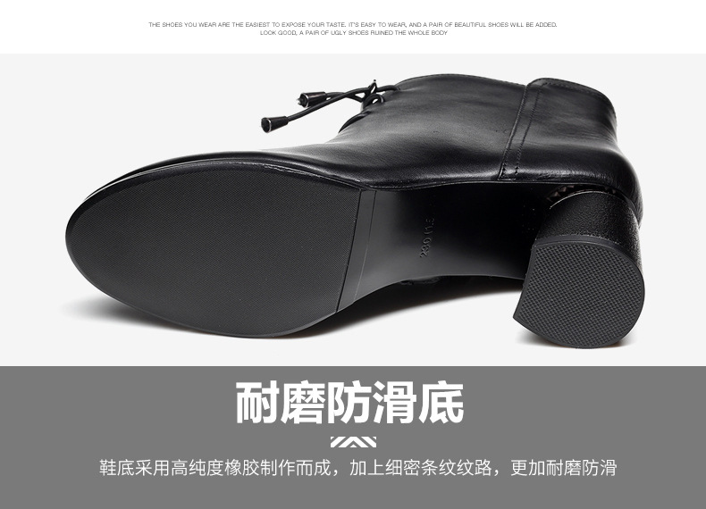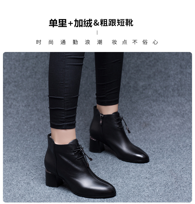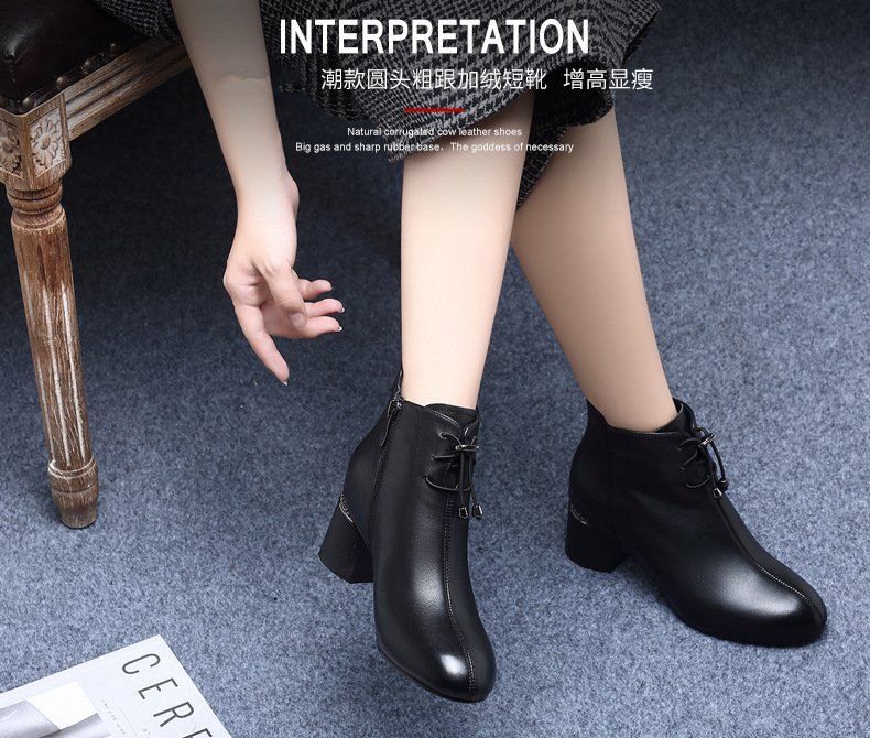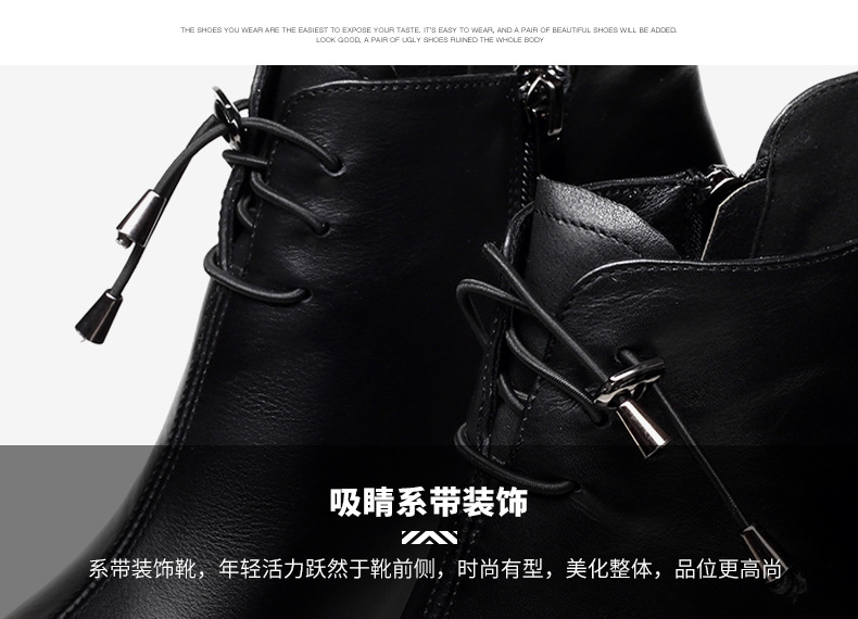 LN5844新款时尚气质圆头短粗跟马丁靴