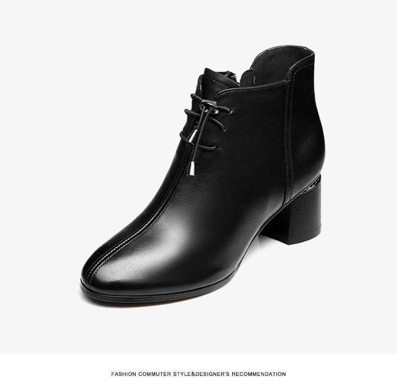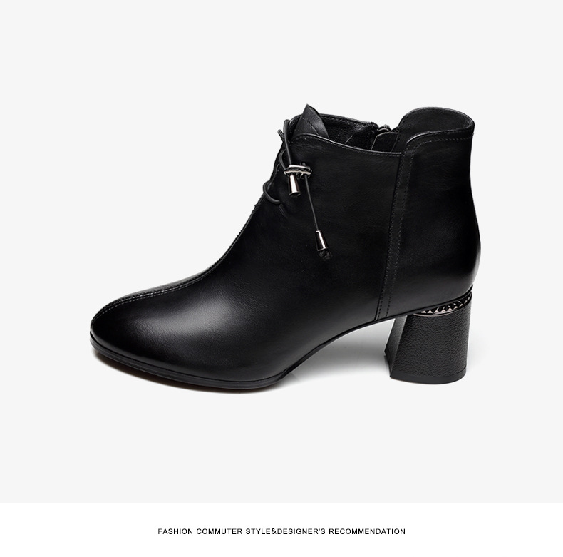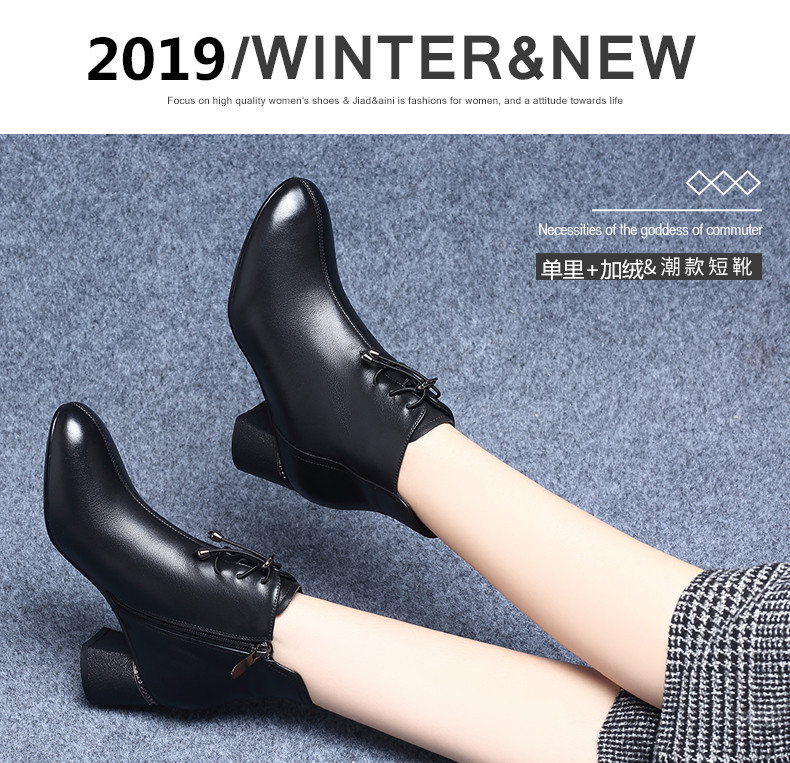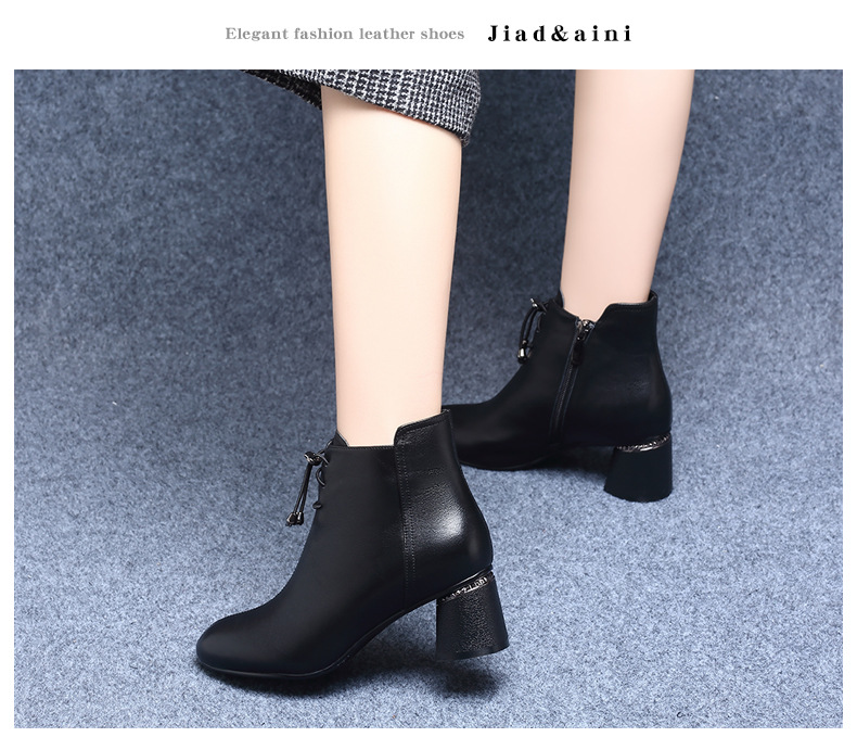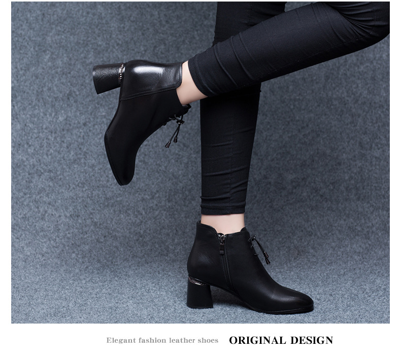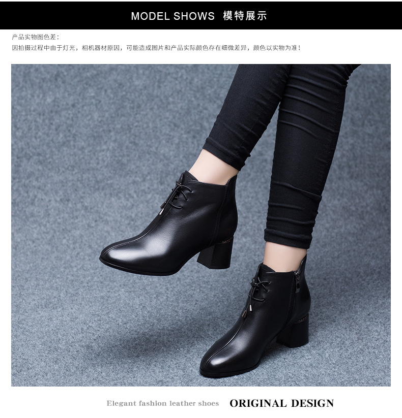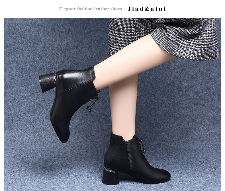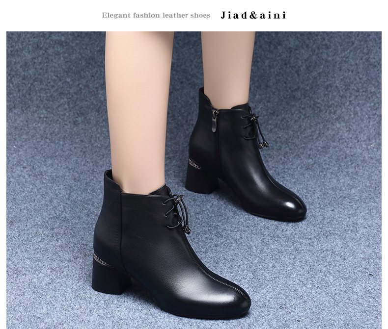 LN5844新款时尚气质圆头短粗跟马丁靴