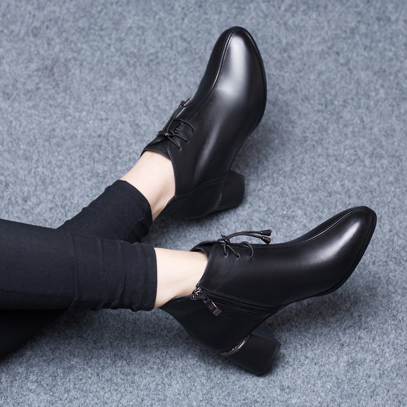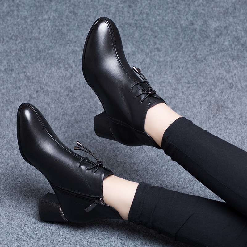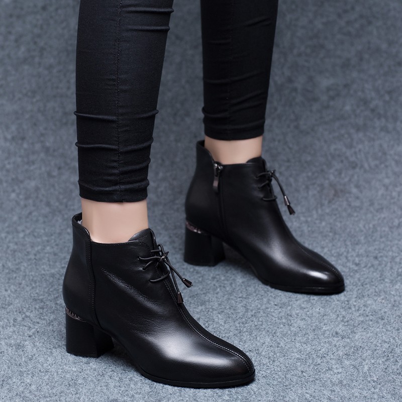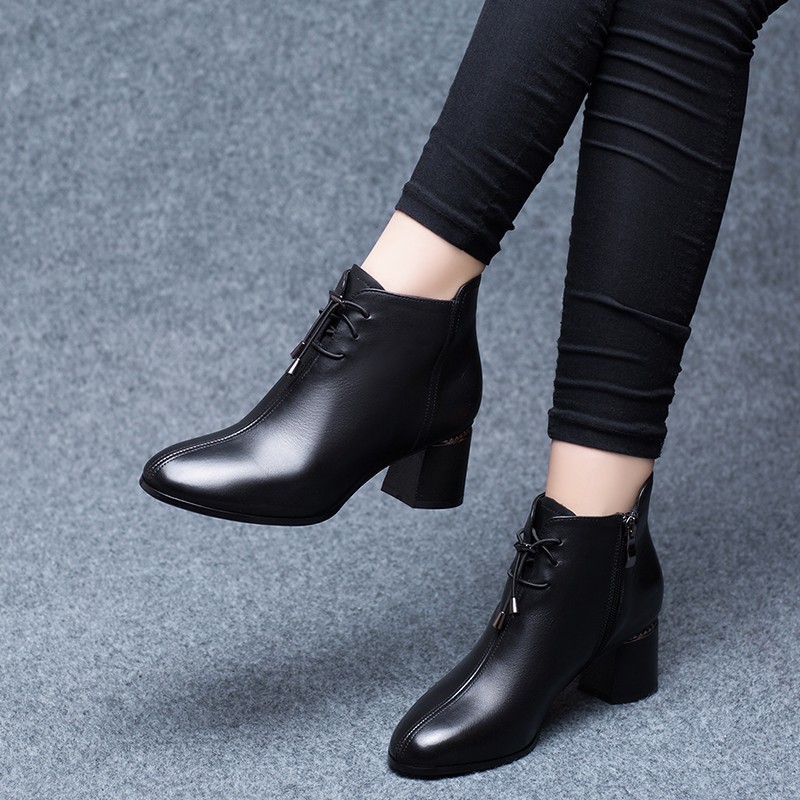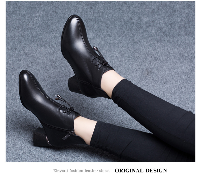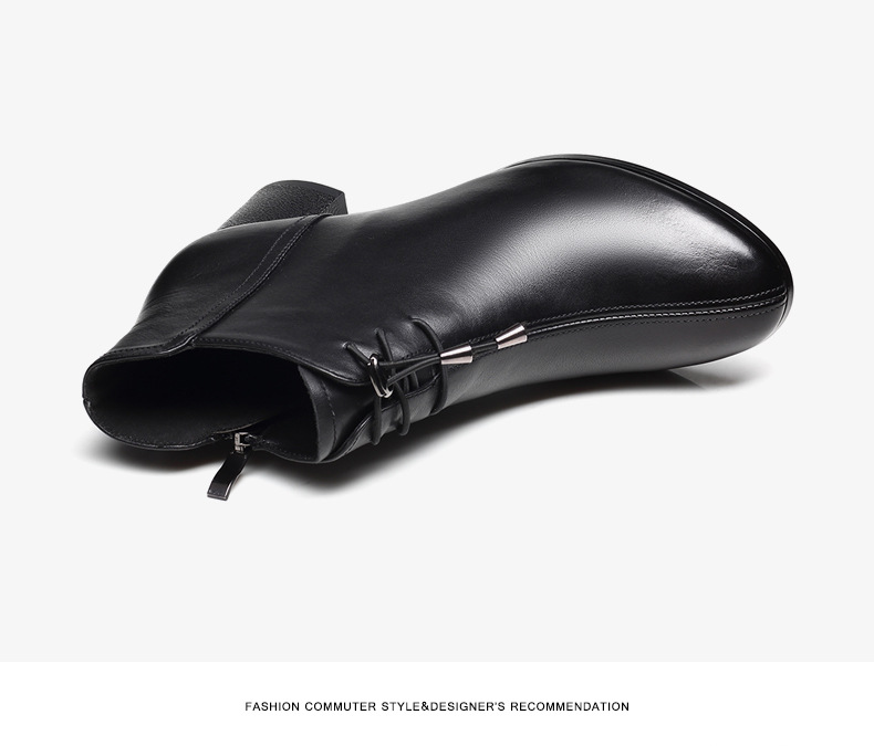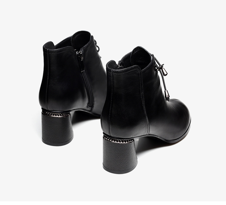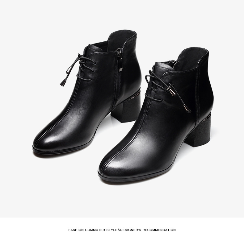 LN5844新款时尚气质圆头短粗跟马丁靴