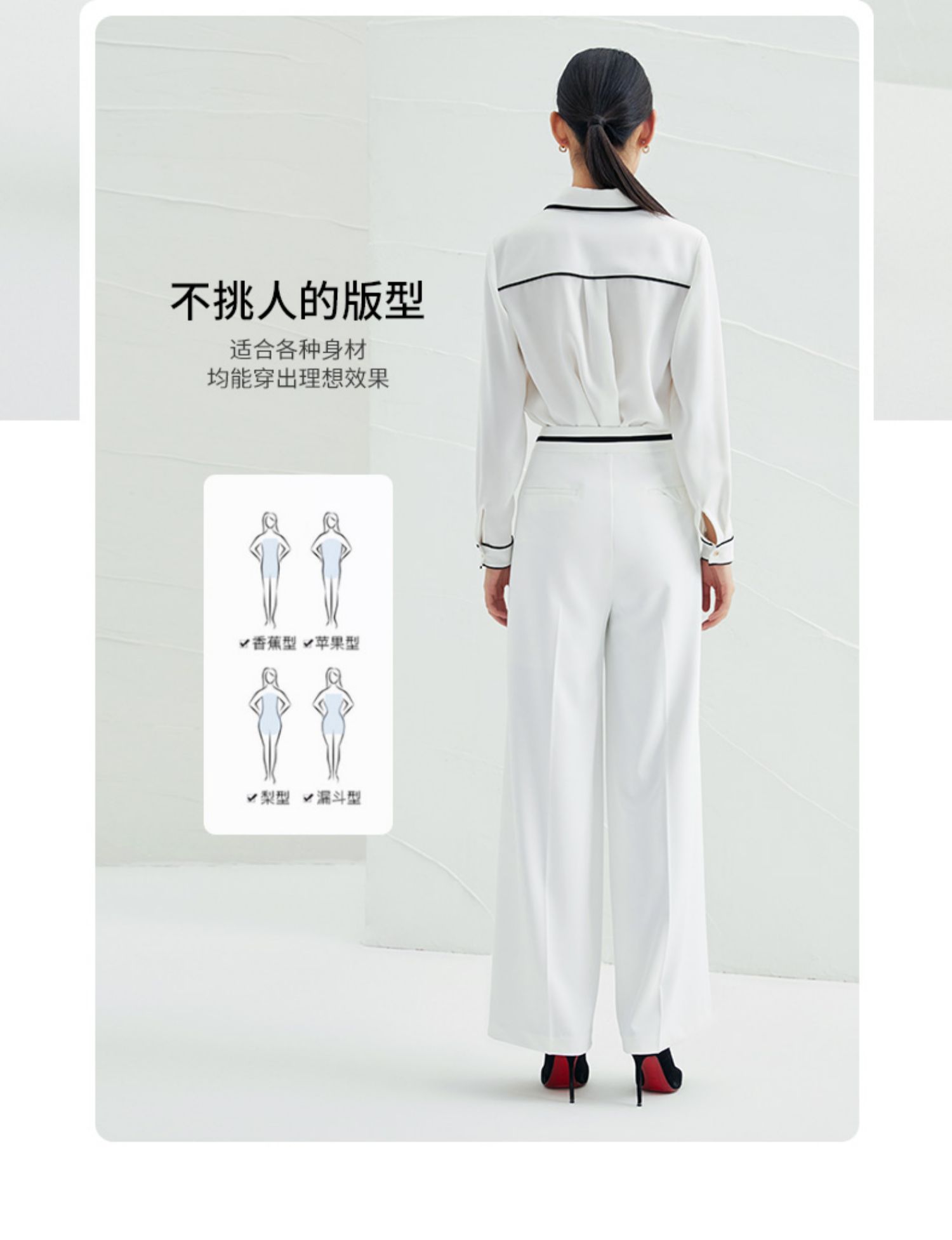 EITIE爱特爱春季新款白色通勤时尚显瘦百搭高腰休闲阔腿裤女A2205923