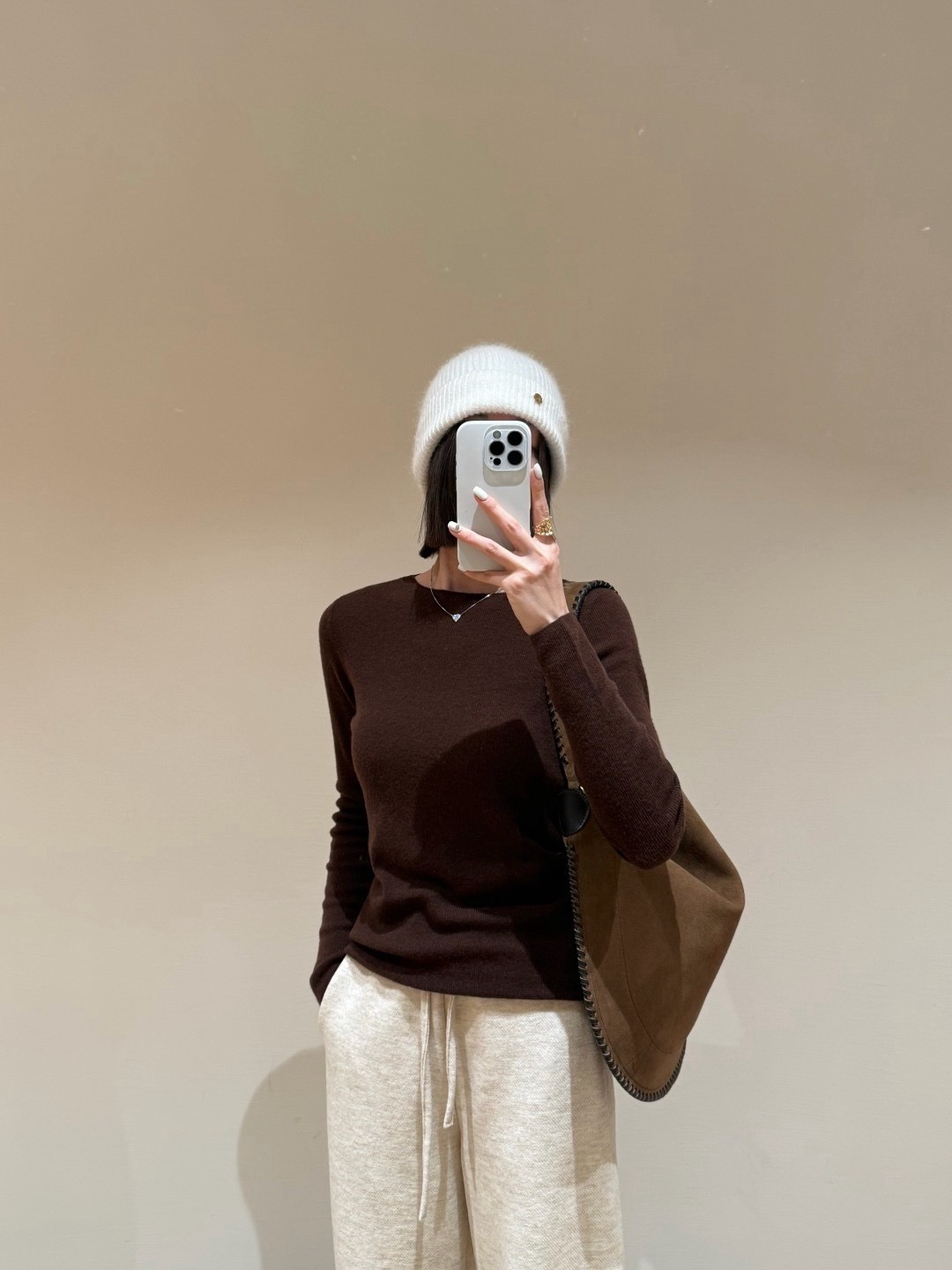 2️⃣咖色有点深巧克力的感觉 超级显白搭配黑灰色裤子 这个颜色很显白 也是他家今天主打色