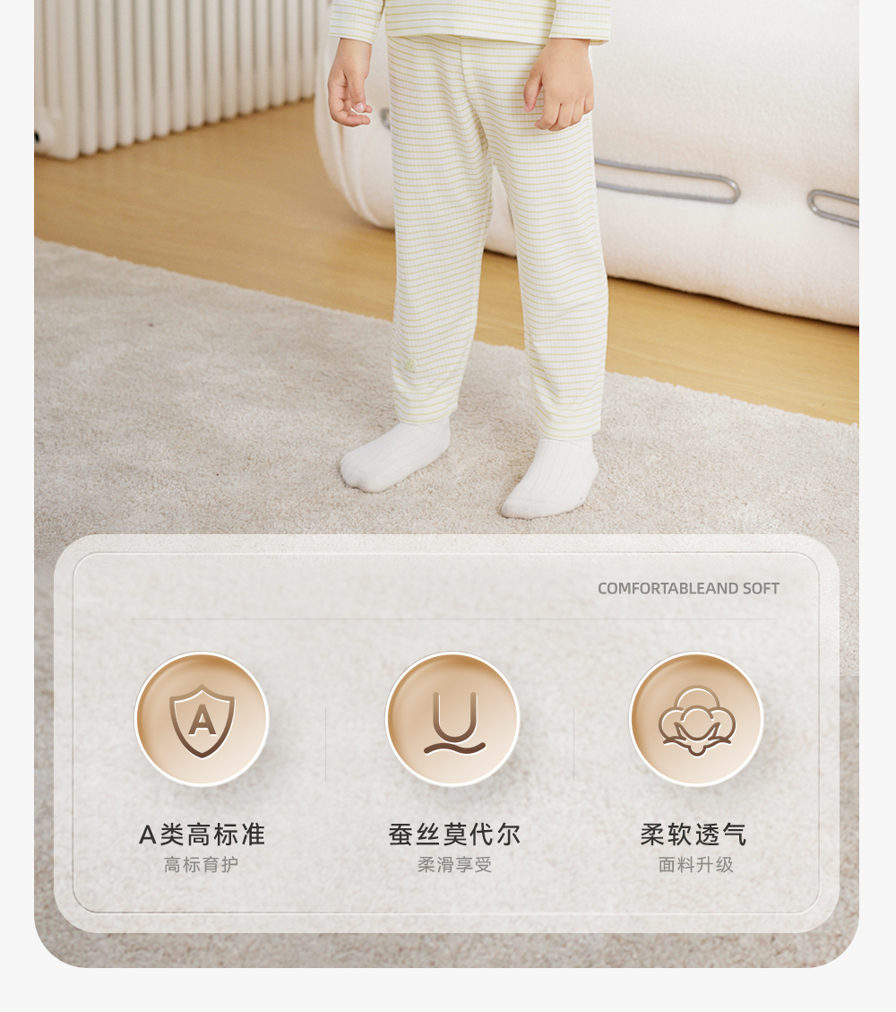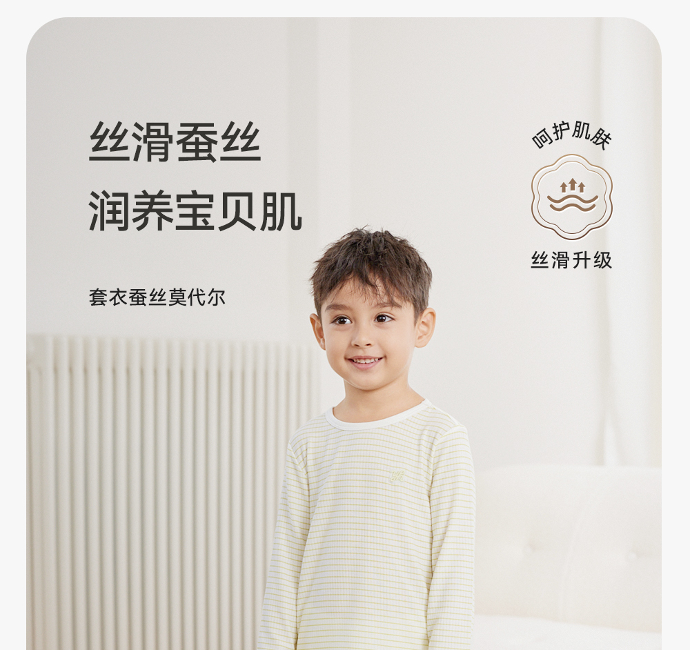 【商场同款】英氏童装蚕丝莫代尔婴童保暖内衣男女家居服上衣新款