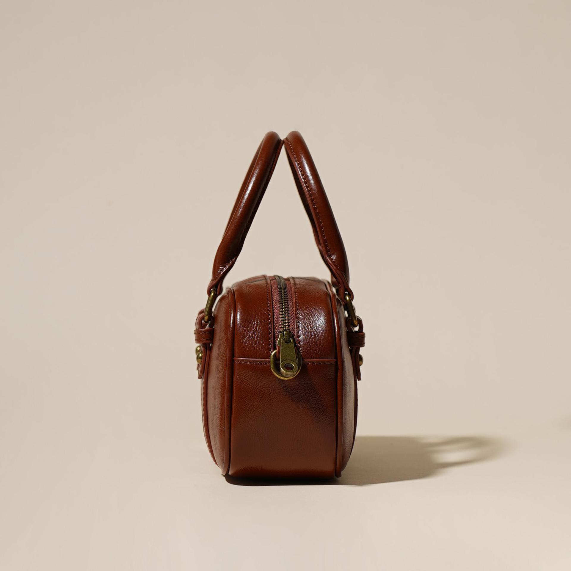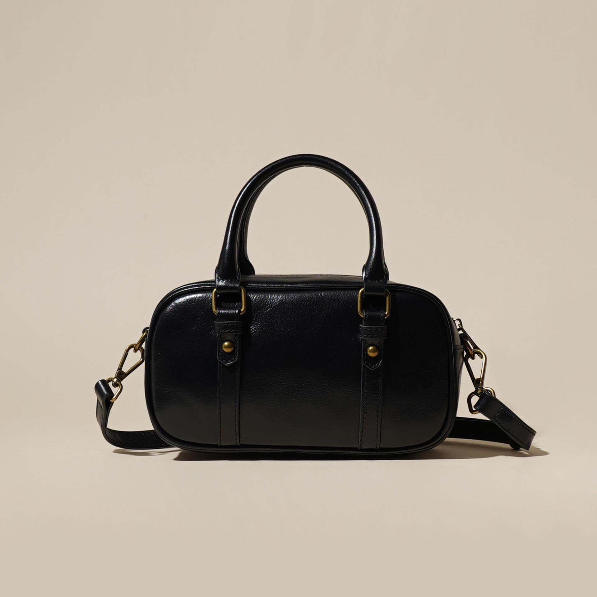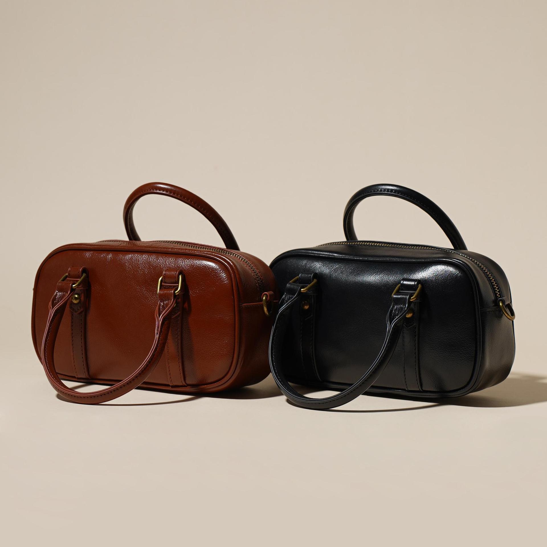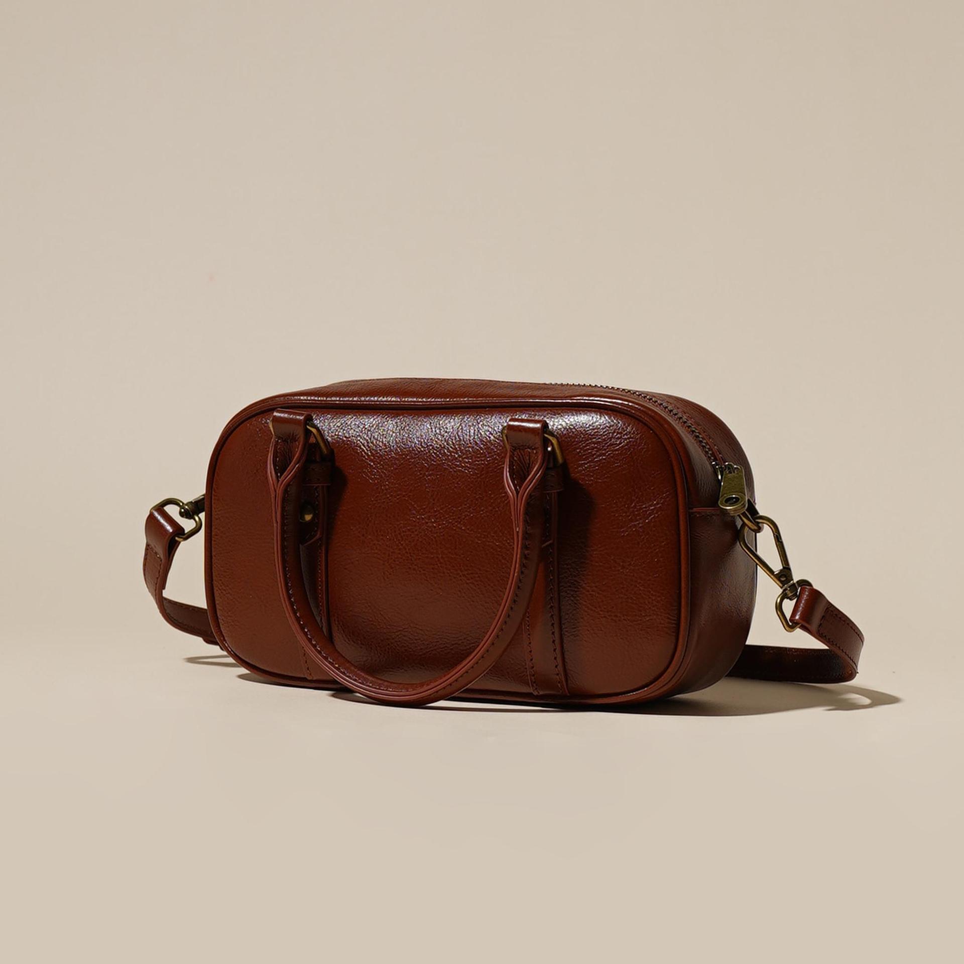 雀说 头层牛皮百搭单肩包小众复古斜跨女包时尚手提简约手拎包6151-D