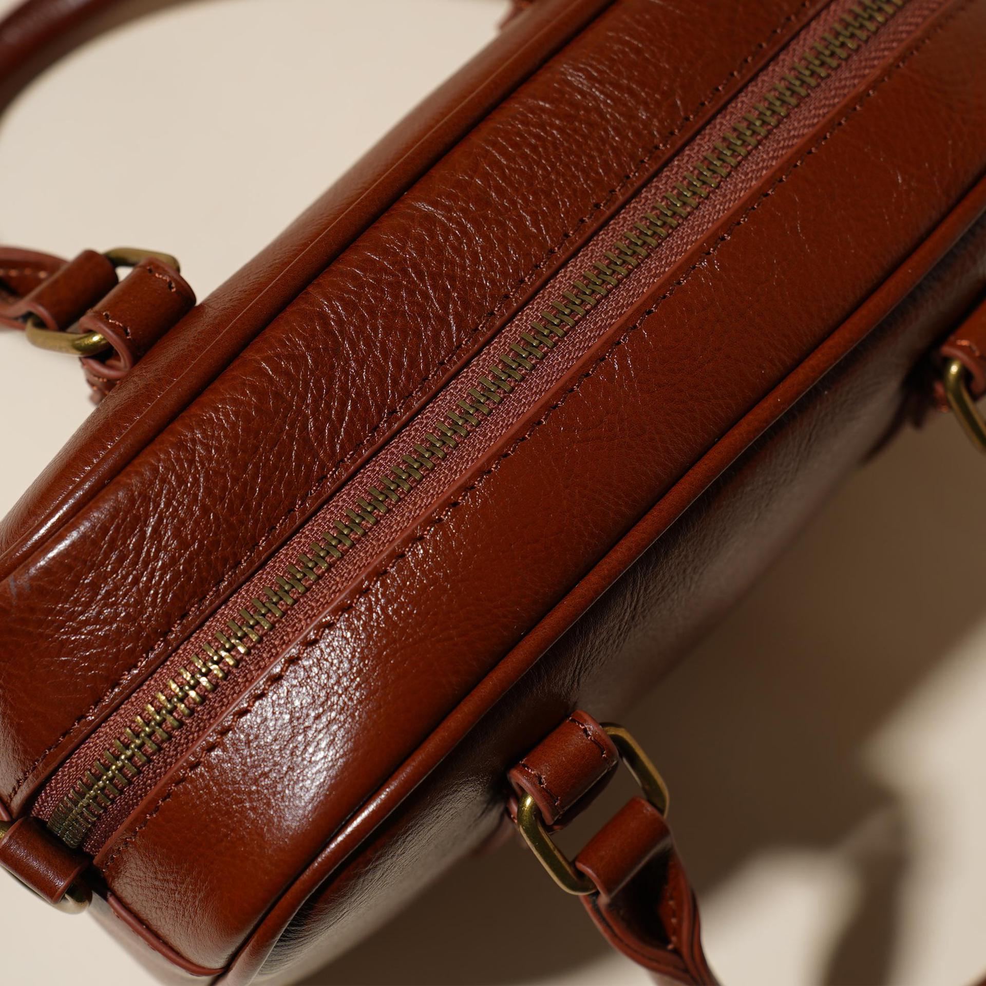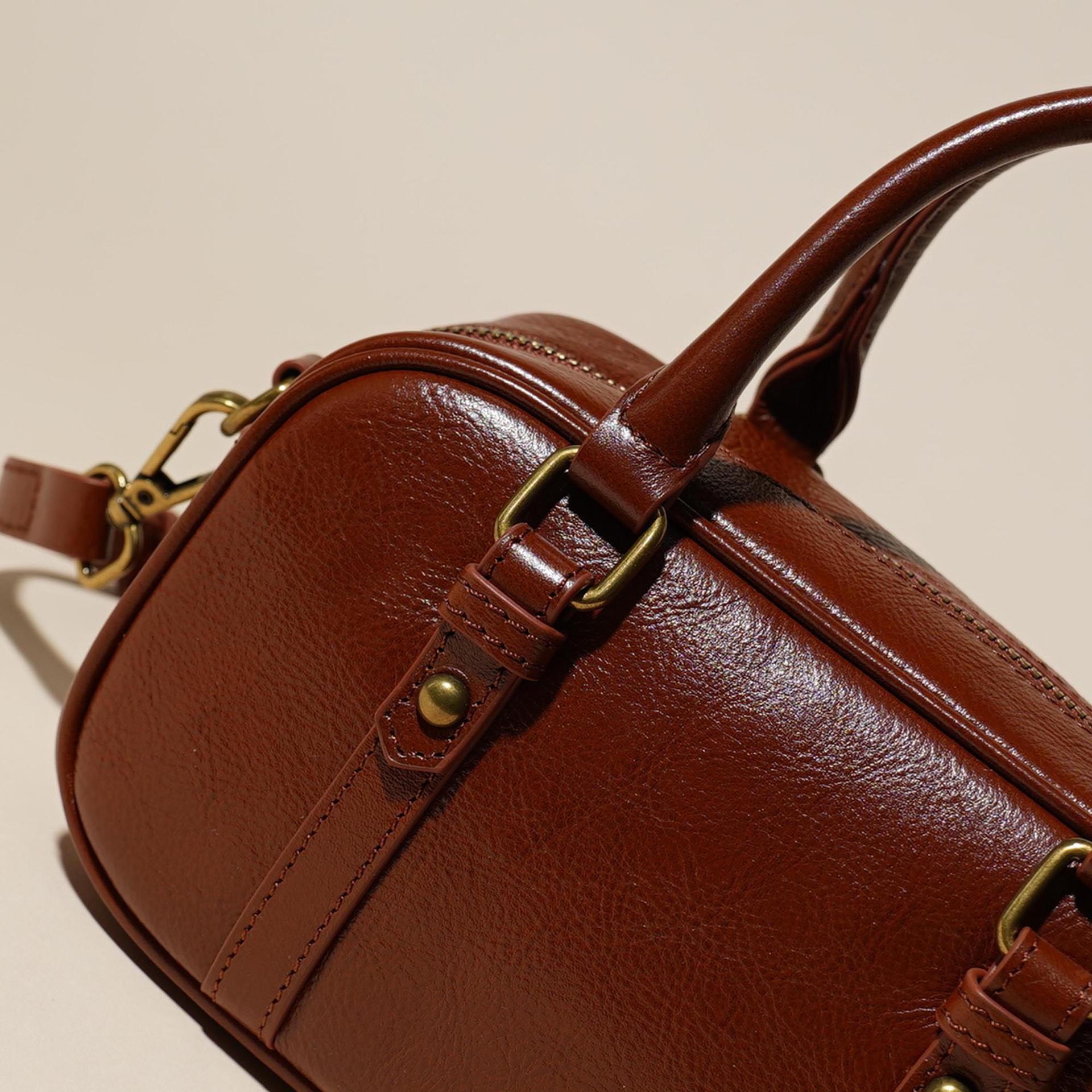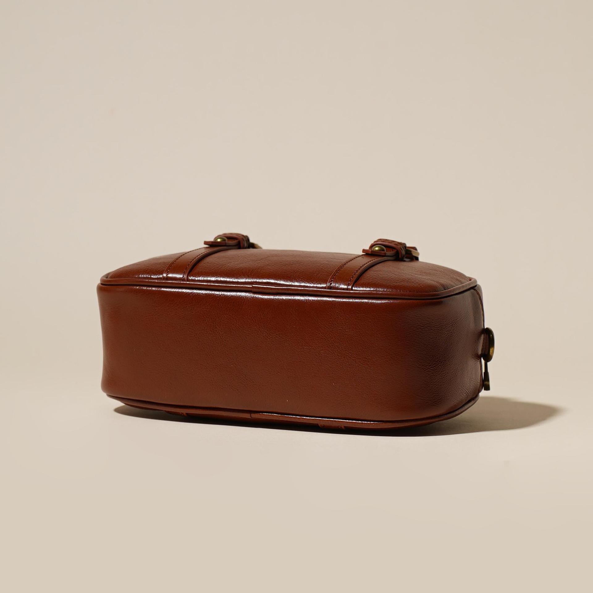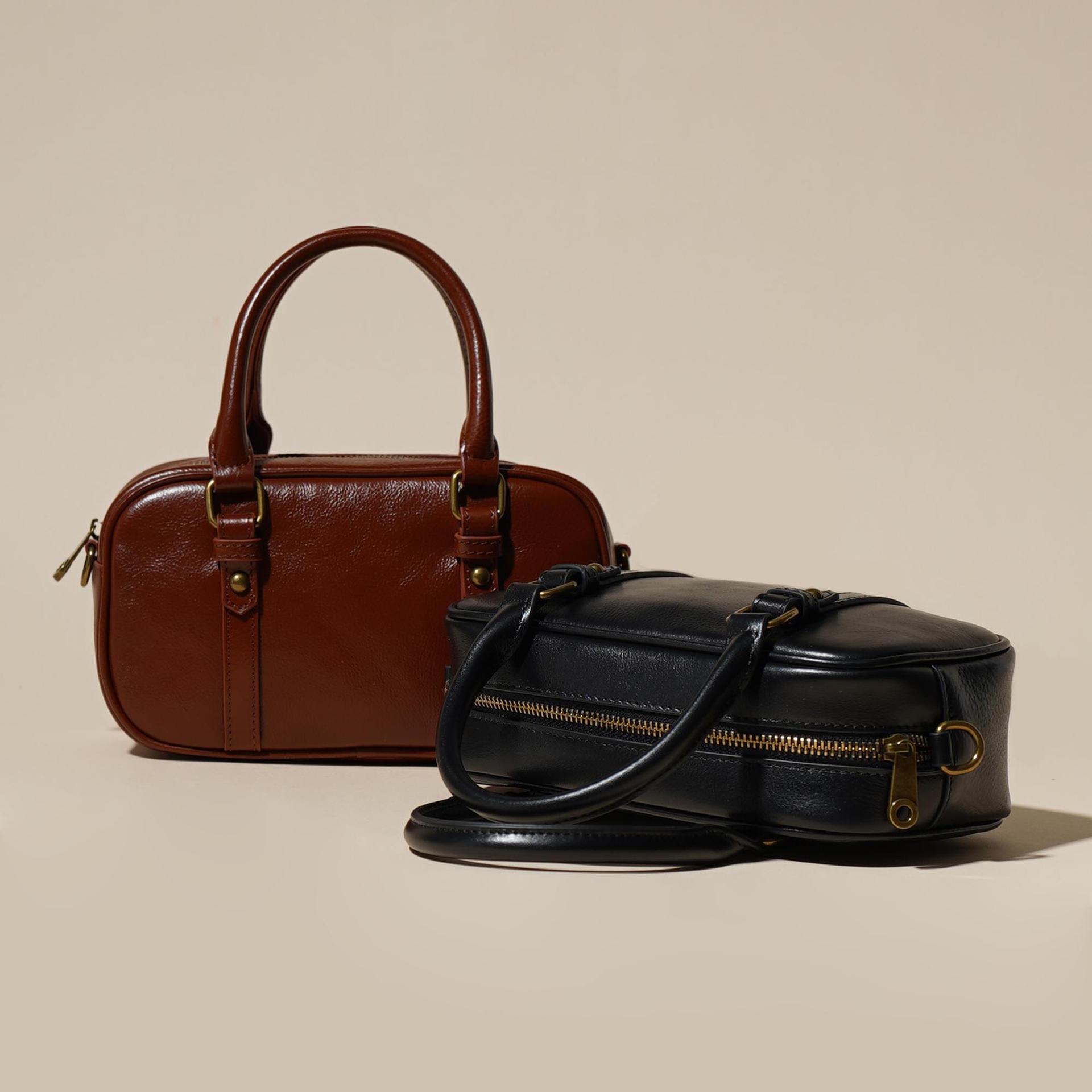 雀说 头层牛皮百搭单肩包小众复古斜跨女包时尚手提简约手拎包6151-D