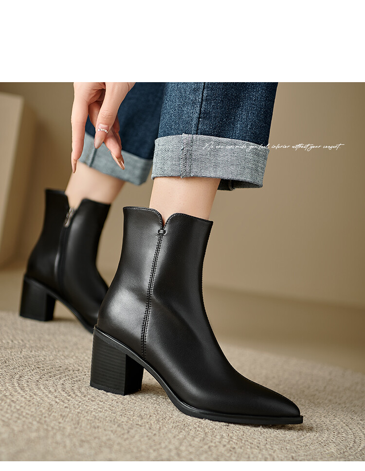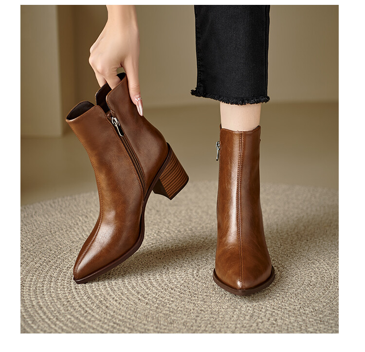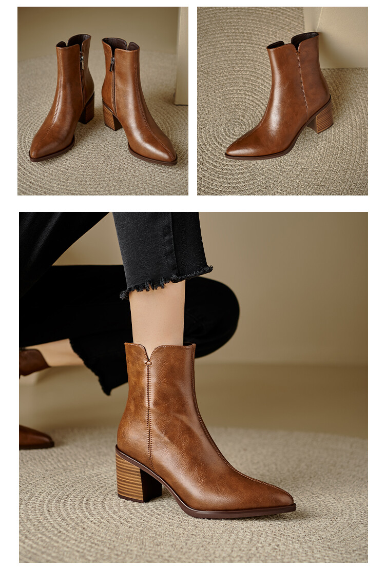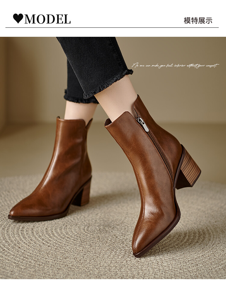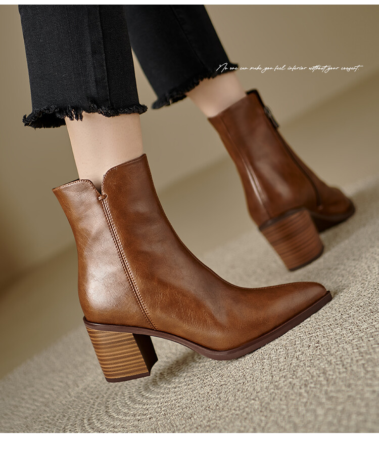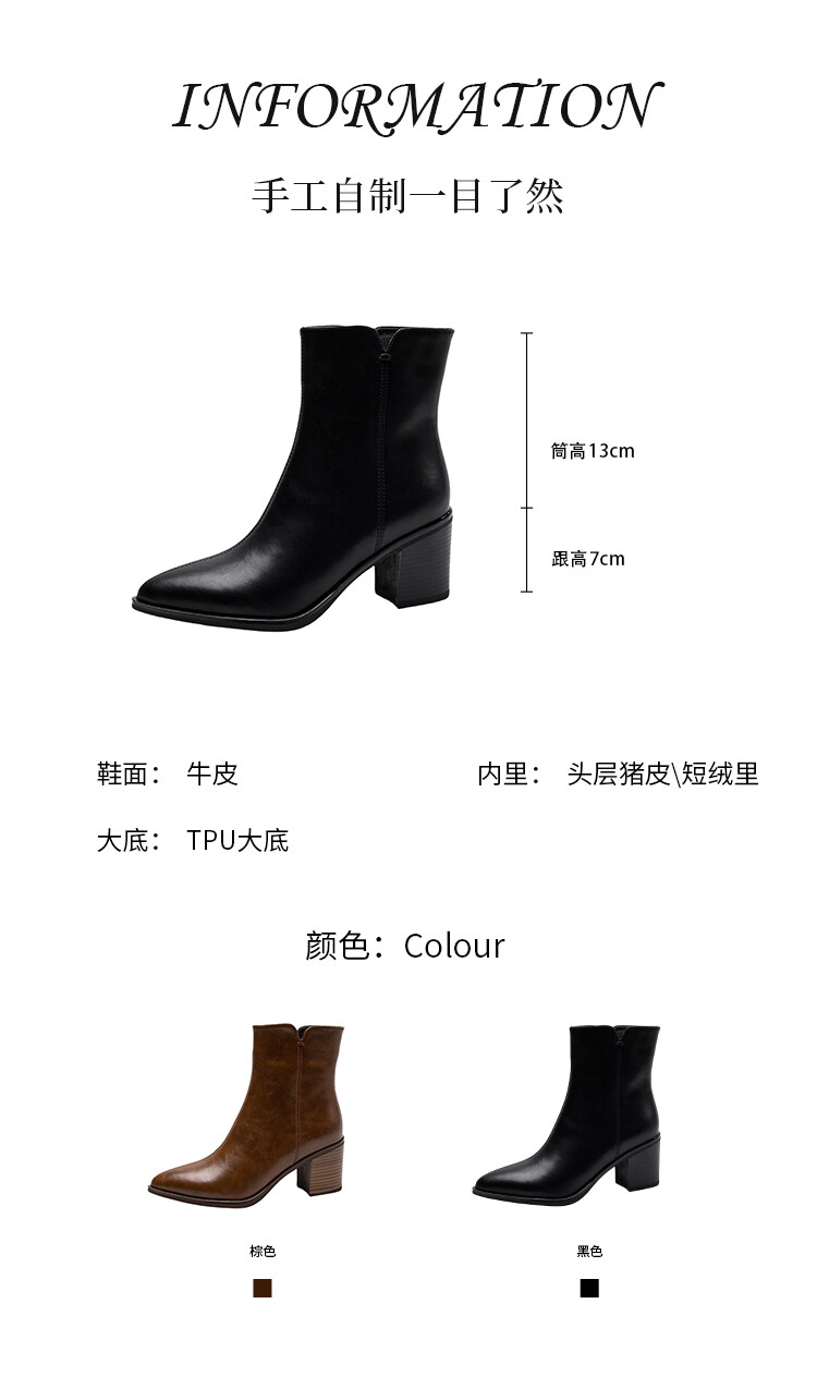 【预售5天】法式复古尖头粗跟短靴女单靴秋冬款英伦风高跟显瘦马丁靴YLD&X983