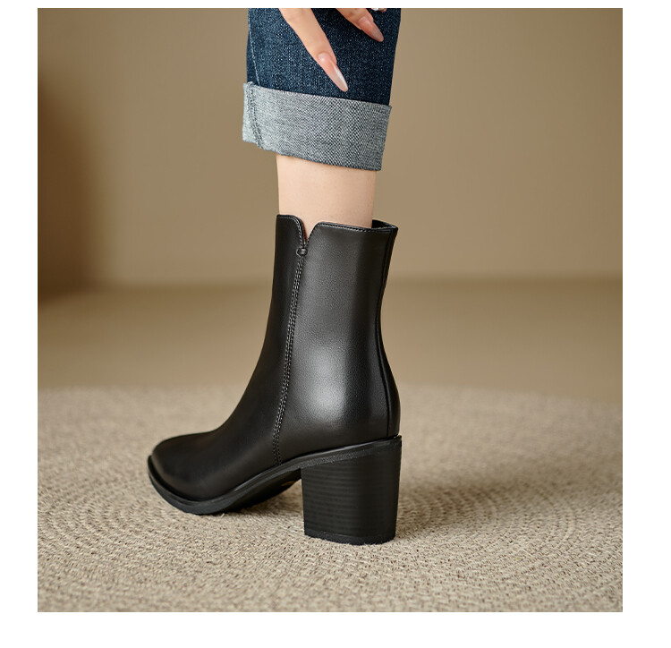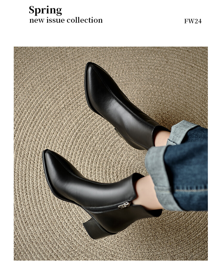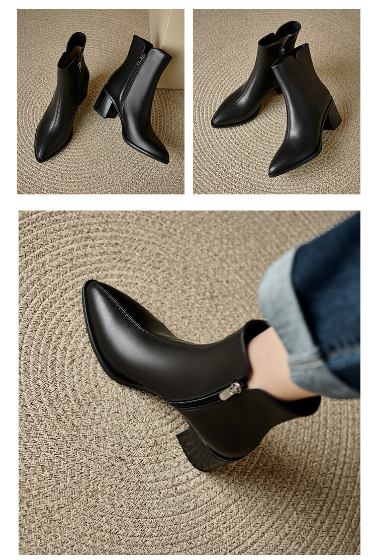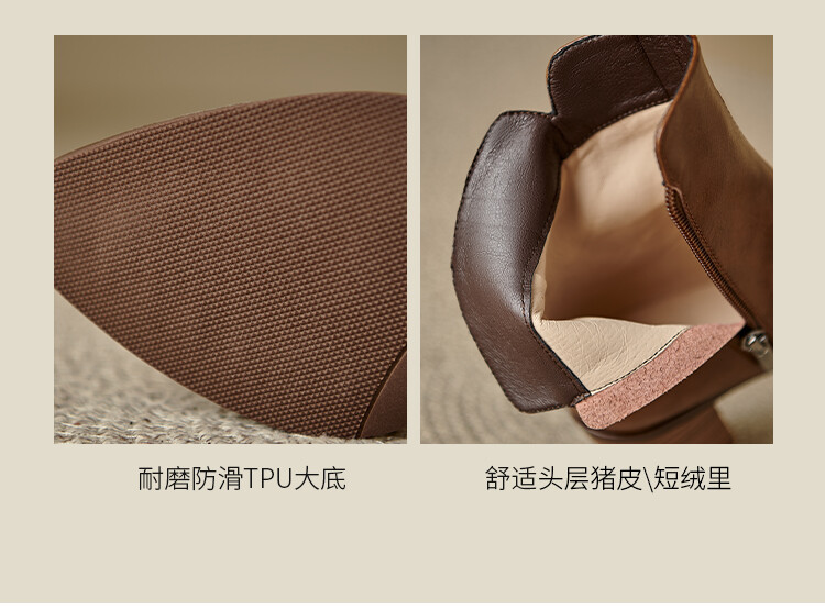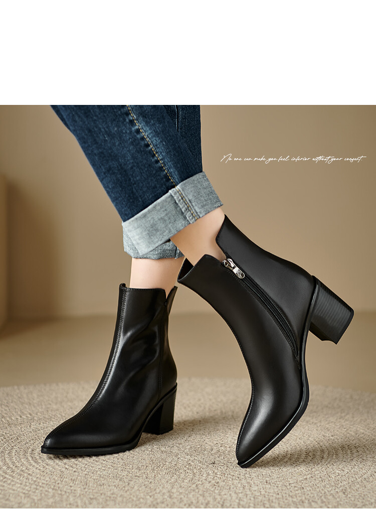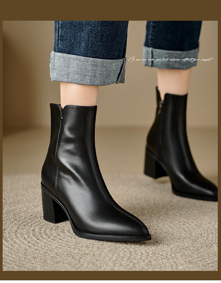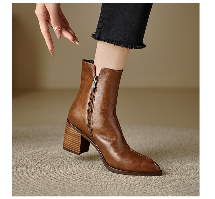 【预售5天】法式复古尖头粗跟短靴女单靴秋冬款英伦风高跟显瘦马丁靴YLD&X983