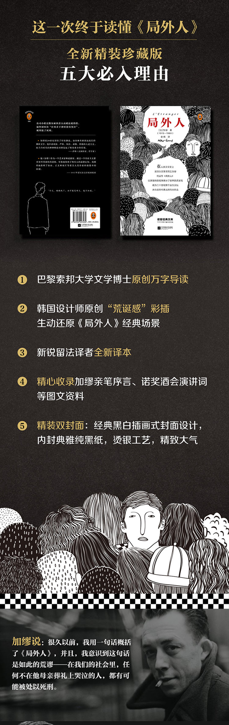 3.新锐留法译者全新译本,展现《局外人》“冷峻”文字风格。