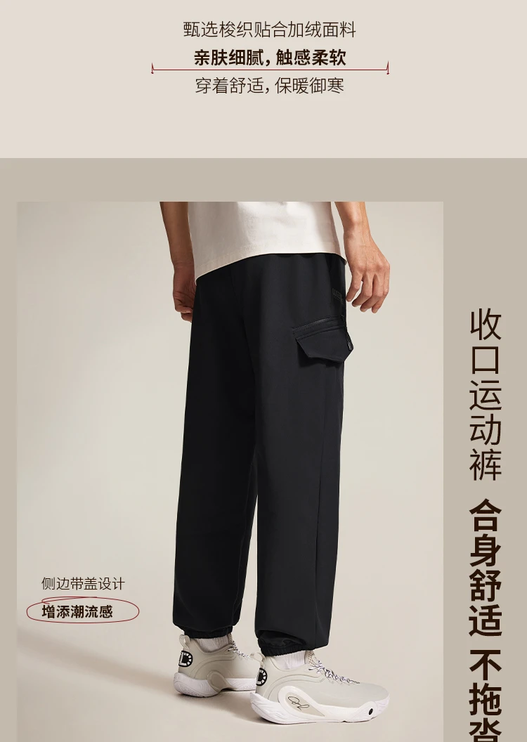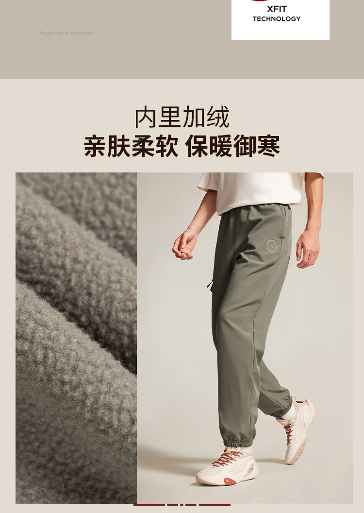 李宁韦德系列男子束脚加绒保暖防泼水宽松运动长裤AYKV435