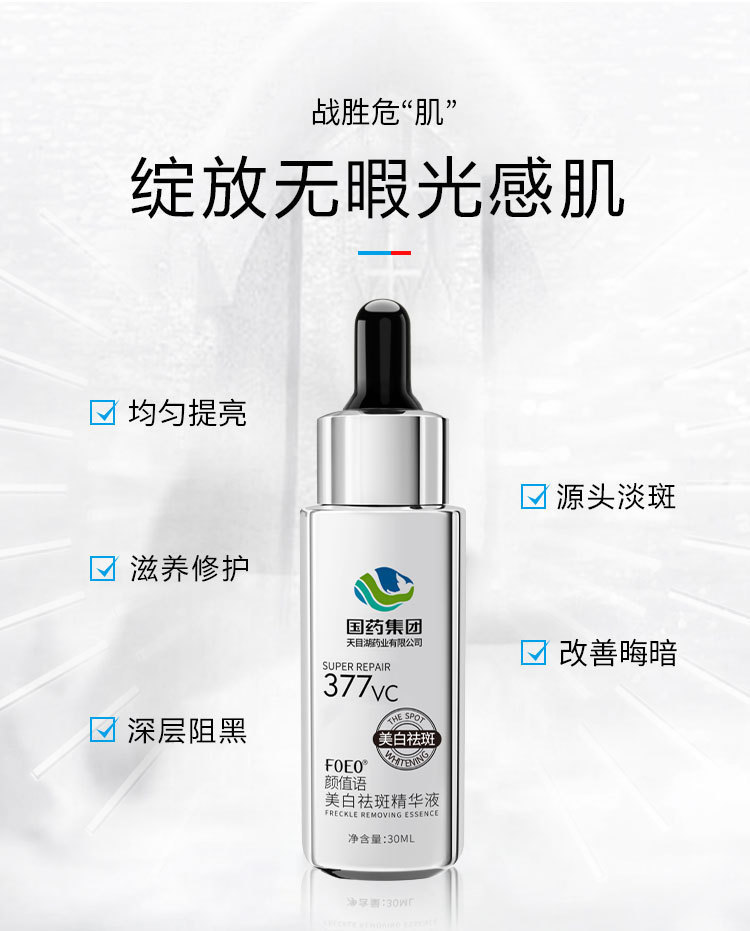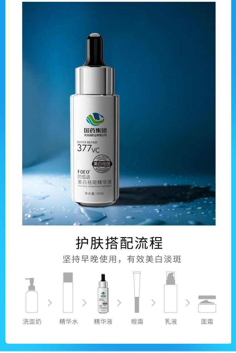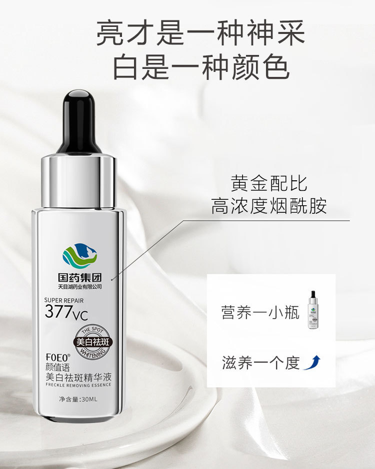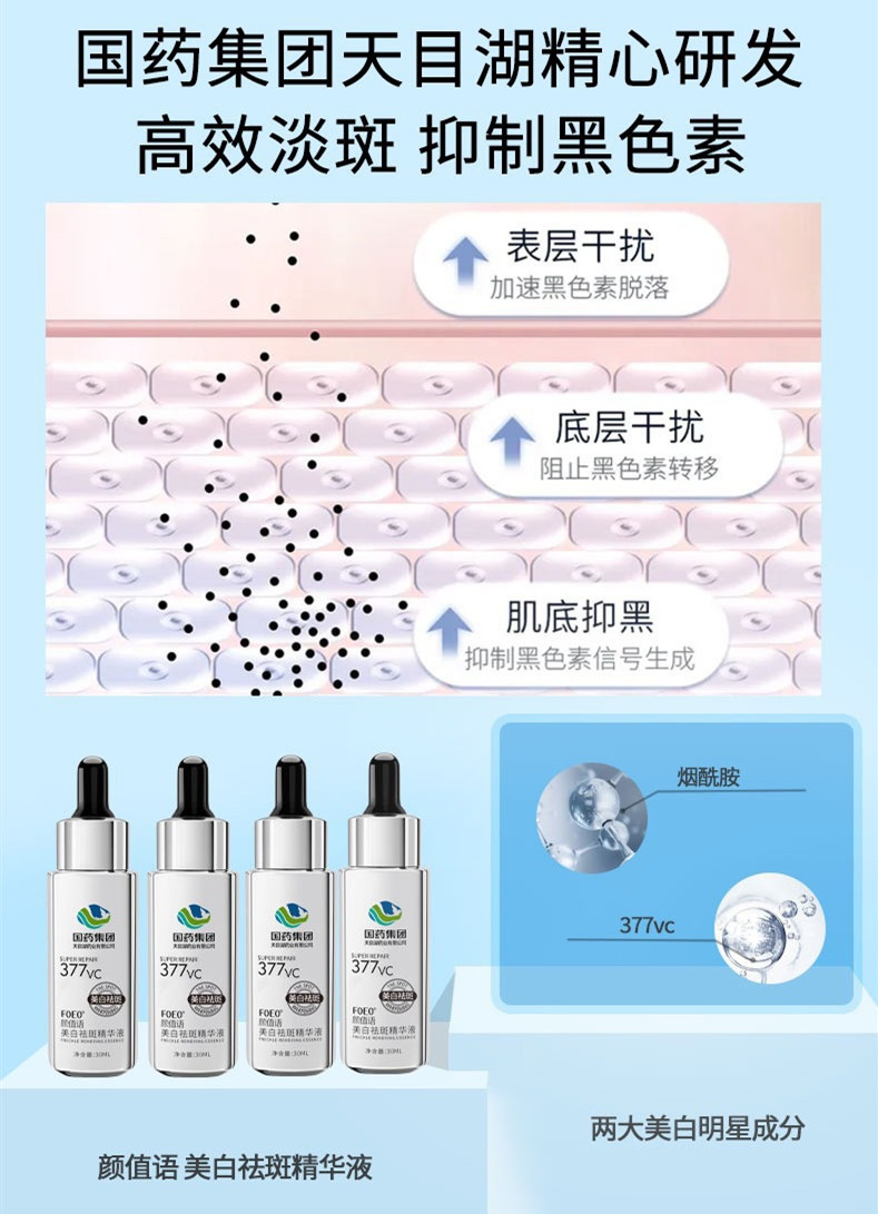 【淡斑美白点亮新肌】国药集团烟酰胺377vc美白淡斑精华液植物精华萃取美白肌肤、精准祛斑、温和配方持续养肤