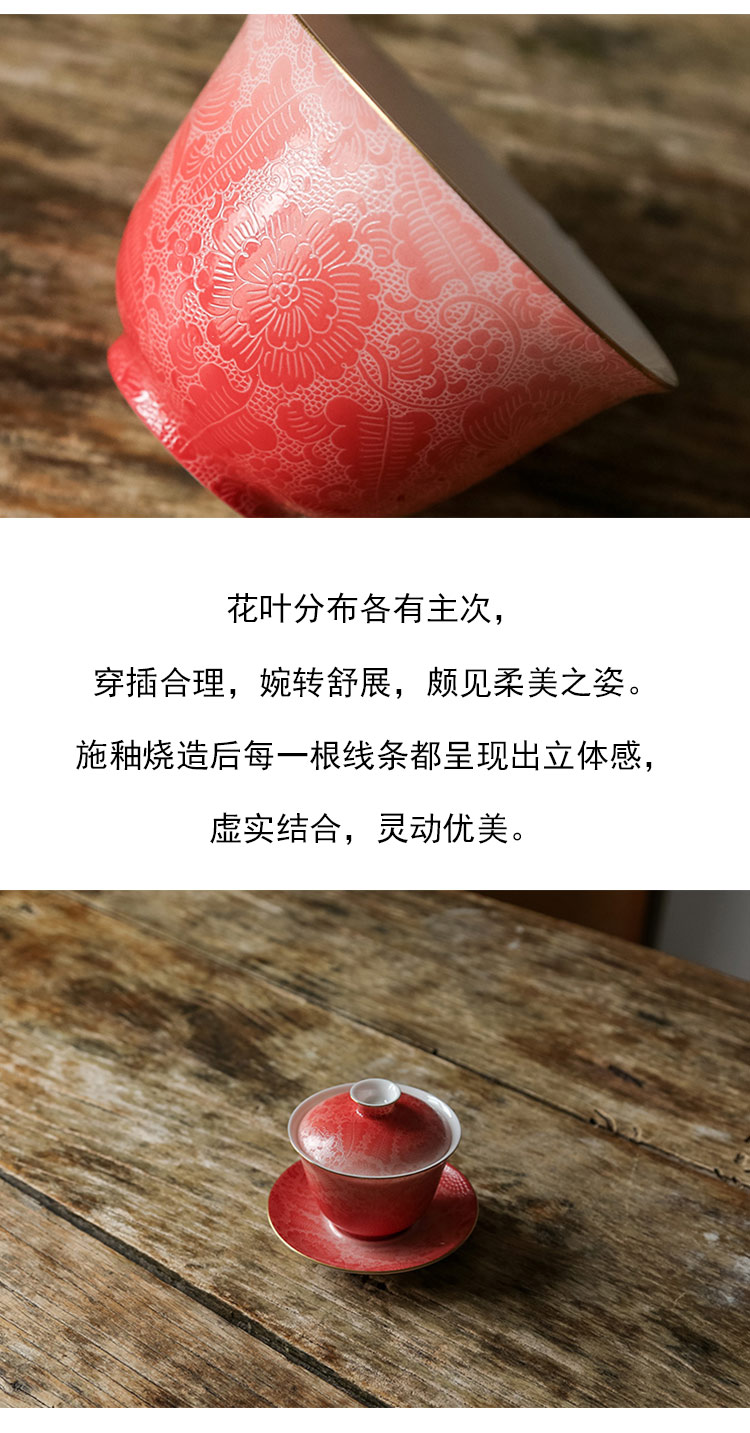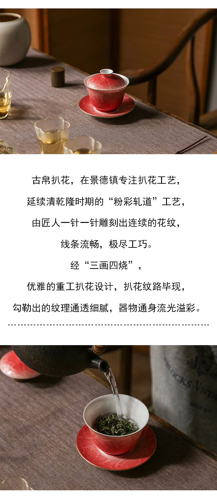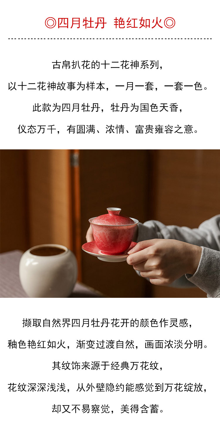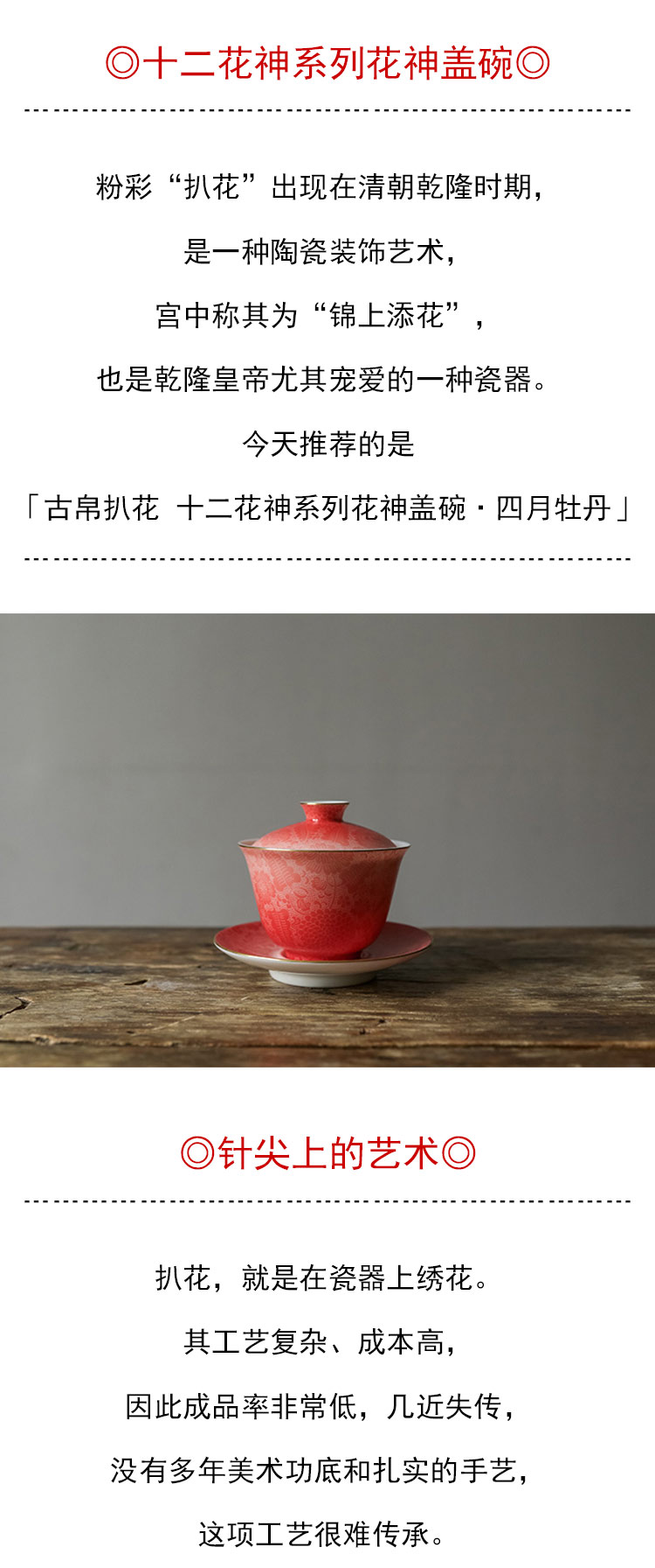 茶香记 古帛扒花 十二花神系列丁香盖碗·四月牡丹 重工扒花 粉彩 万花纹