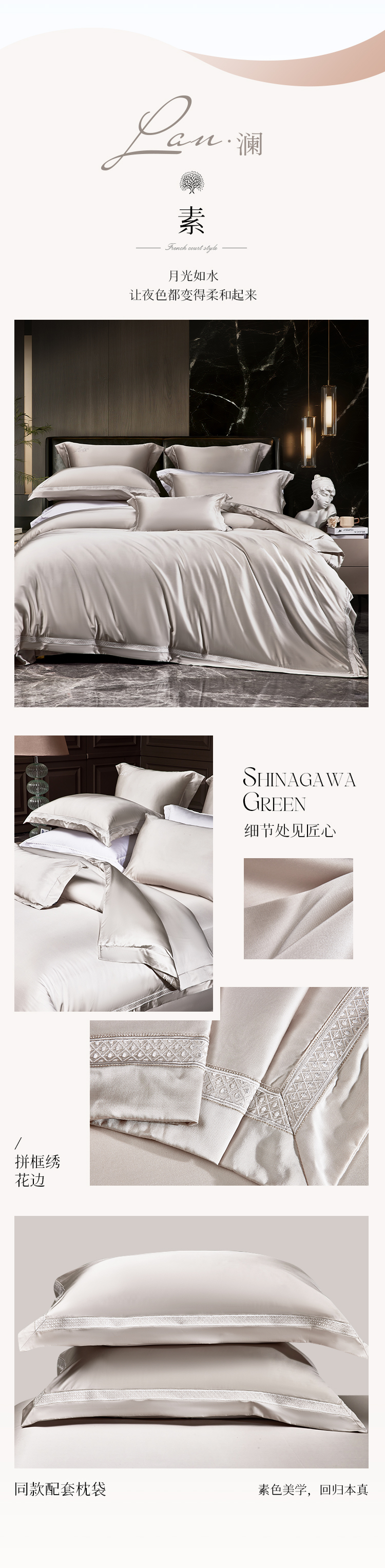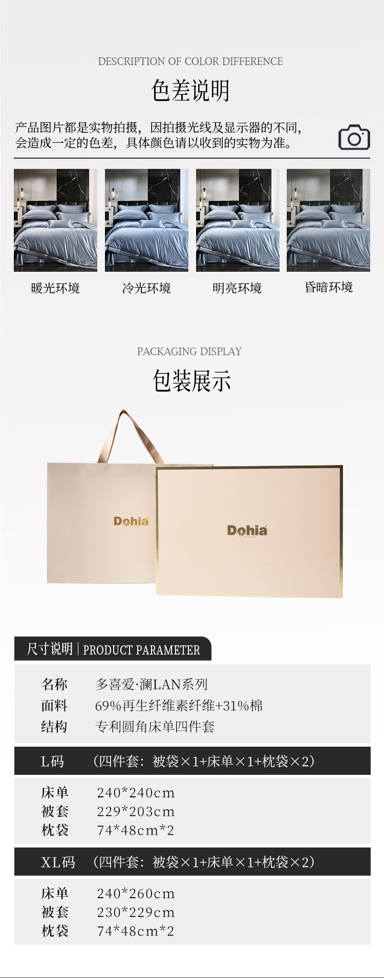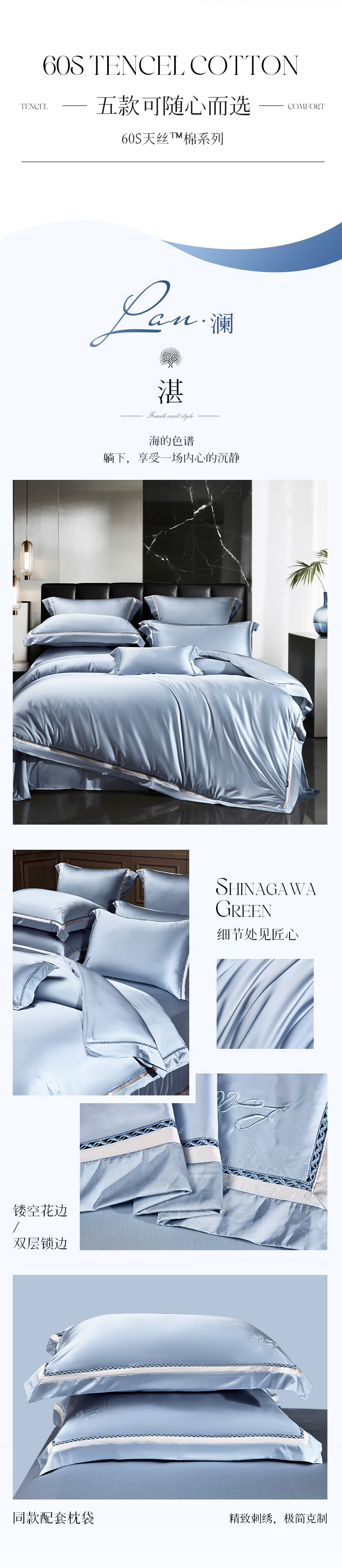 多喜爱 60S天丝棉套件 澜LAN 【AA级抗菌】【双股交织】【高密贡缎】【镂空花边】【精致刺绣】【礼盒包装】【专利圆角床单】柔滑光泽 日细腻厚实