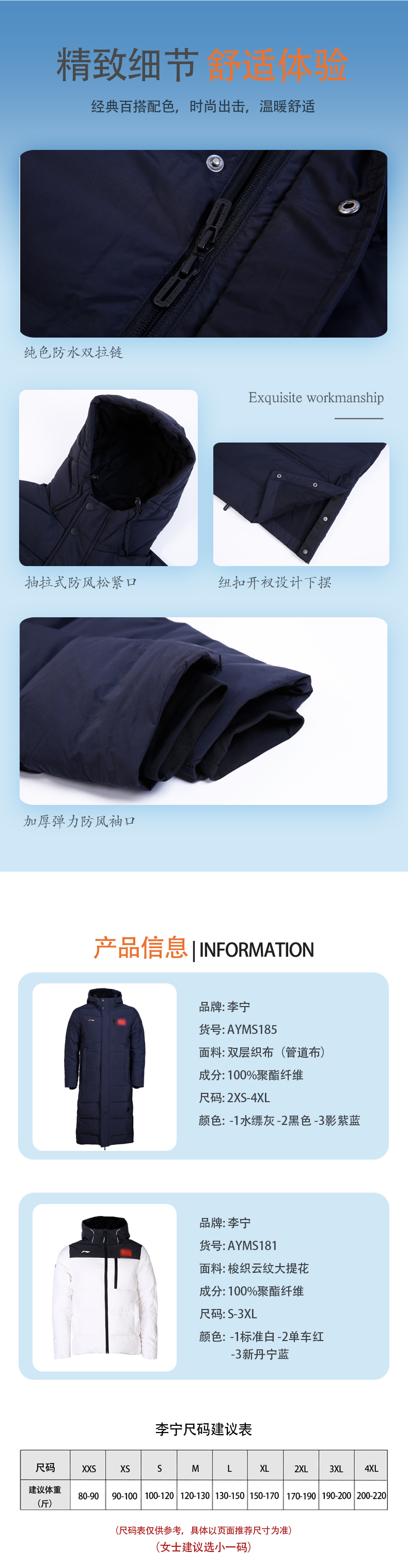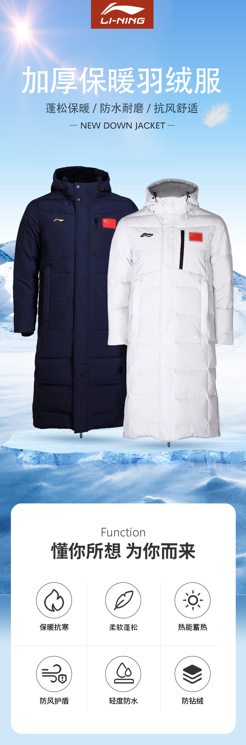 李宁羽绒服2022新款乒乓球运动羽绒服鸭绒防寒加厚保暖男女羽绒服