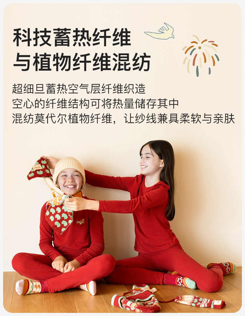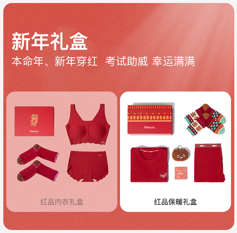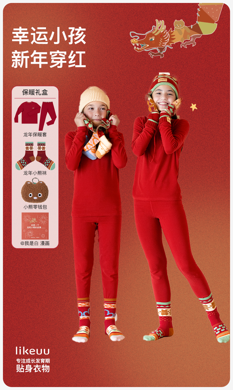 likeuu儿童保暖红礼盒龙年男女中大童秋衣秋裤内衣套装ZY