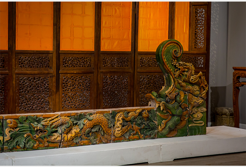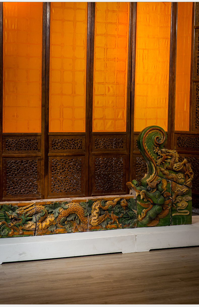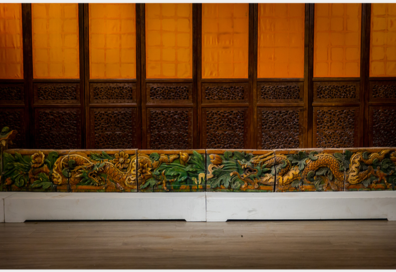 清 黄花梨螭龙纹福禄寿三围屏罗汉床