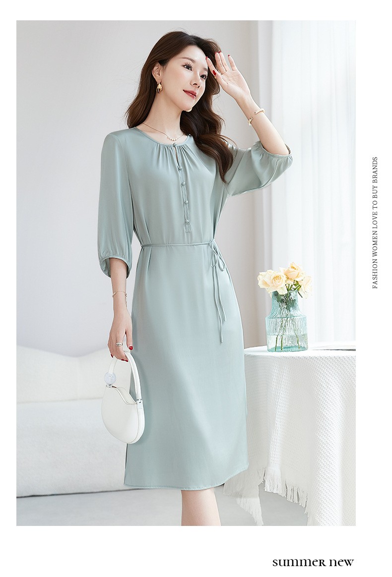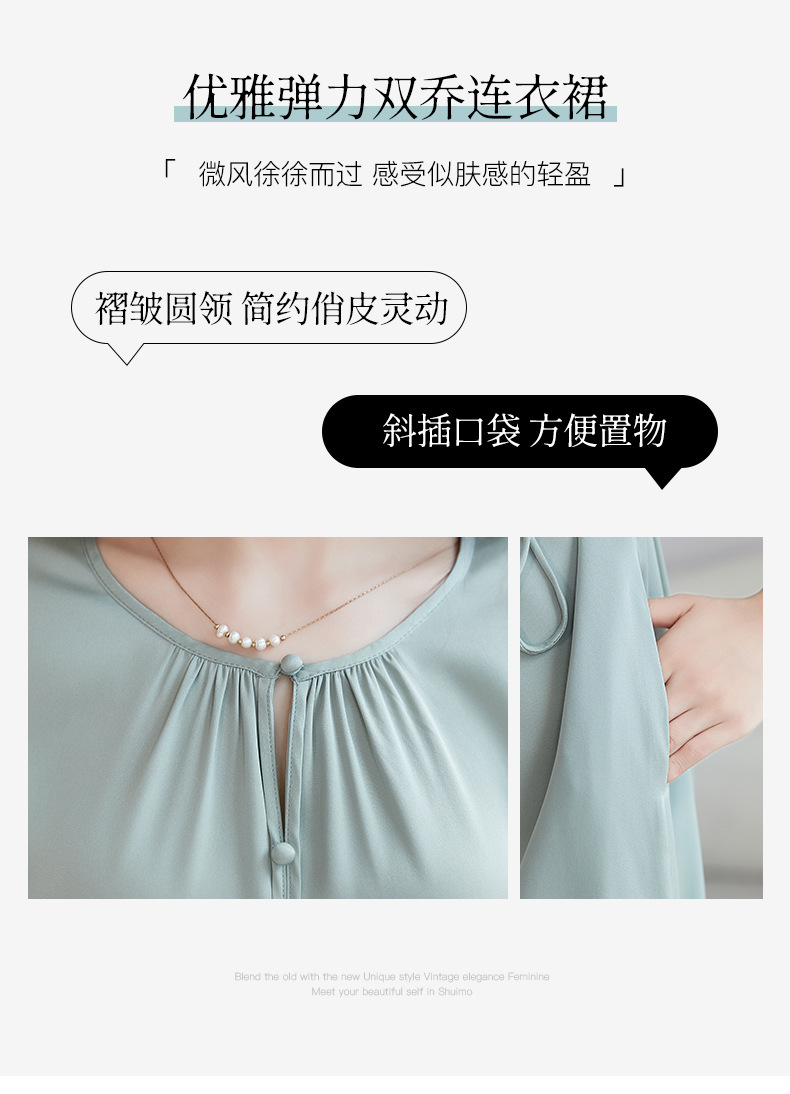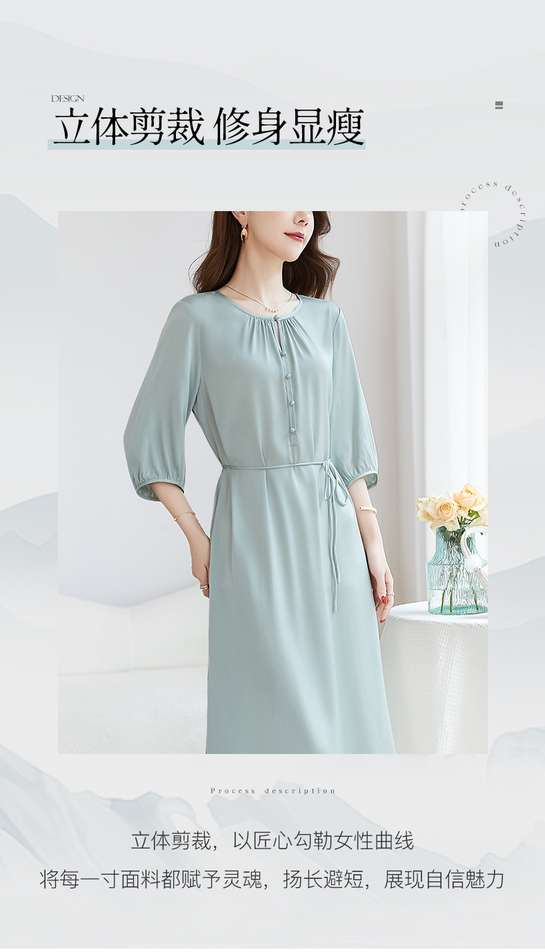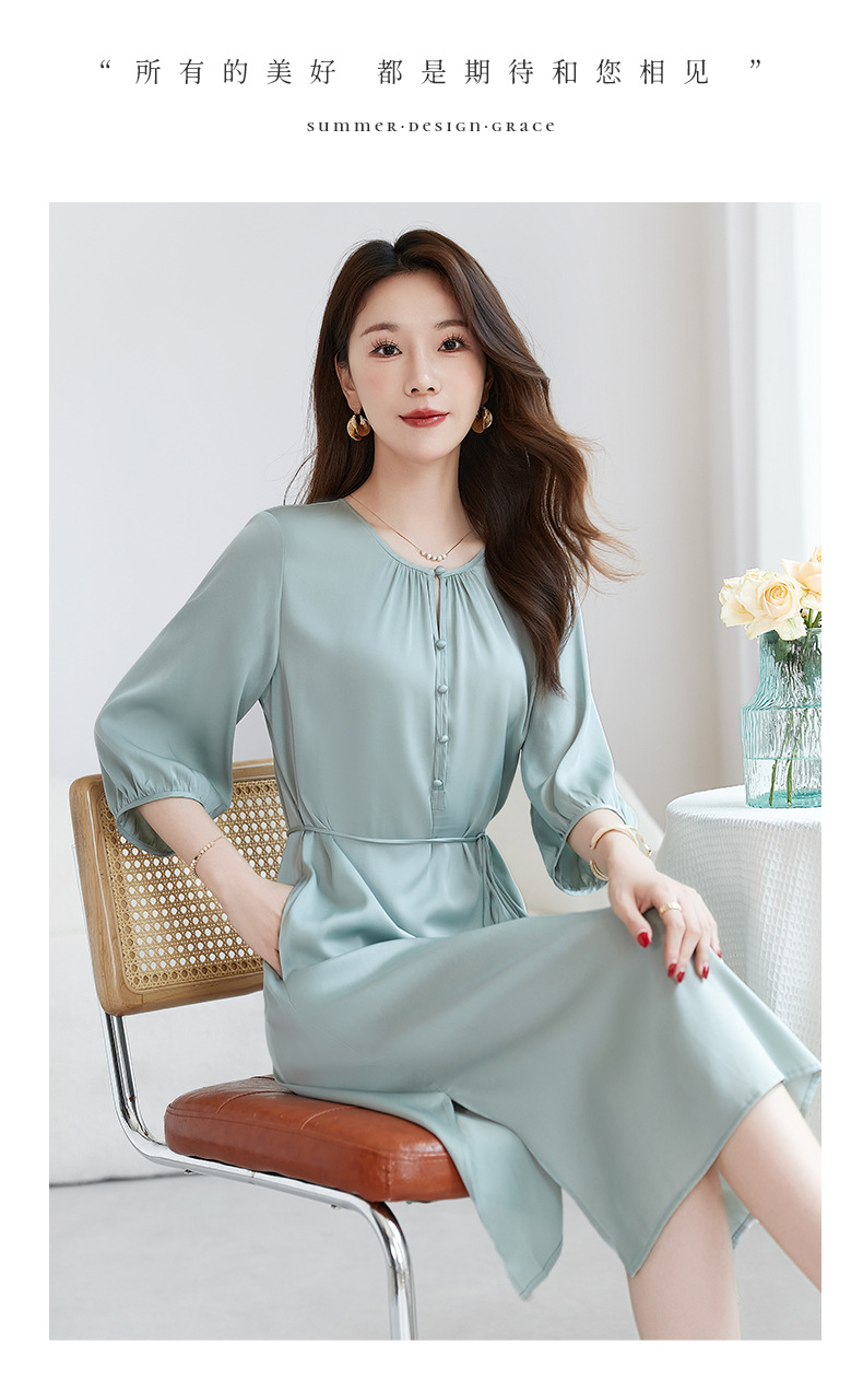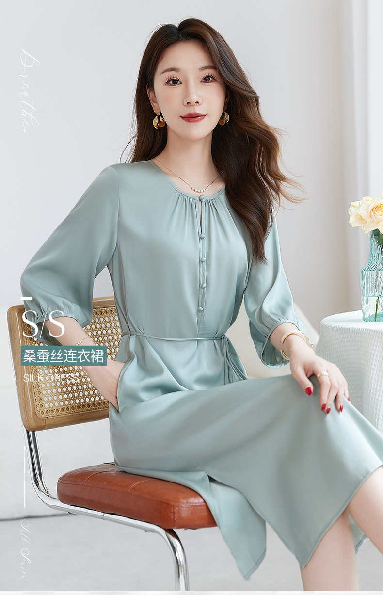 QS-【桑蚕丝】对接直播气质通勤职业群显瘦弹力双乔真丝连衣裙7986