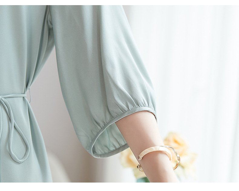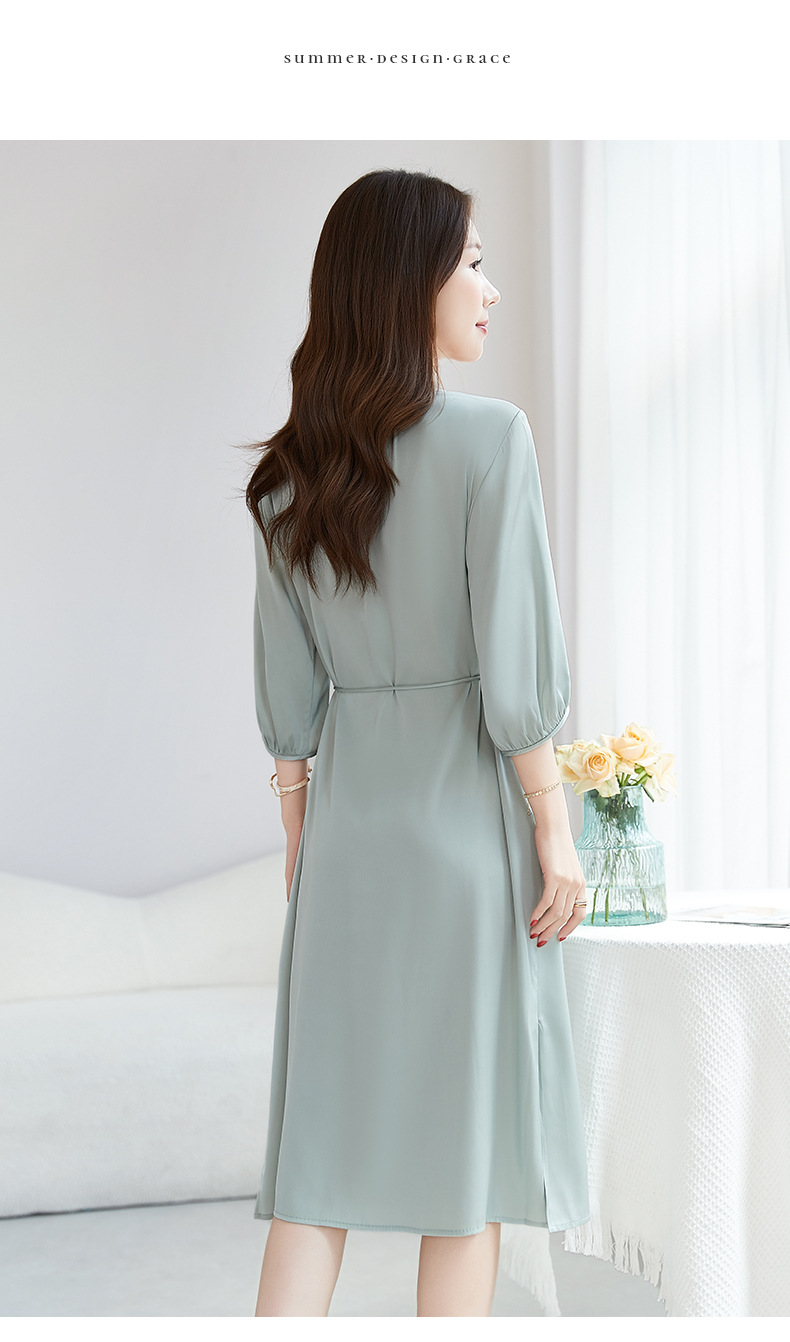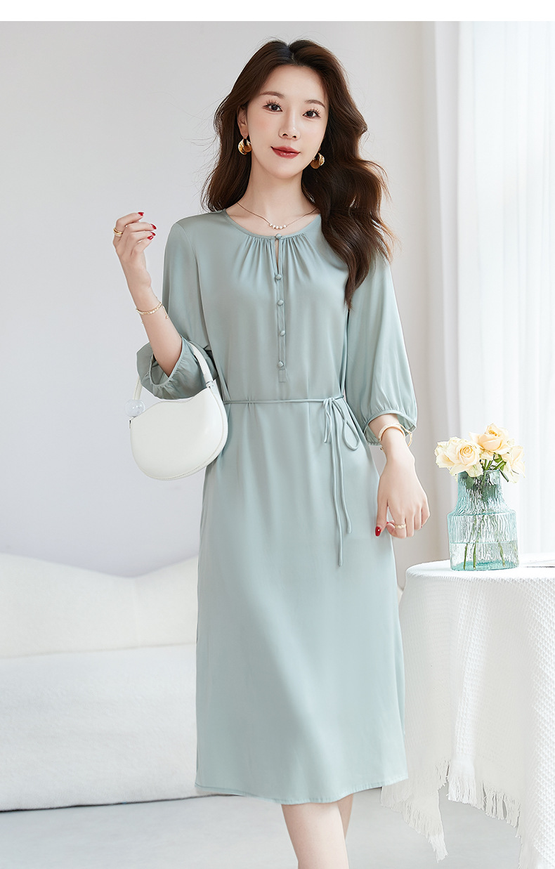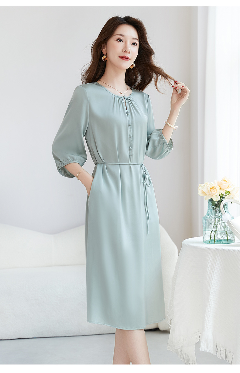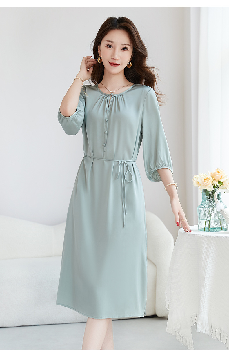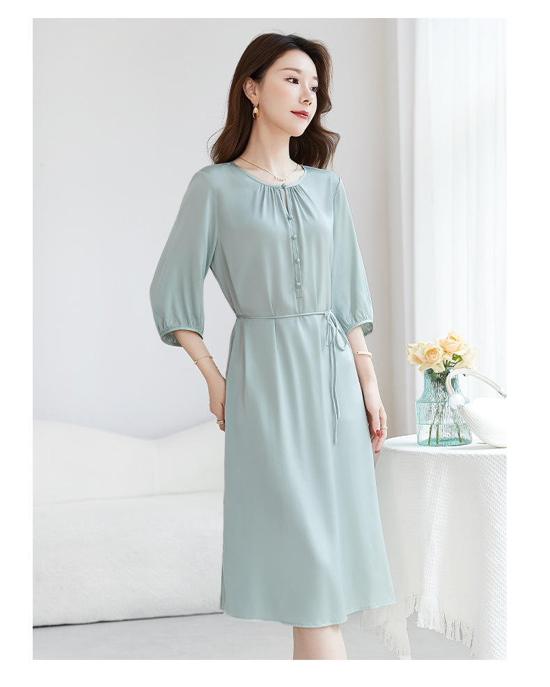 QS-【桑蚕丝】对接直播气质通勤职业群显瘦弹力双乔真丝连衣裙7986