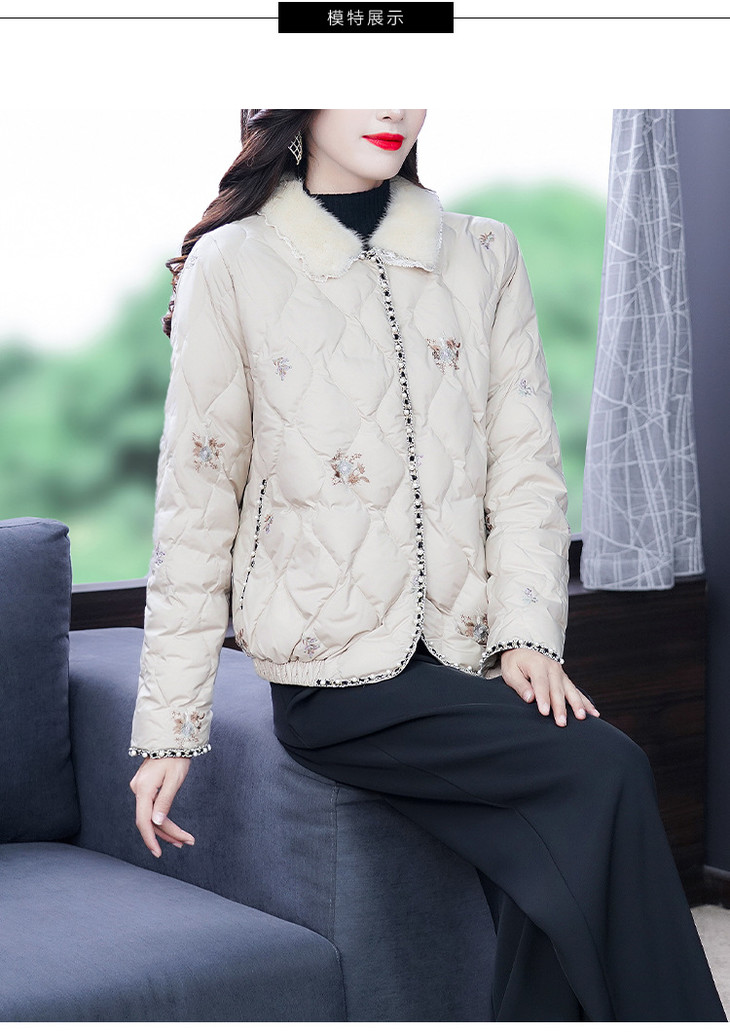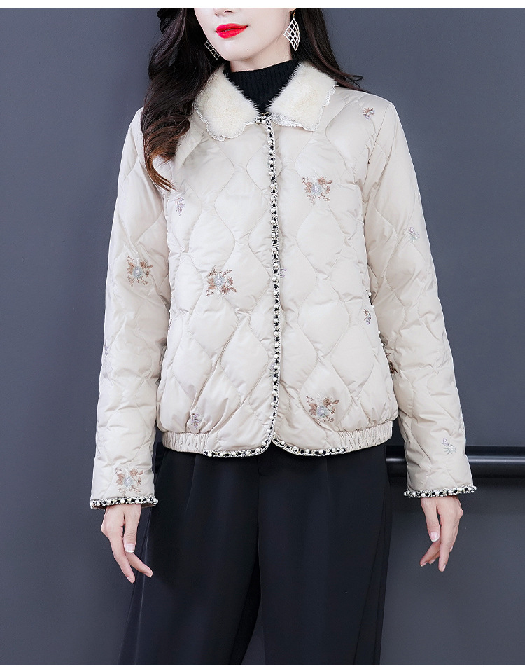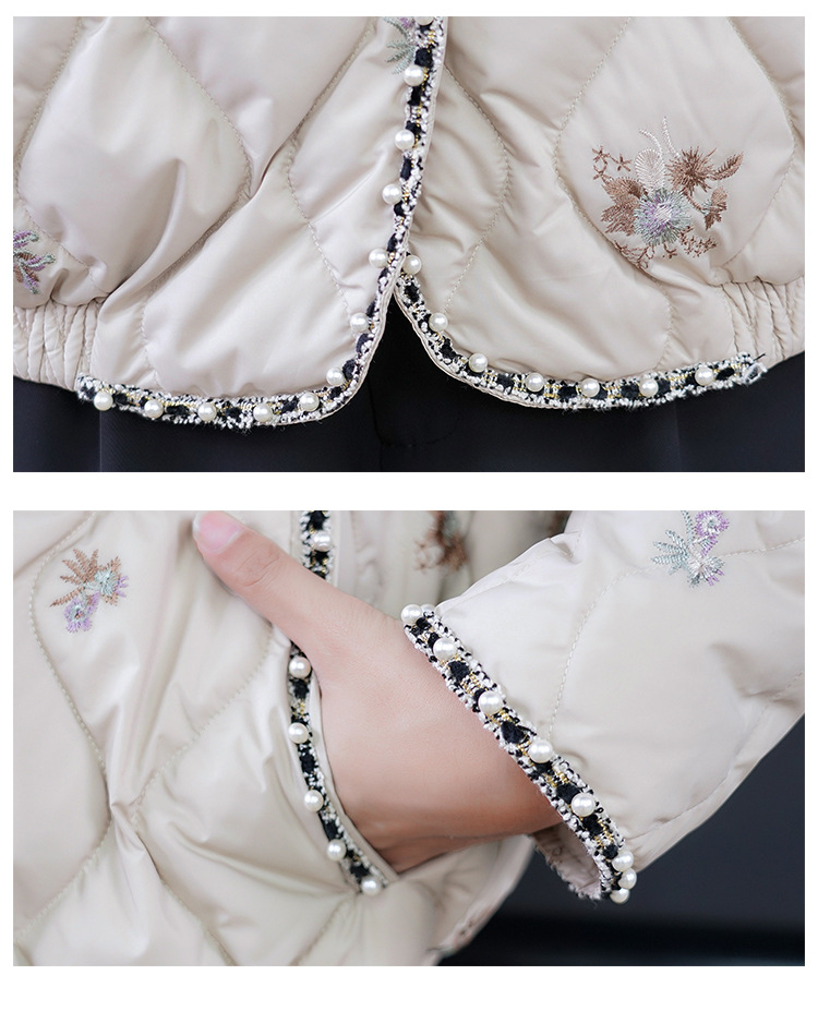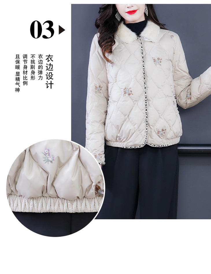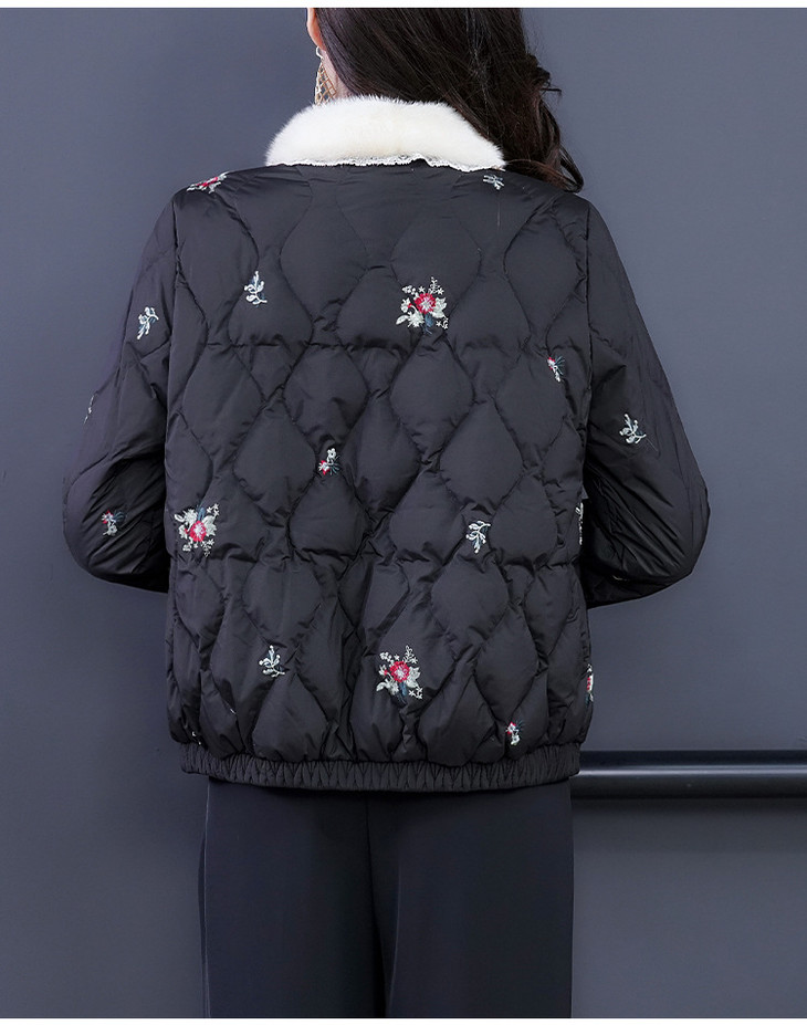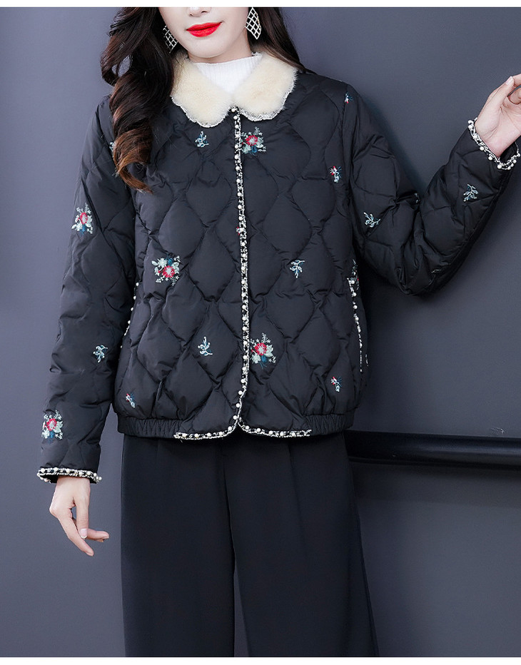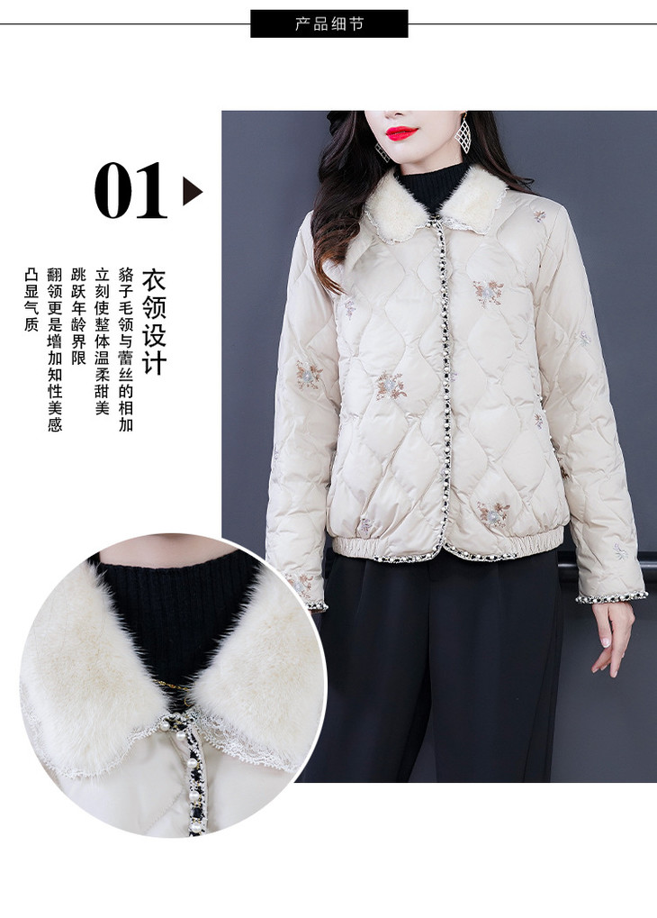 AHM- lry3192 羽绒服女2021冬新款复古小清新修身绣花短款外套