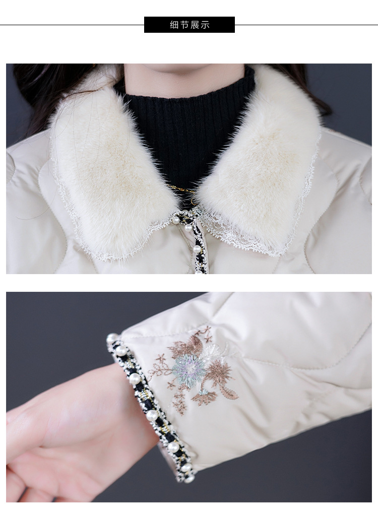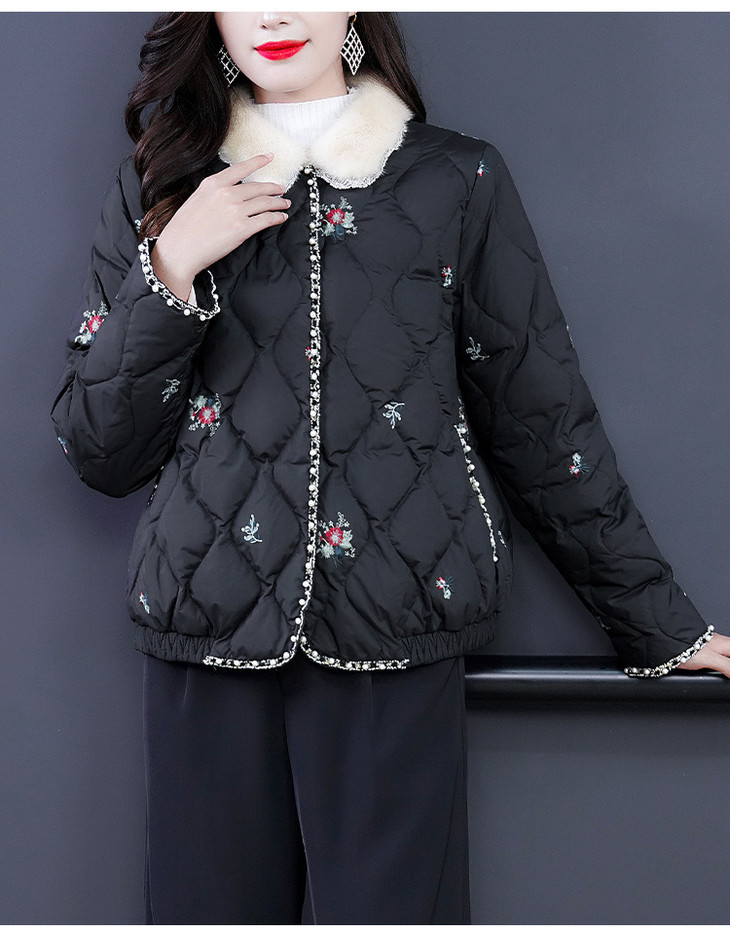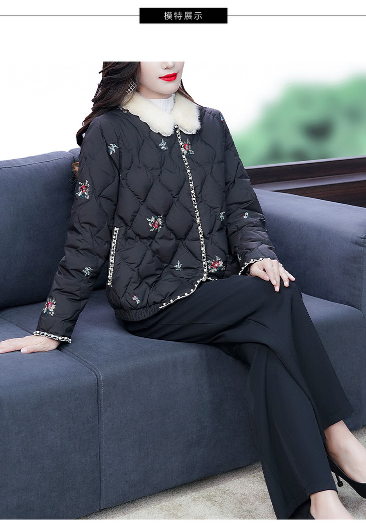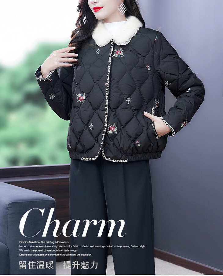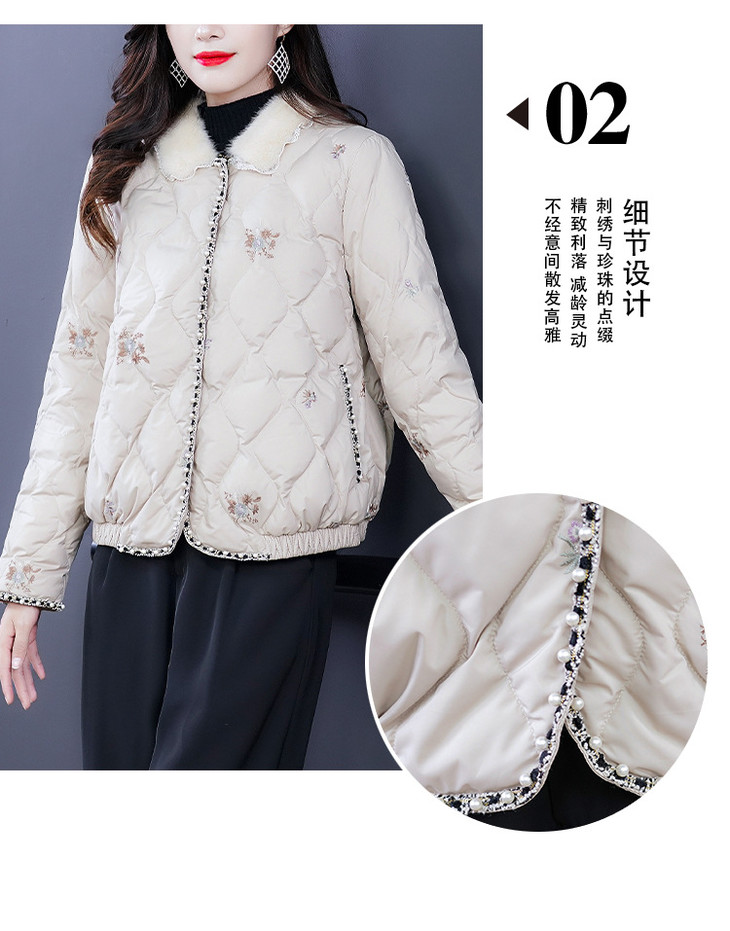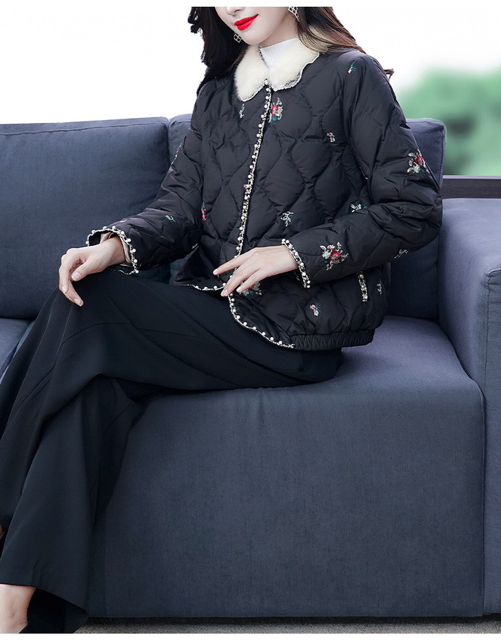 AHM- lry3192 羽绒服女2021冬新款复古小清新修身绣花短款外套