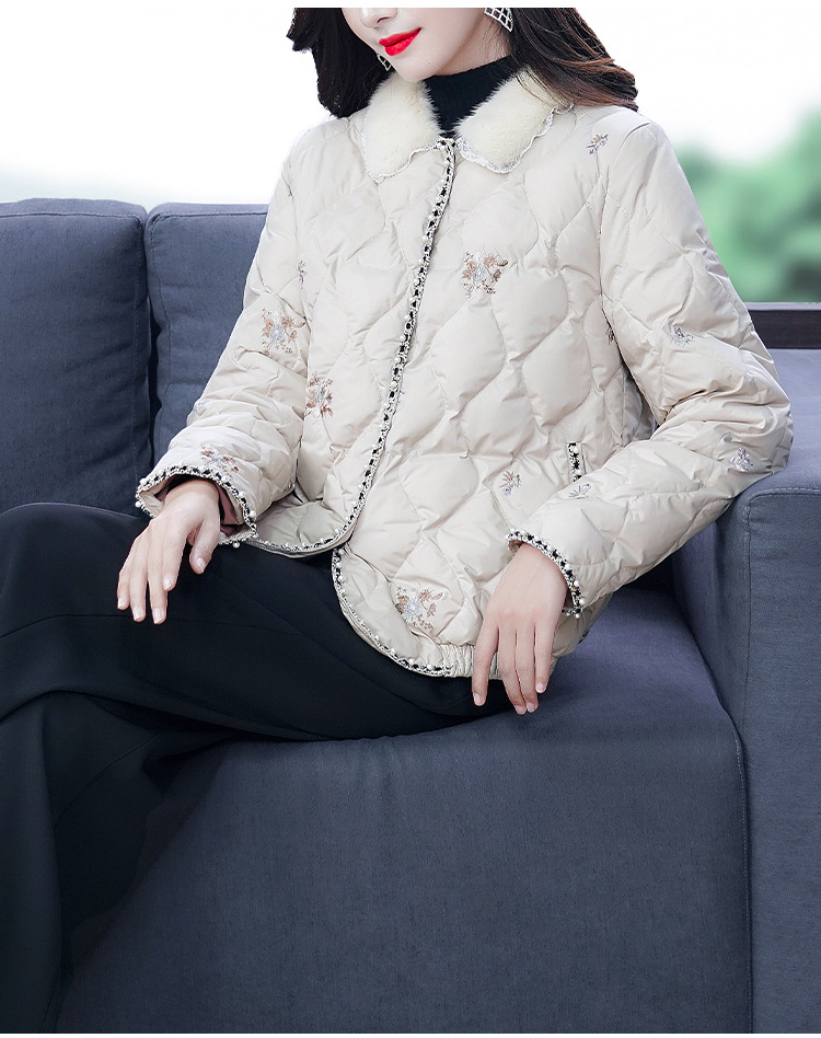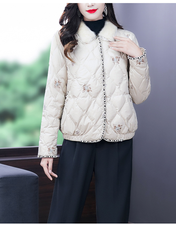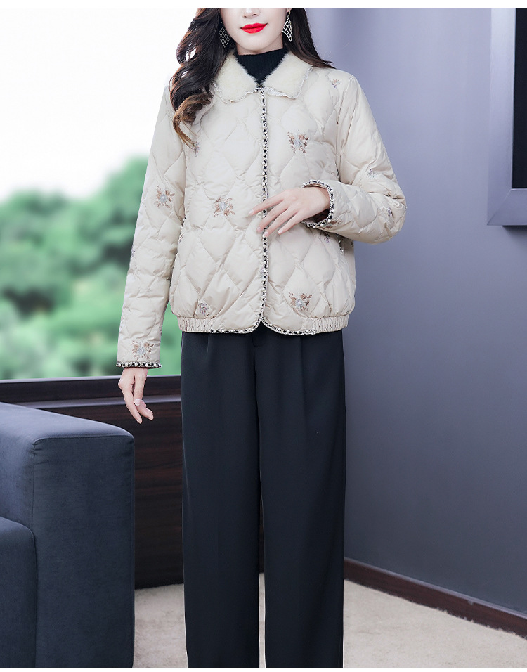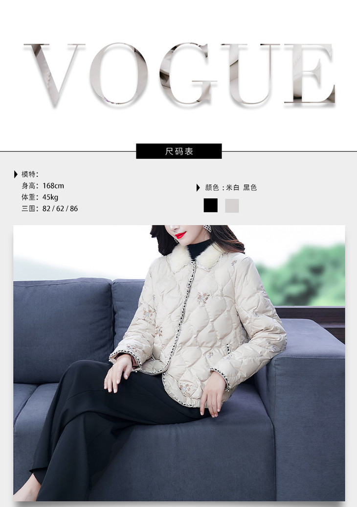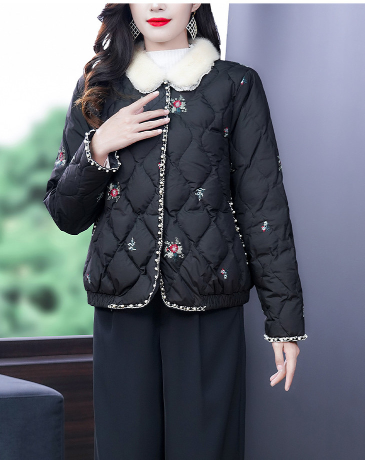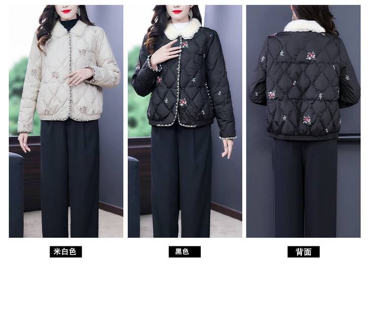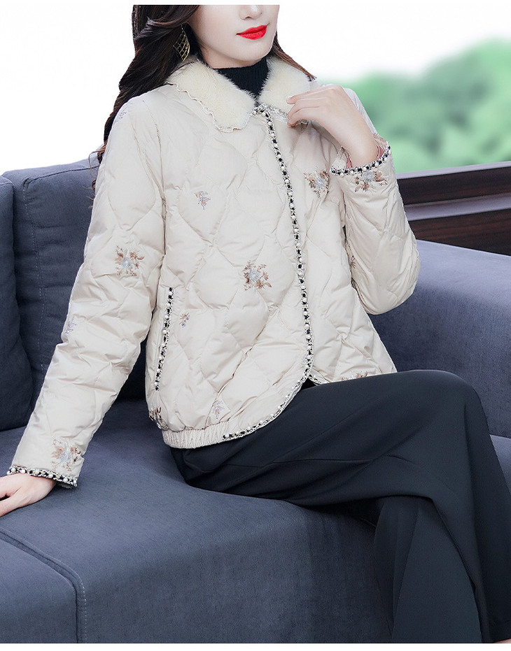AHM- lry3192 羽绒服女2021冬新款复古小清新修身绣花短款外套