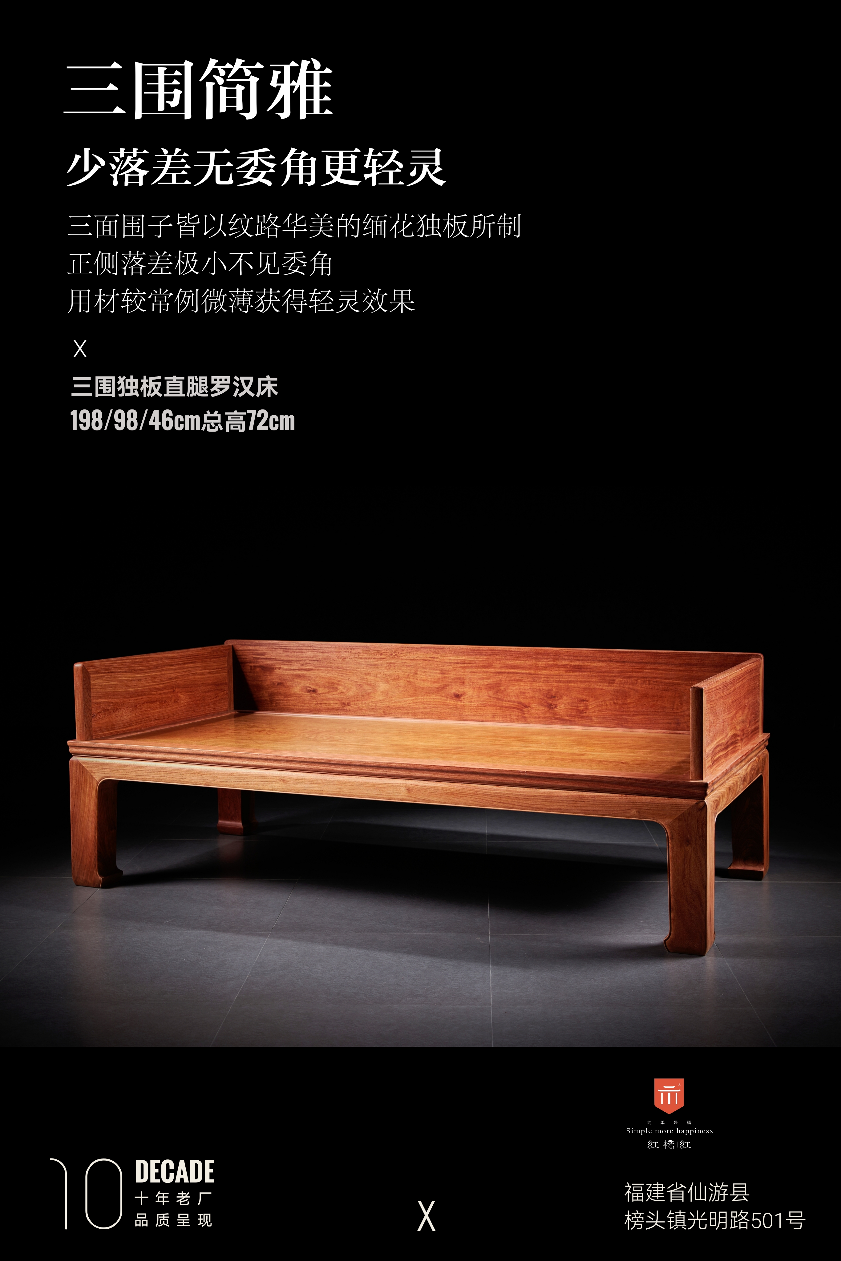 罗汉床:198*98*46cm/总高72cm