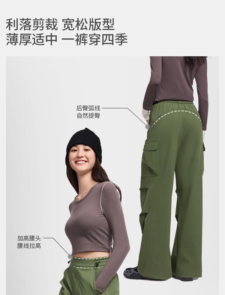 【四季户外】蕉下24新款女弹力防泼水伞兵裤雅丹风休闲WP85724工装裤GF(货号:WP85724)