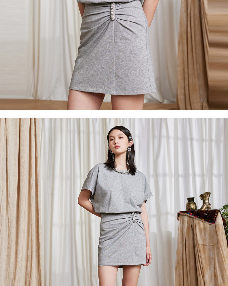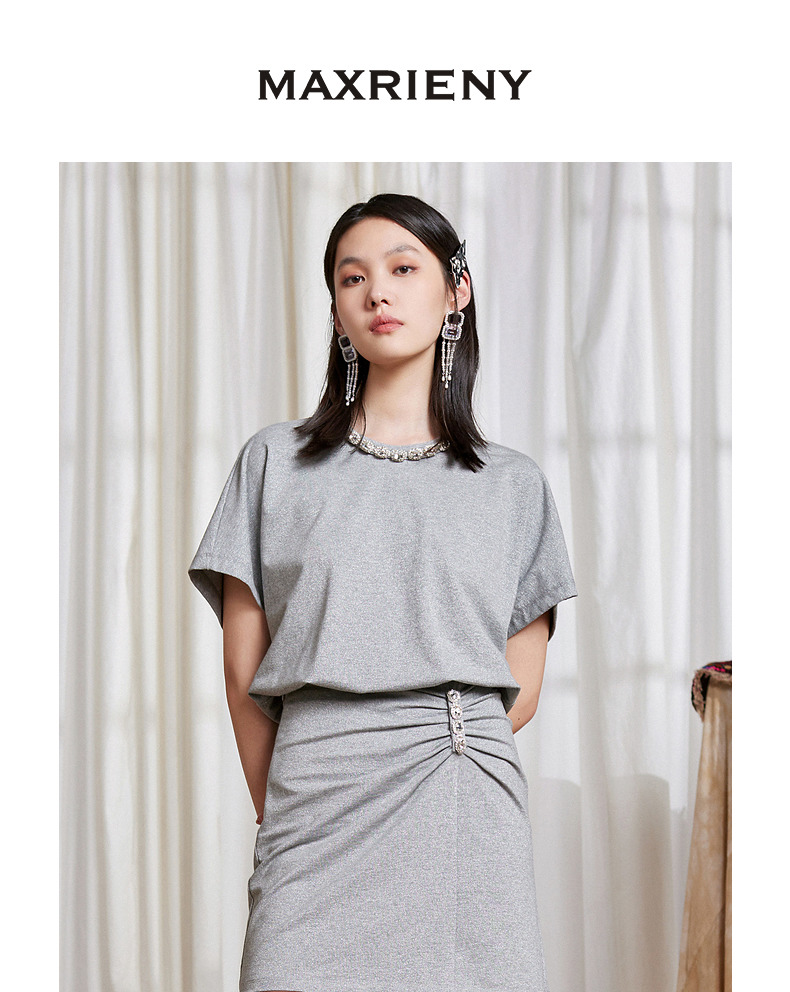MAXRIENY星钻公主收腰短裙夏高腰半身针织包臀裙(货号:MC87SK254)