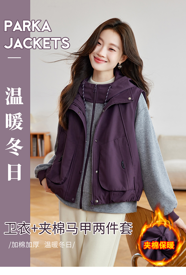 加棉加厚马甲派克棉服,可拆卸三合一卫衣内胆棉衣外套HR-MUZI8665