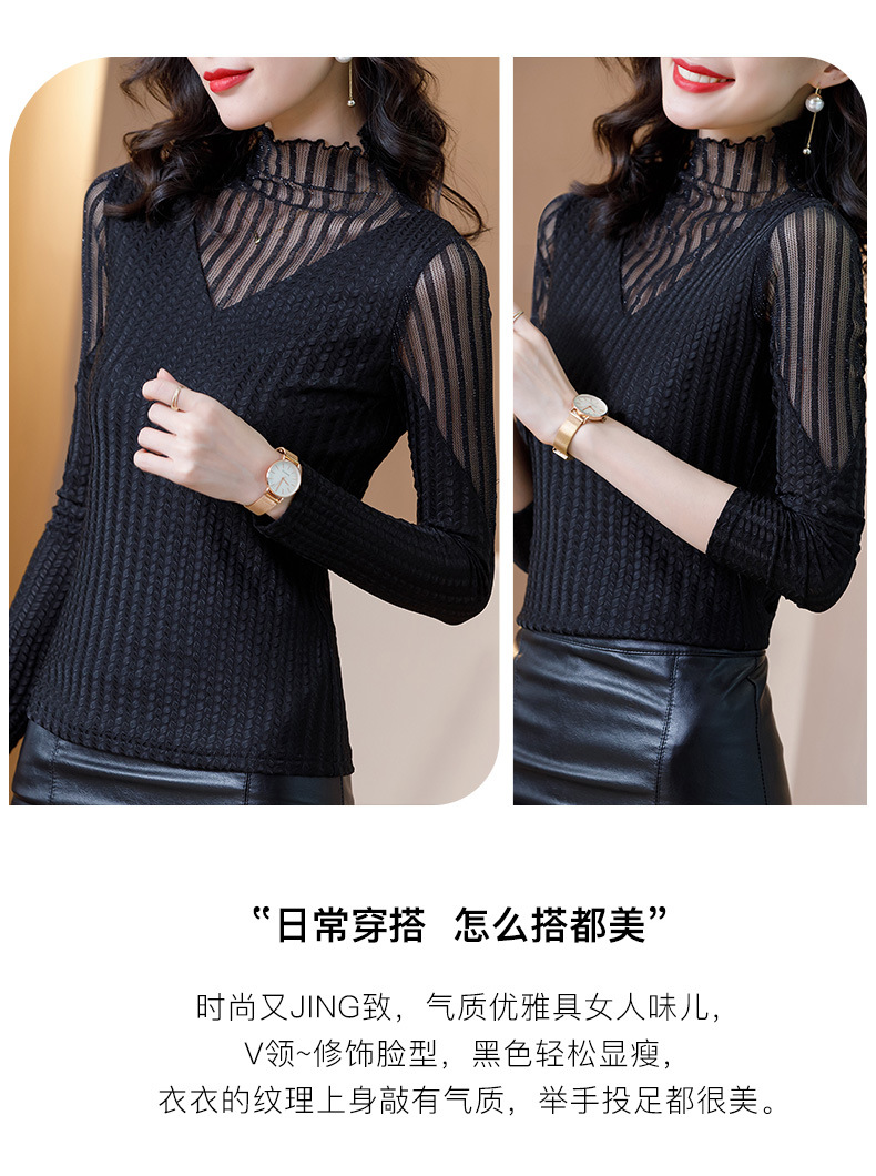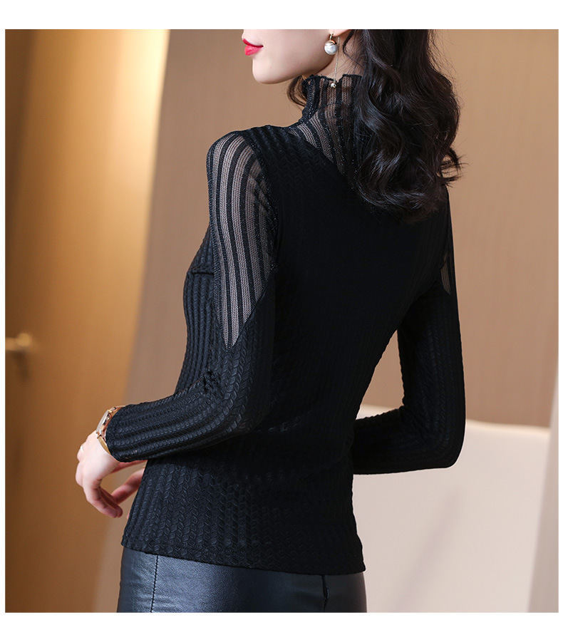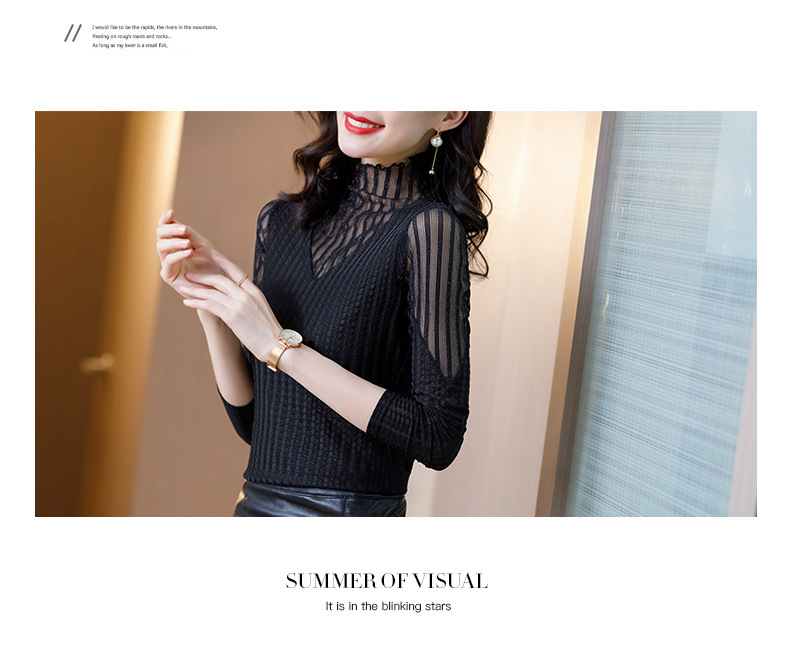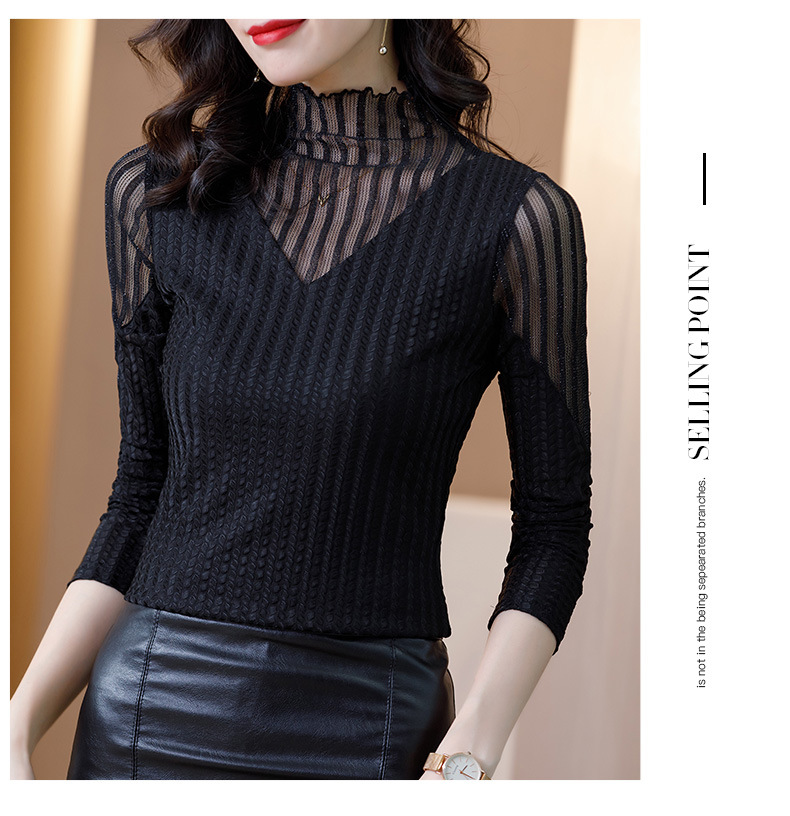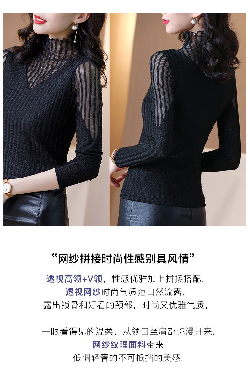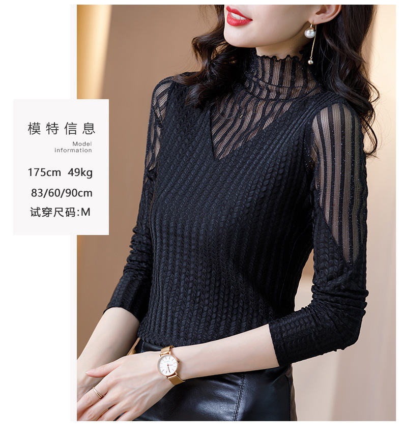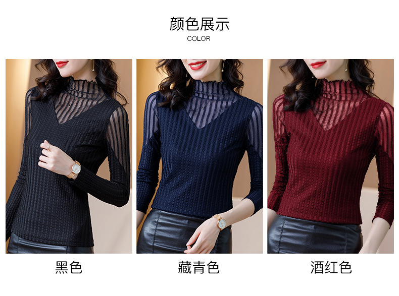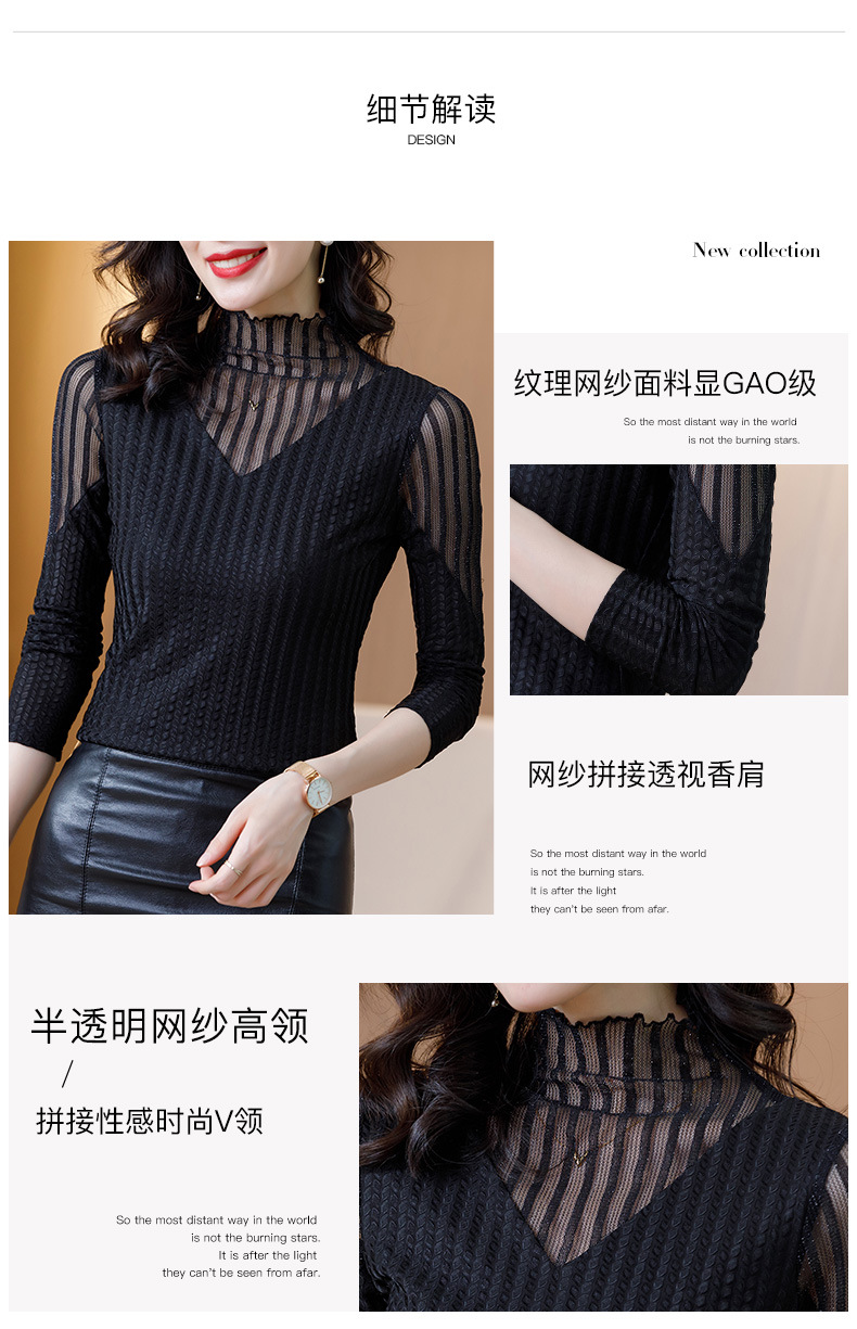 ZX-7756秋季新款女装打底衫女长袖内搭薄款网纱亮丝针织上衣