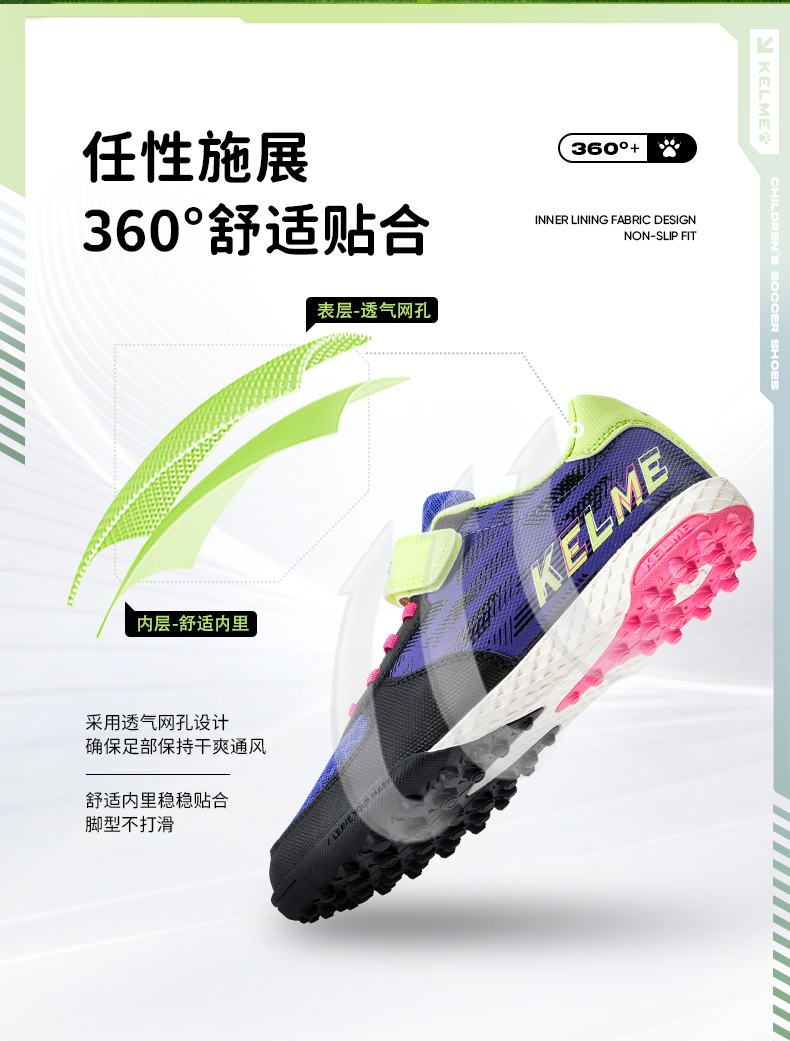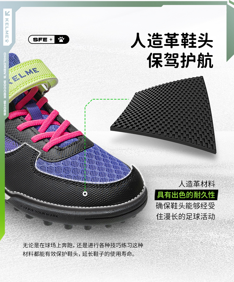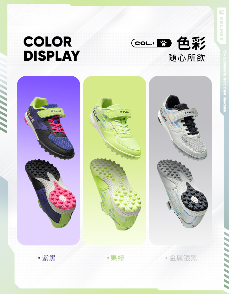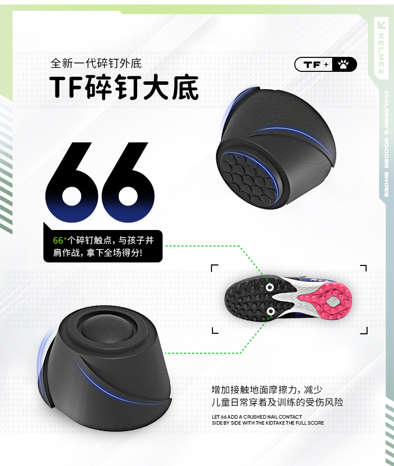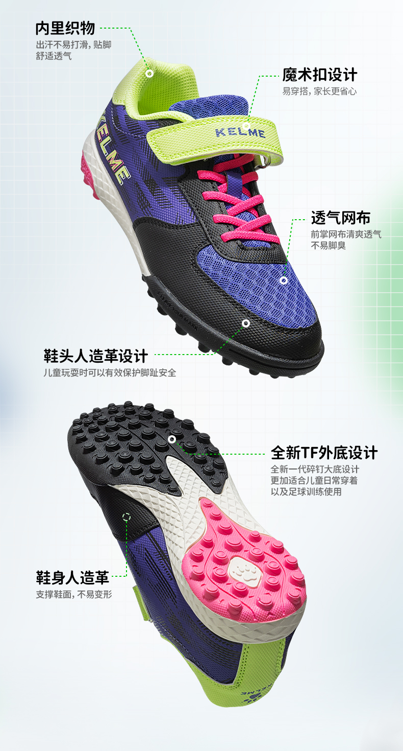KELME卡尔美2023新款星野儿童足球鞋男童男孩小学生女透气专业TF碎钉训练专用