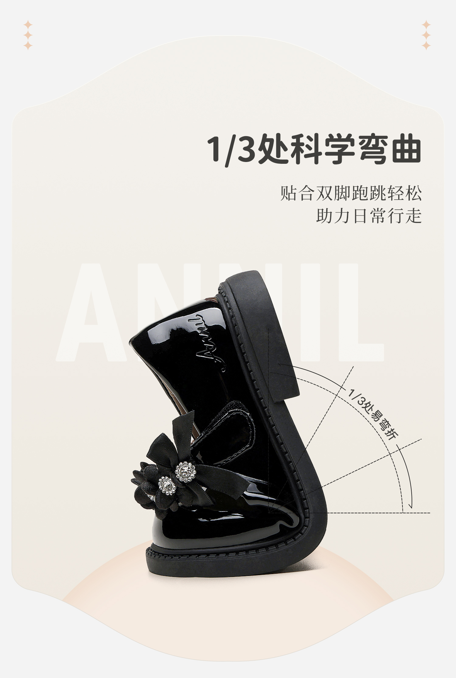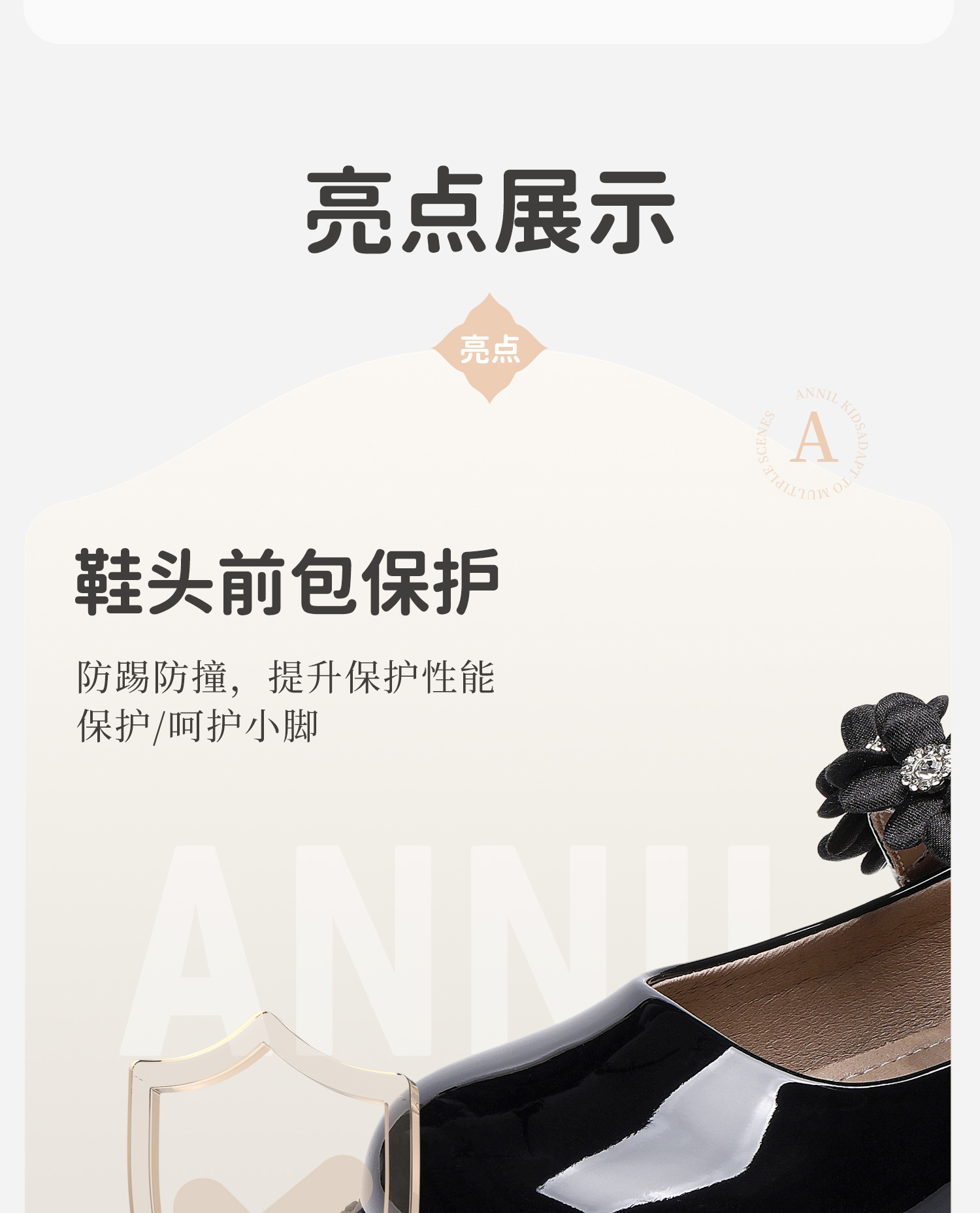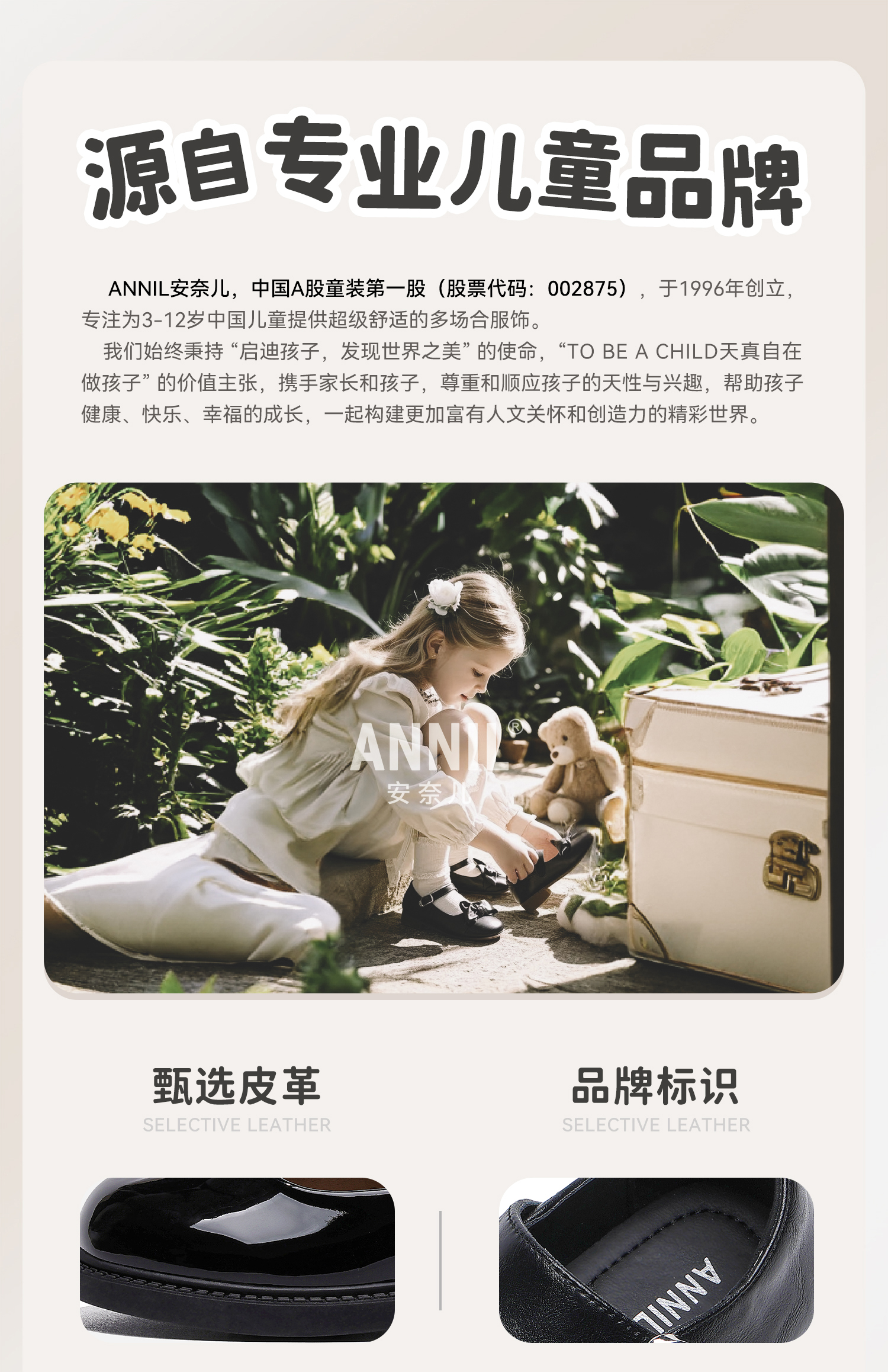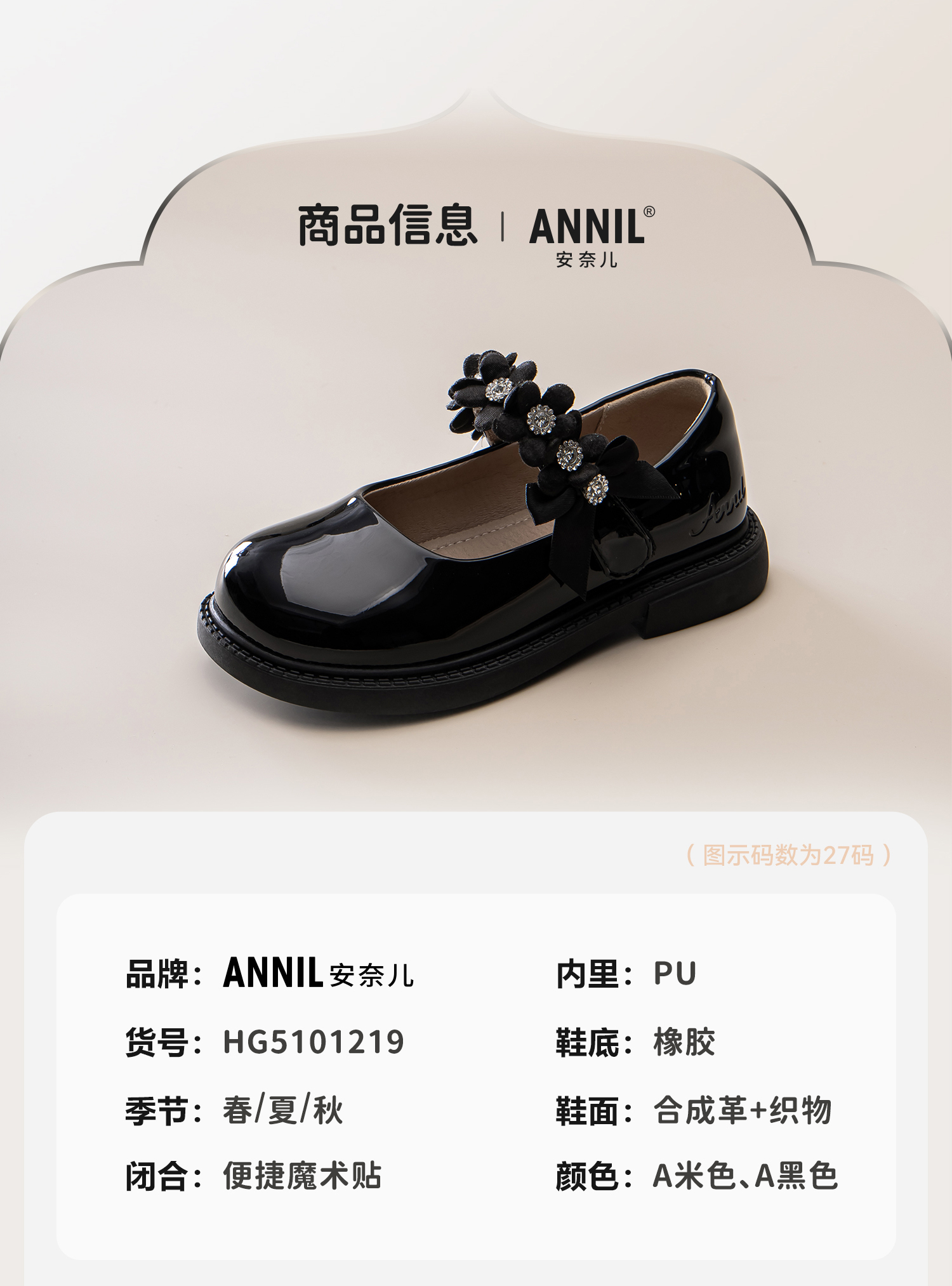 ANNIL/安奈儿女童小皮鞋2025春季新款儿童软底公主黑色中大童玛丽珍单鞋HG5101219