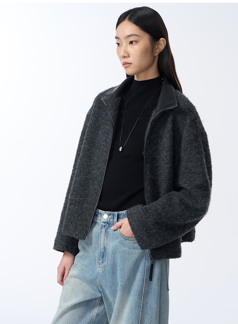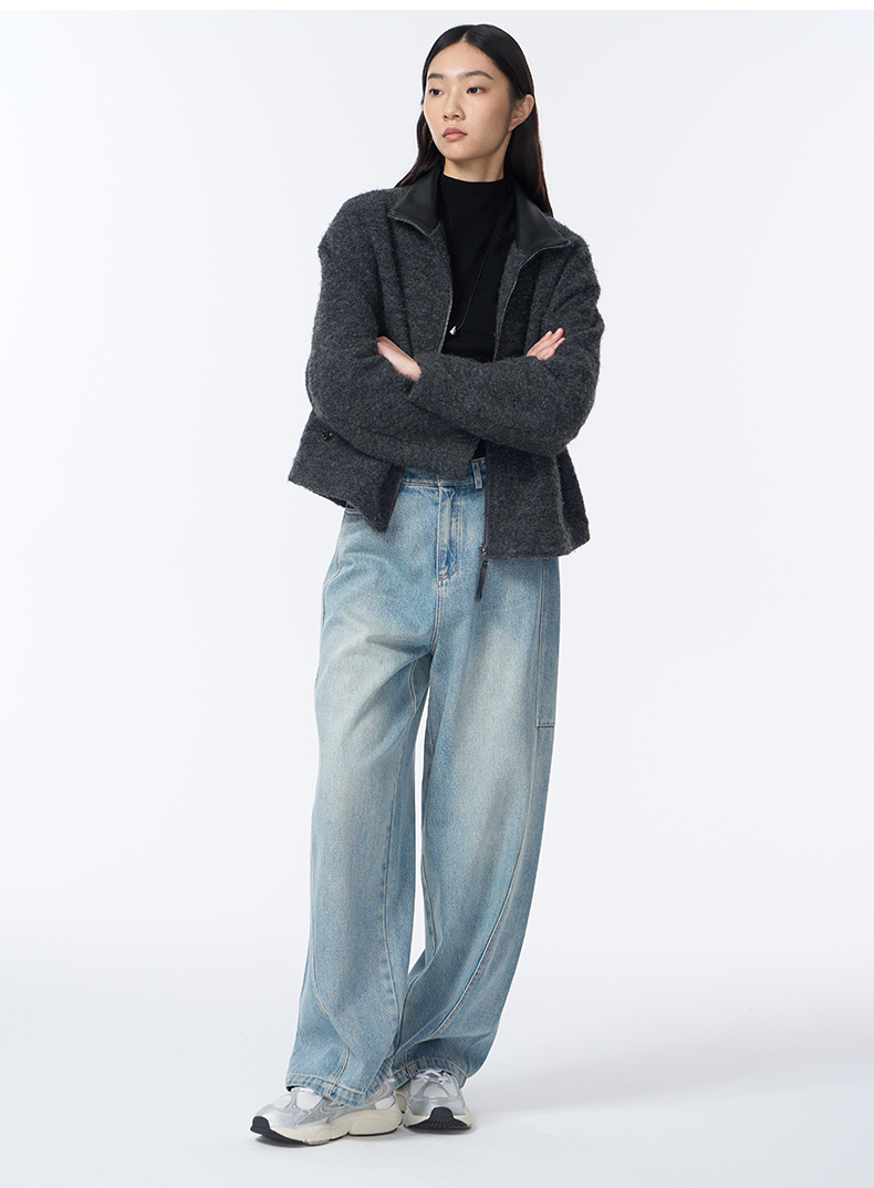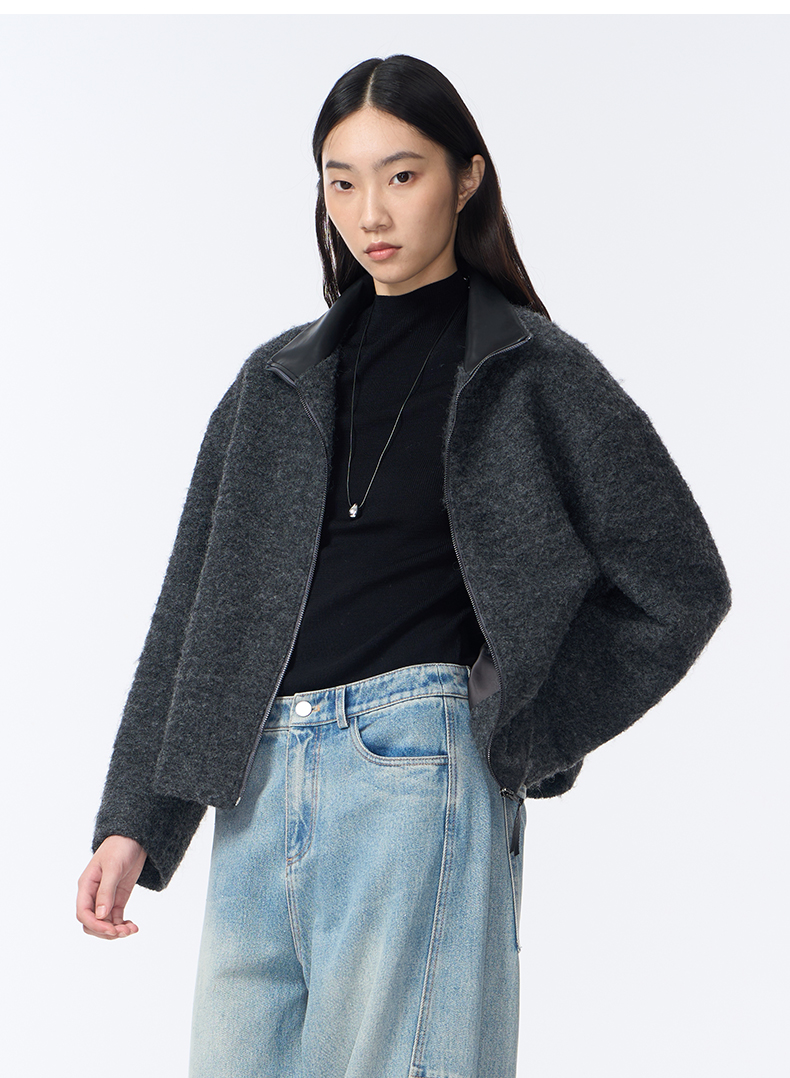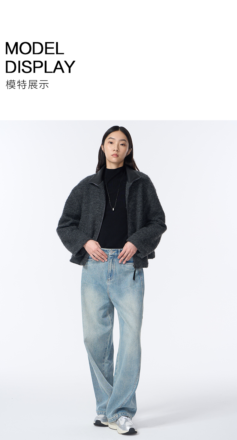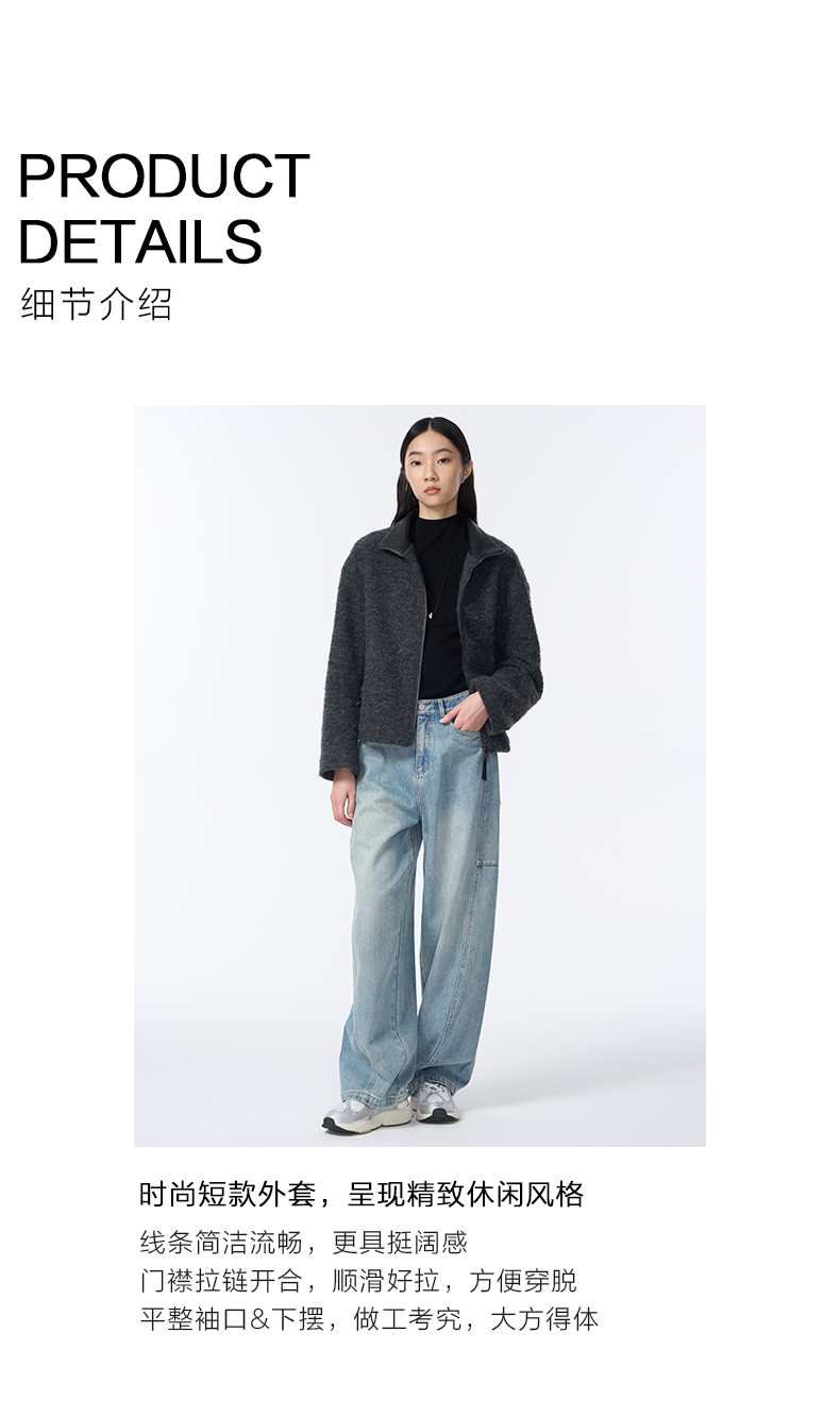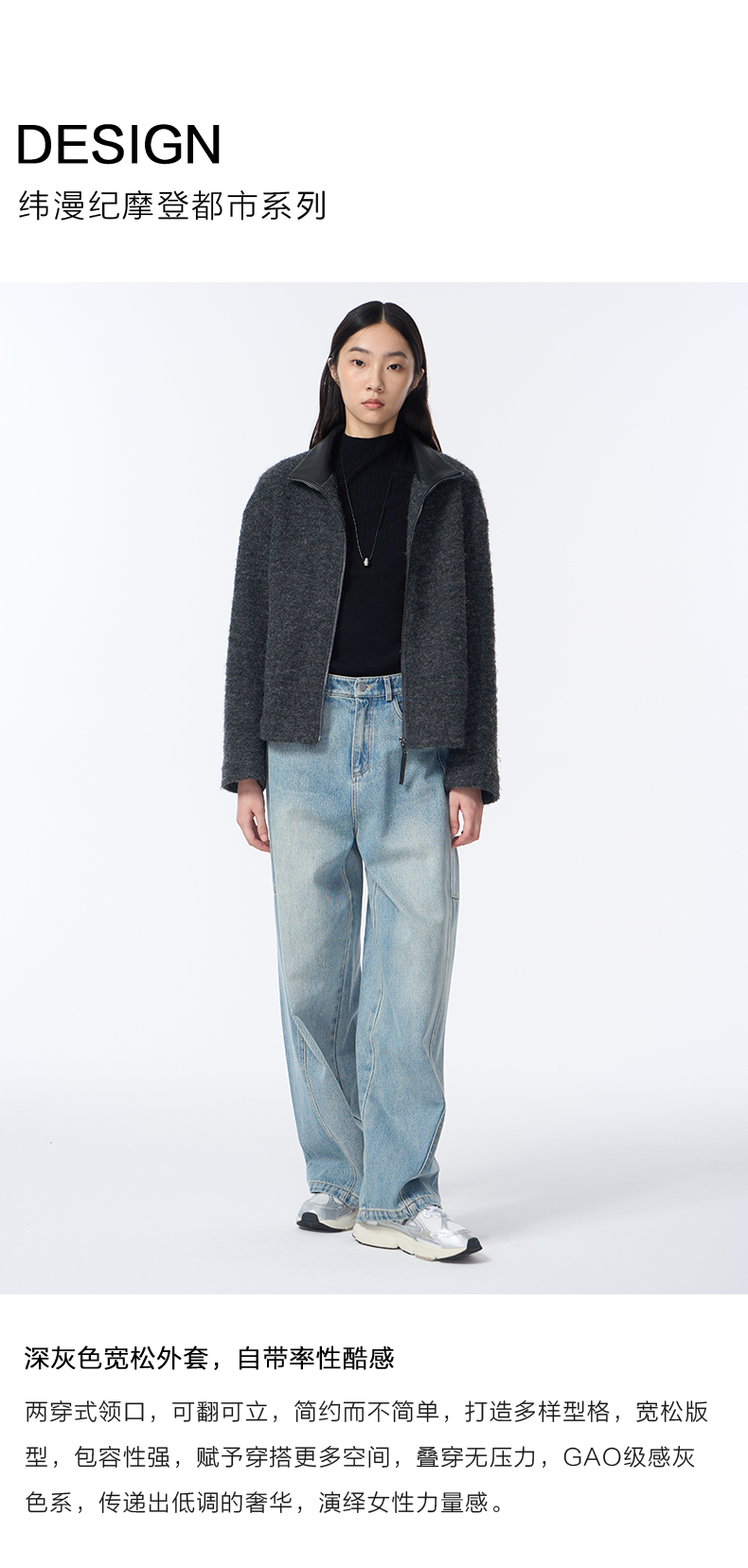 VIMAGE纬漫纪高级灰立领金属拉链设计慵懒感2025秋冬新款大衣外套V2403103