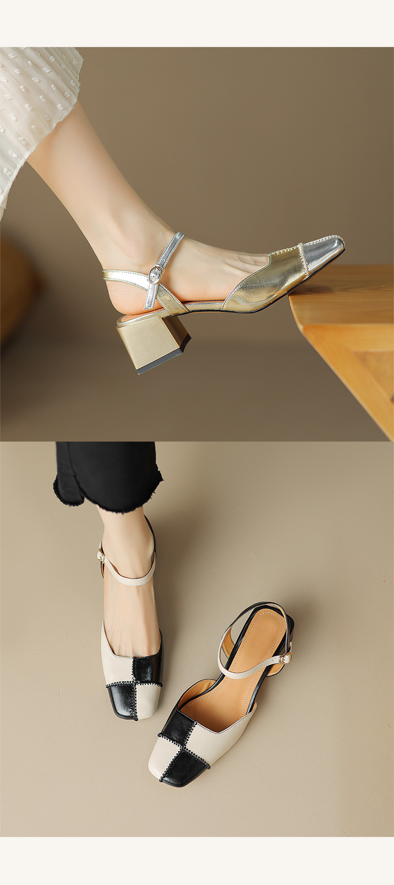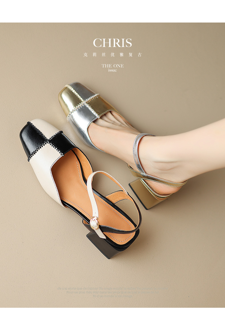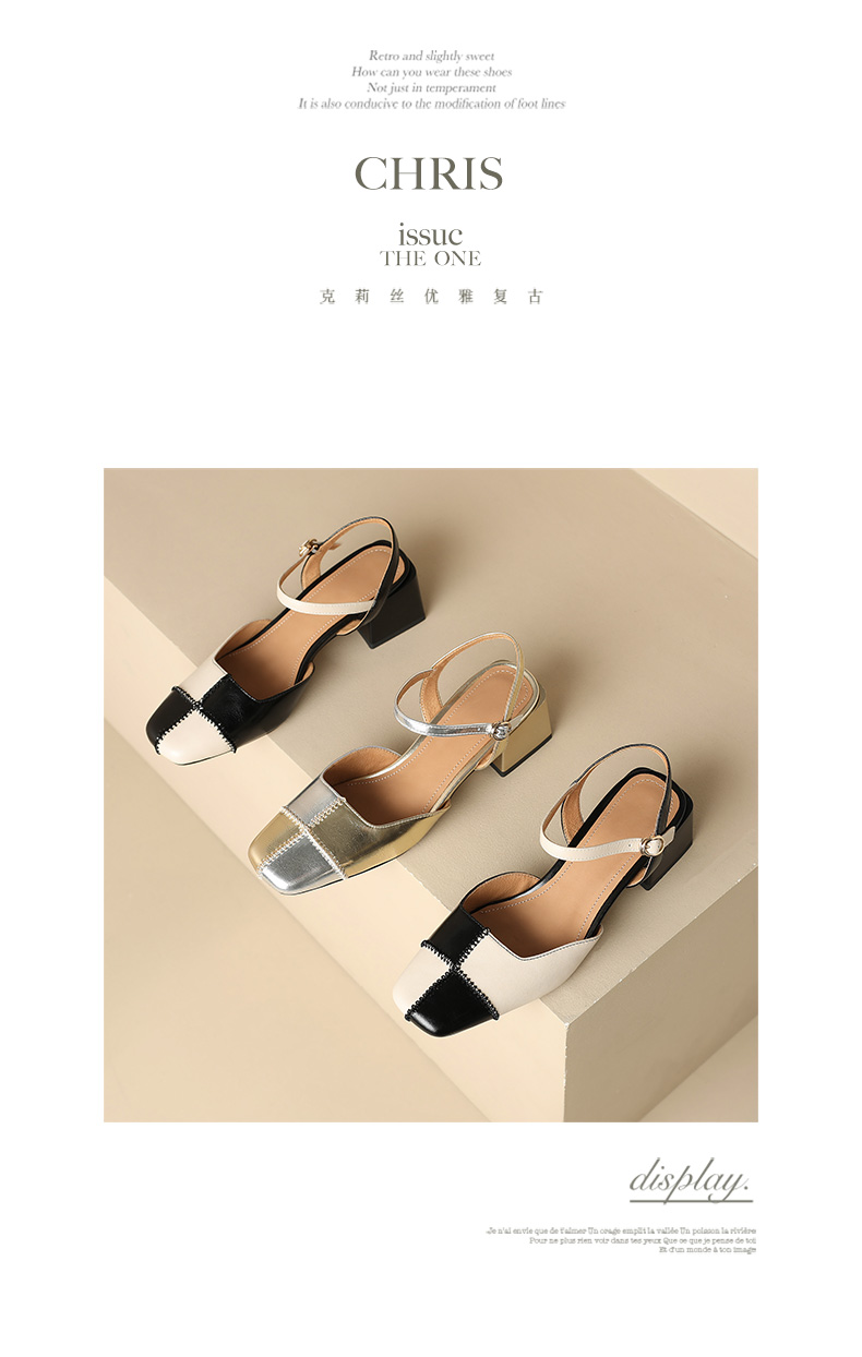 夏季新款,拼色里外全皮包头凉鞋HBP-5362