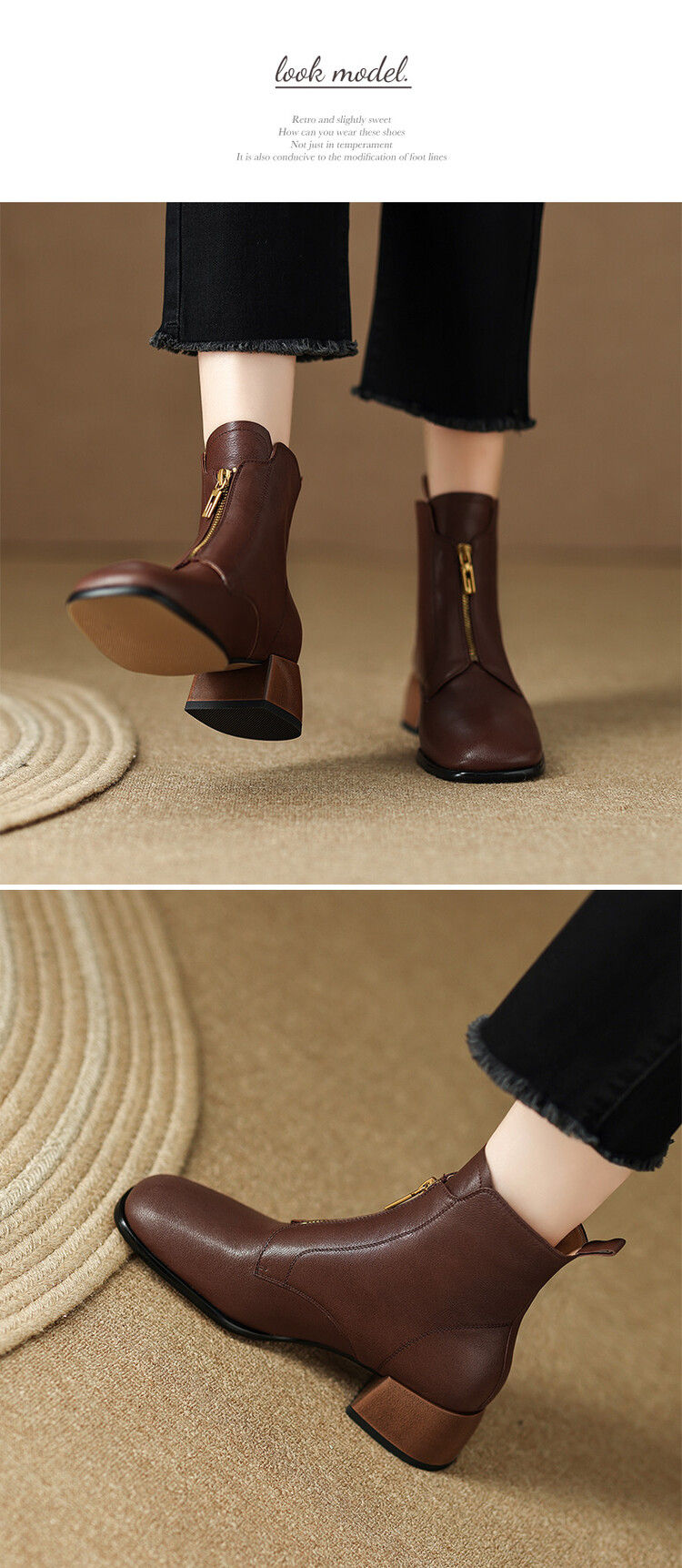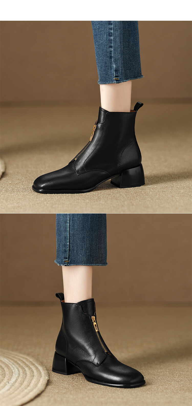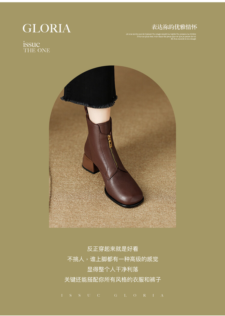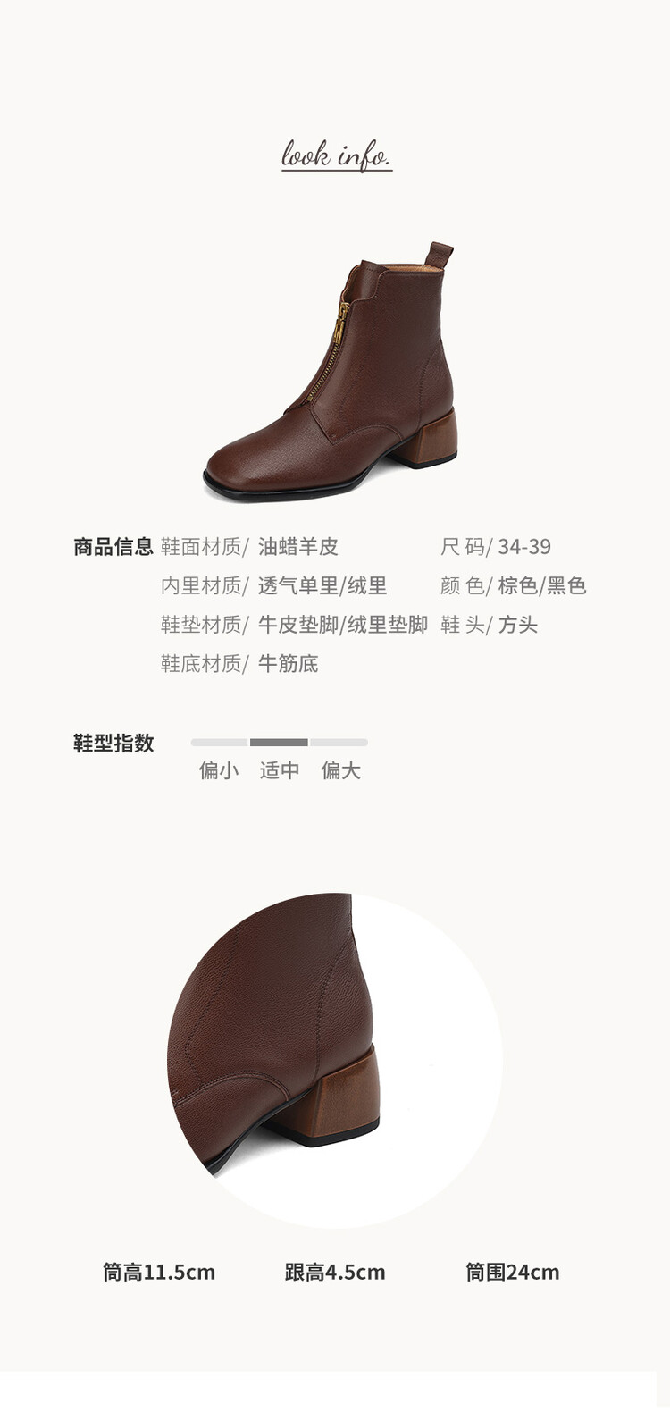 【预售5天】秋冬加绒前拉链方头粗跟时装短靴法式小羊皮马丁靴女LD&6132