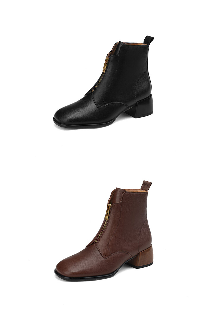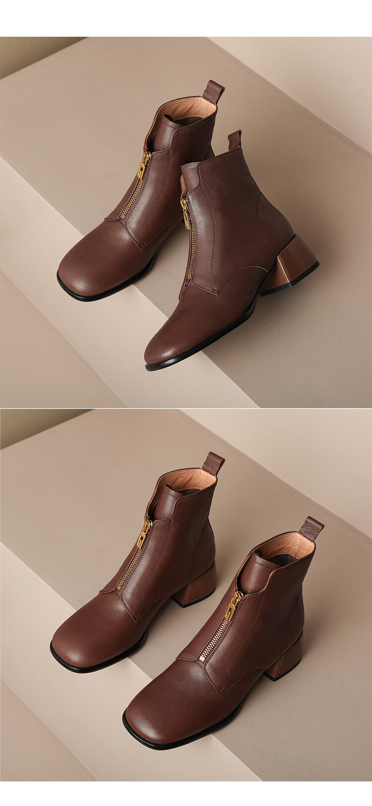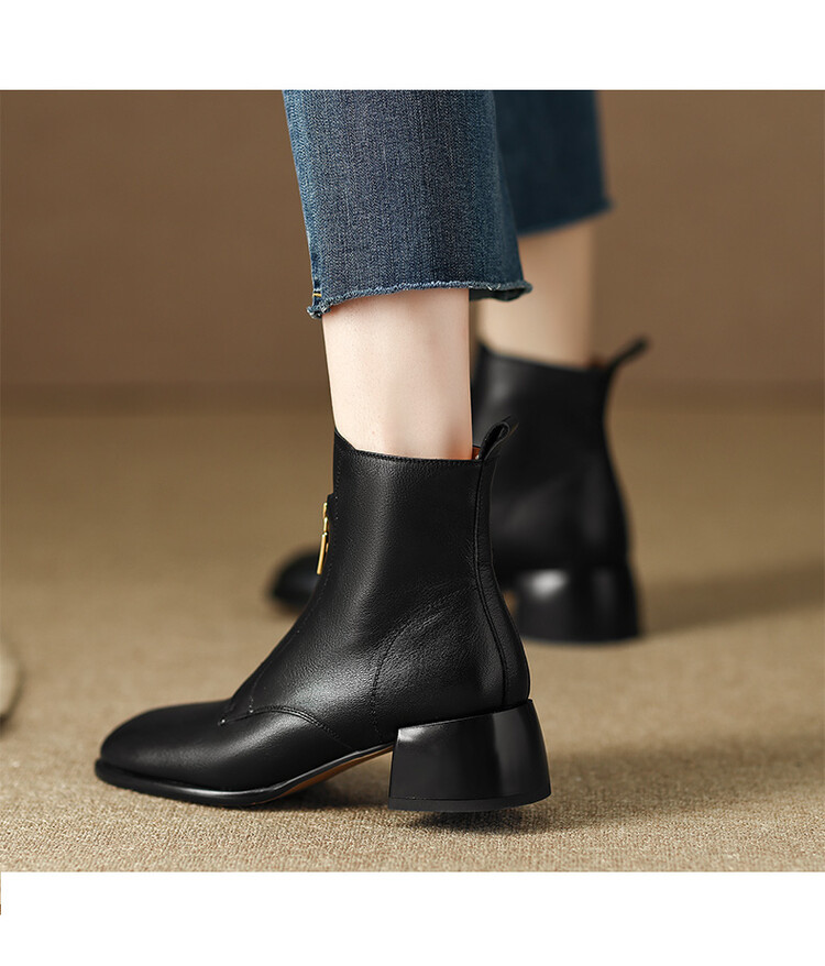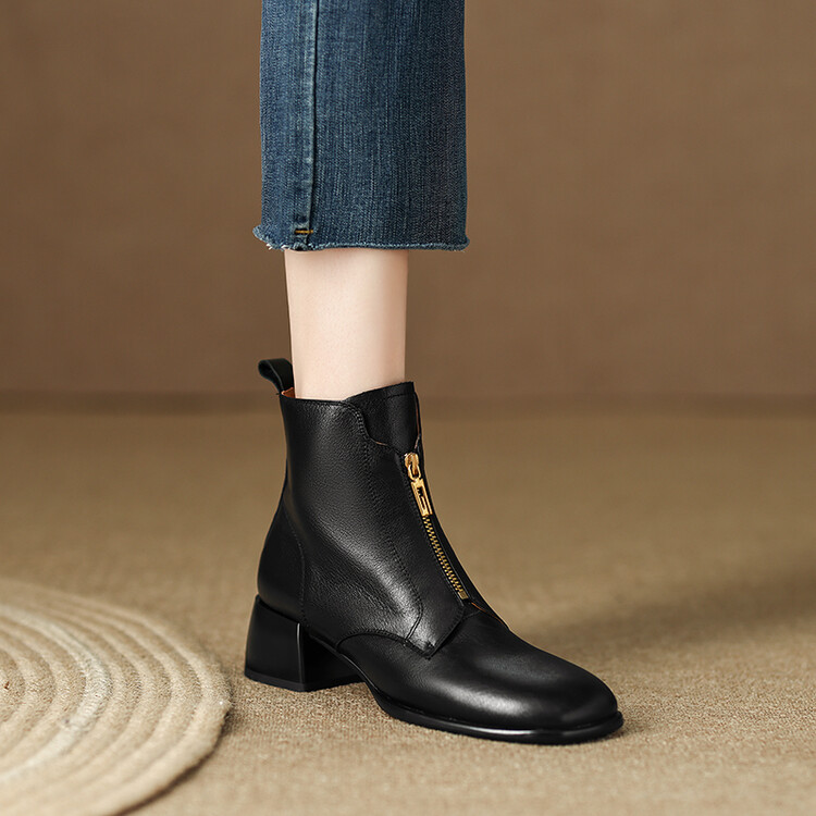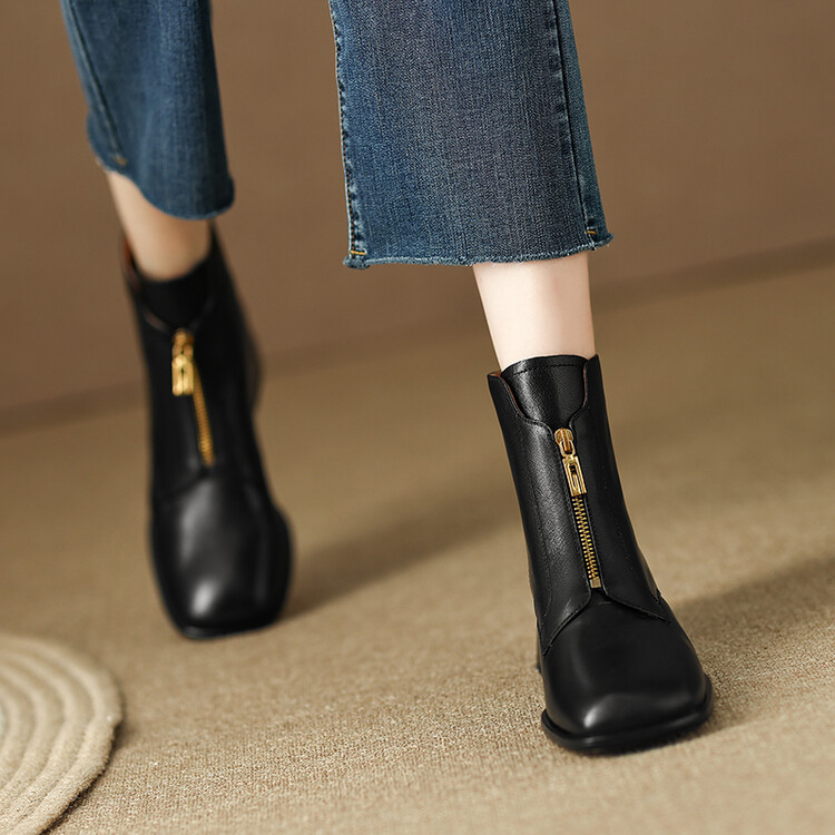 【预售5天】秋冬加绒前拉链方头粗跟时装短靴法式小羊皮马丁靴女LD&6132